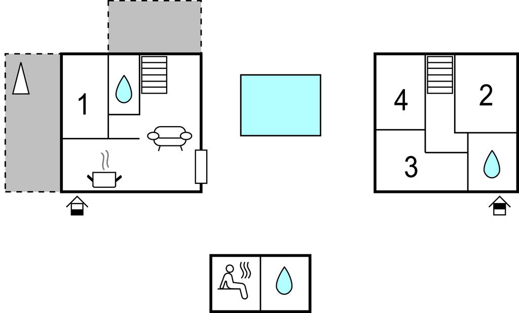 Badeværelse 4m2 (nr. 1) - WC. Varmt og koldt vand. Bruser
