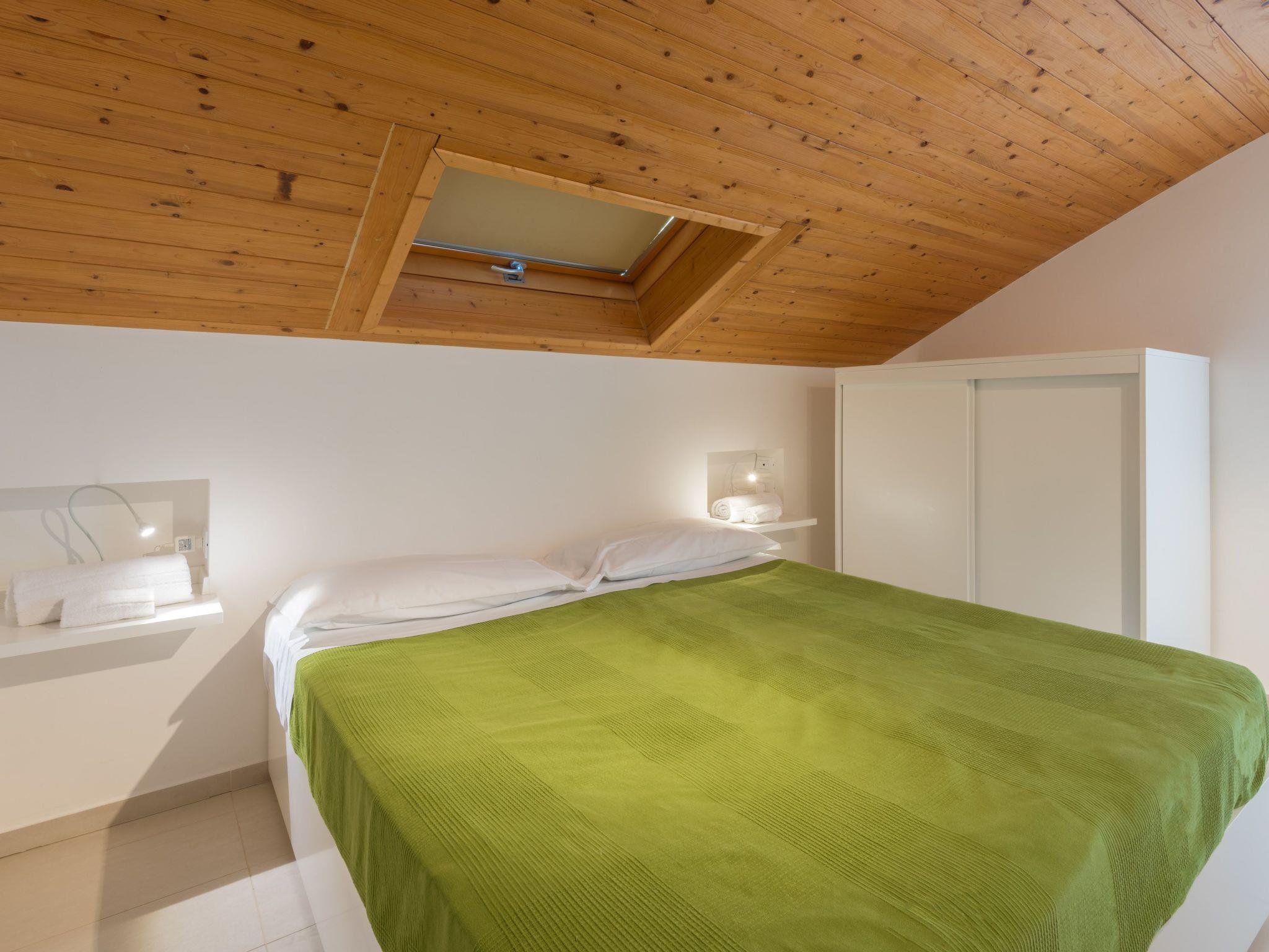 Inside, the attic features a contemporary and refined style: a spacious and bright living room-kitchen with 32'' LED TV and sofa bed, large windows that illuminate the room and offer access to a furnished veranda, ideal for outdoor meals or relaxing moments. The kitchenette is fully equipped with a gas hob, electric oven, fridge, freezer, dishwasher and a coffee machine, making any stay comfortable and carefree. The sleeping area includes a cosy double bedroom and a bathroom with shower, while additional comforts such as a washing machine, iron and ironing board and hot/cold air conditioning guarantee a pleasant stay in any season.