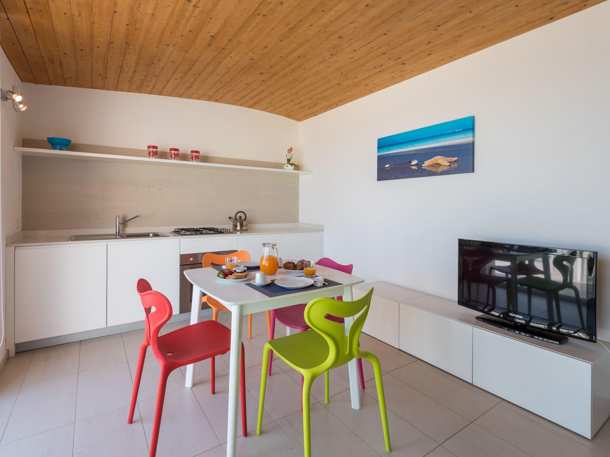 Outside there is a furnished terrace where you can enjoy your meal in total relax. Opposite the building you can find a big public car park.It is the perfect accommodation to relax and enjoy al fresco dining on the beautiful veranda. Small and comfortable, it is ideal for traveling as a couple.The apartment is located in a newly built residential complex and is located just 350 meters from the beach and the center. You can move easily on foot. You will find all the comforts that will make your stay optimal.