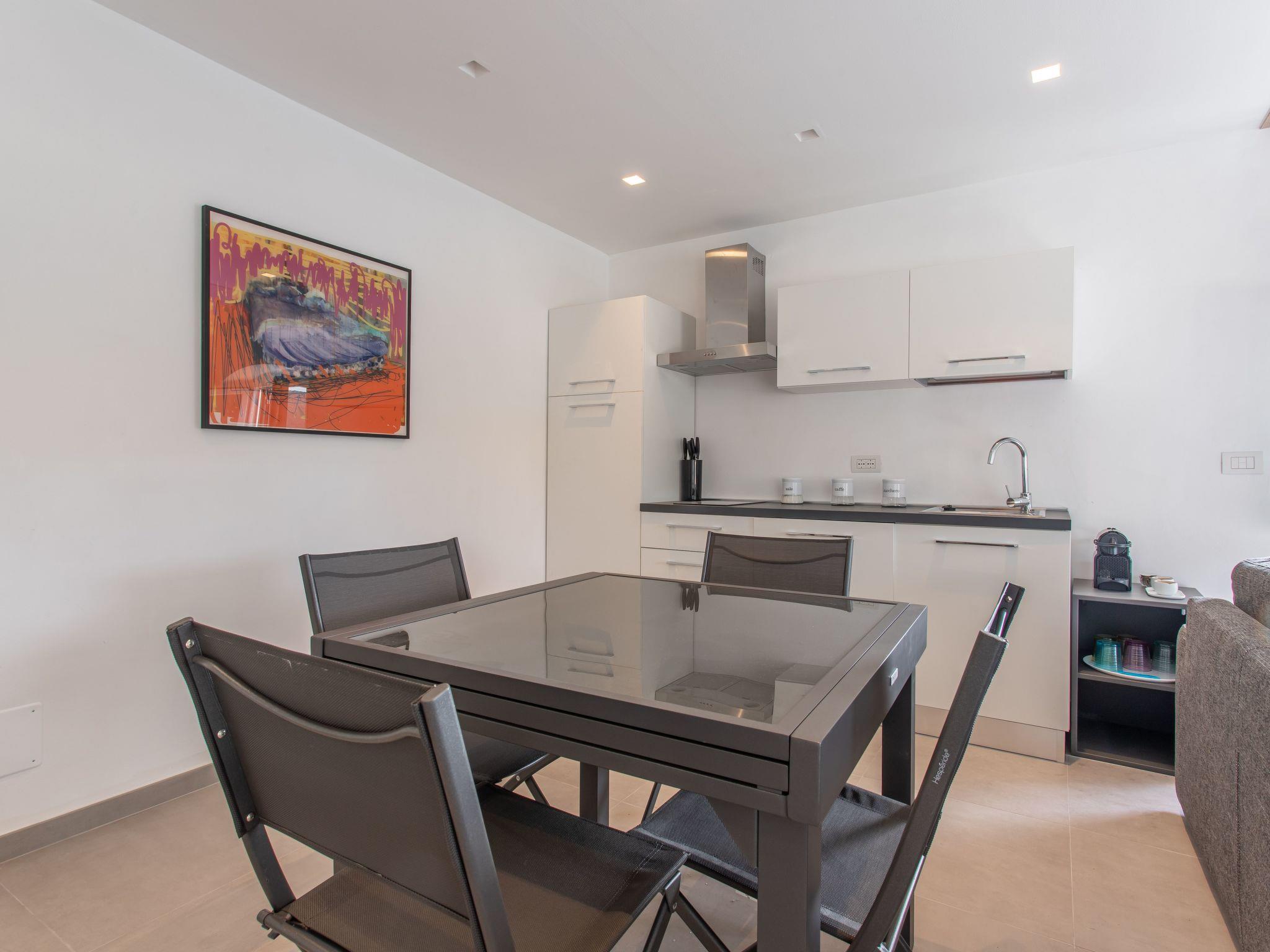 The apartments opens up through a kitchen and living area with great views towards sea. The kitchen is fully equipped and impresses with its modern design. In the living area you find a comfortable sofa bed for up to 2 guests and a modern flat TV. Through wide stairs you come to the attic with a double bed for 2 guests. One bathroom with a shower completes the available spaces.