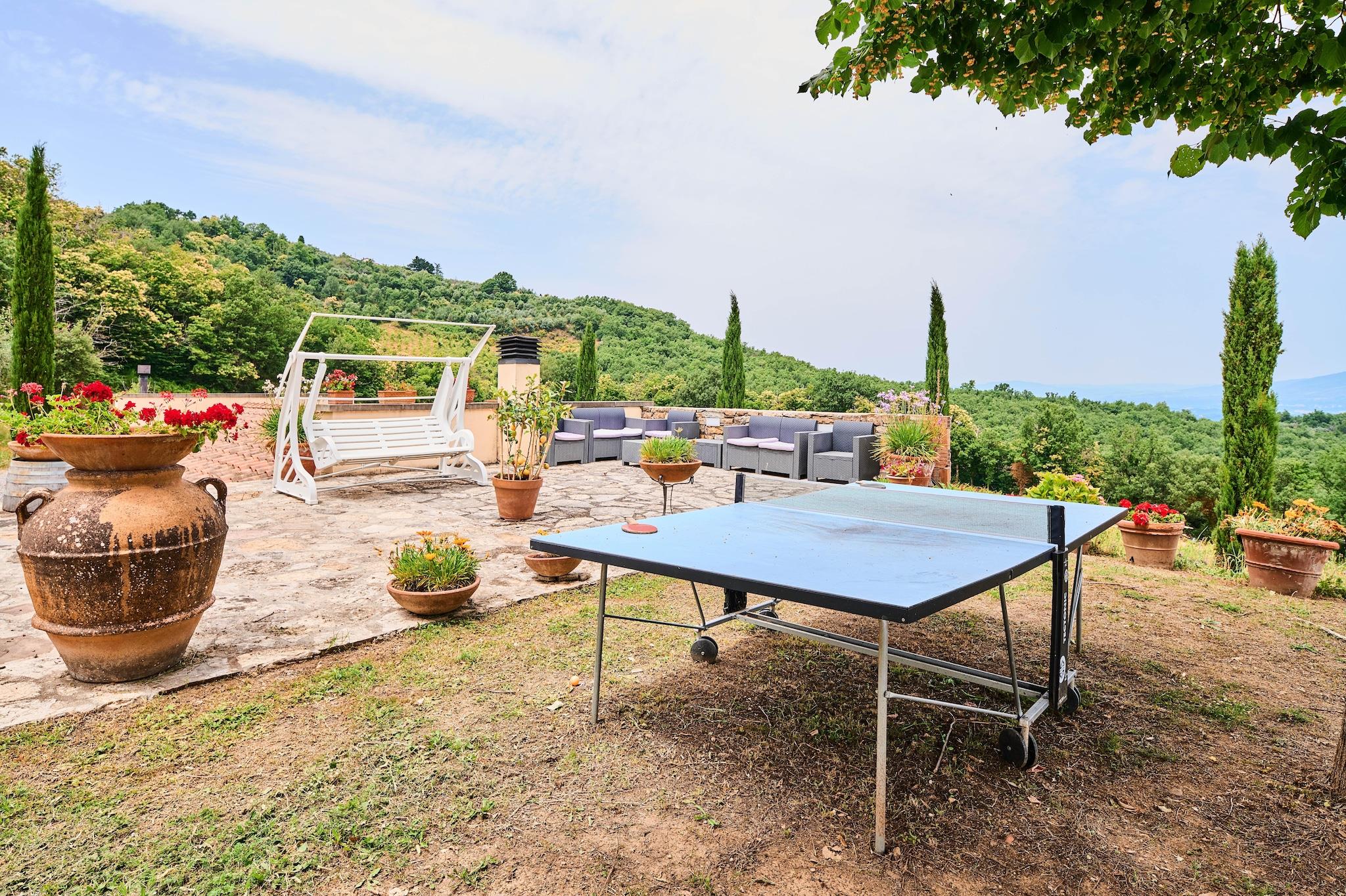 Denne pragtfulde bondegård ligger i et af de smukkeste områder i Toscana. Chianti, der er berømt over hele verden for sine fine vine, er et fortryllende miljø med bakker og landsbyer, der er værd at besøge. Stuehuset, renoveret med omhu og kvalitetsmaterialer, er opdelt i 2 selvstændige lejligheder, perfekt til familier og venner, der ønsker at nyde en ferie sammen uden at give afkald på deres egen plads. Haven og swimmingpoolen er indrettet til at nyde afslapning, underholdning, udendørs frokoster og middage. De smukkeste og mest berømte kunstbyer i Toscana, såsom Firenze og Siena, kan nås i bil på kort tid, for ikke at nævne de mange storslåede landsbyer, der ligger blot et par kilometer væk.