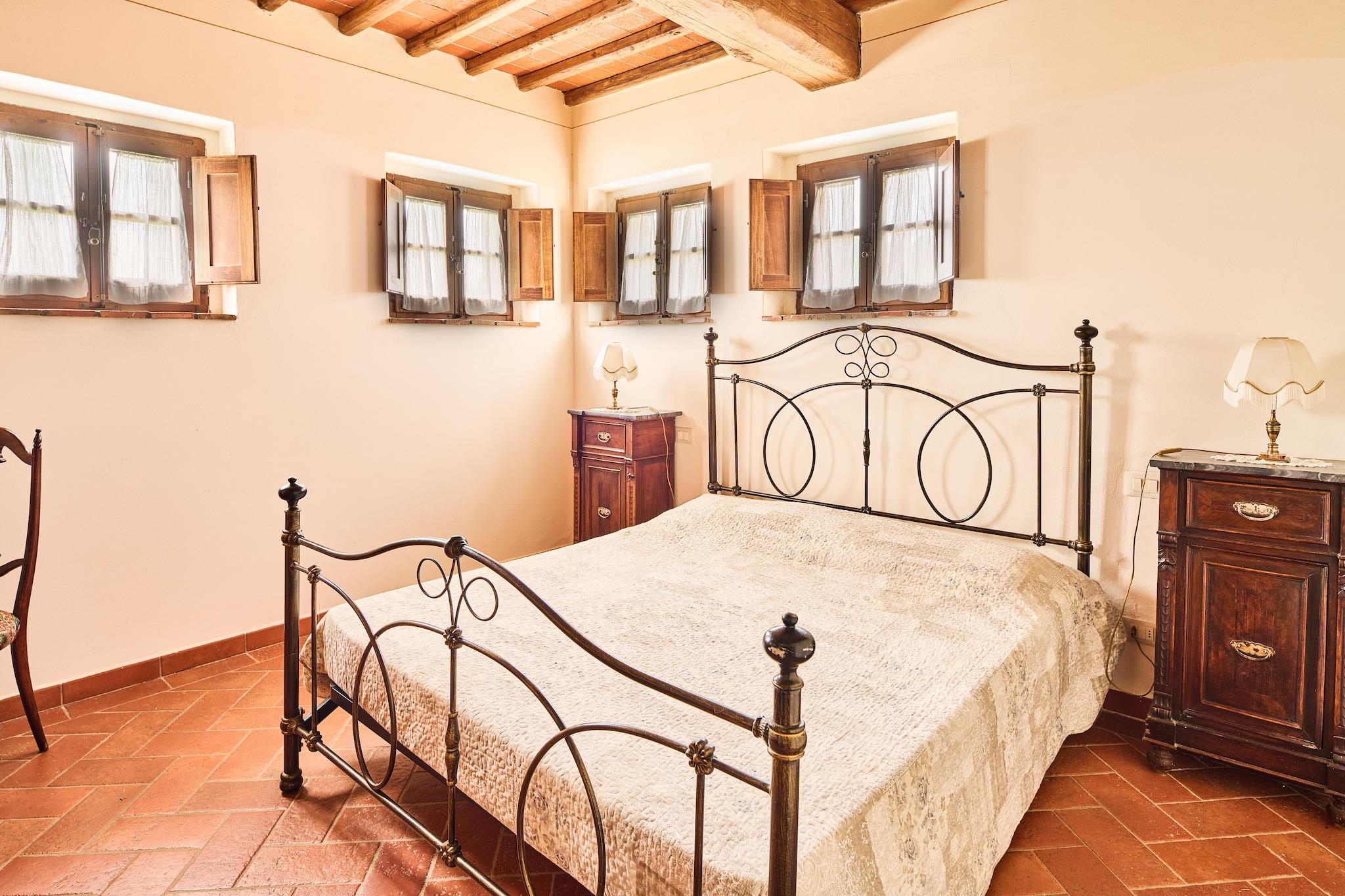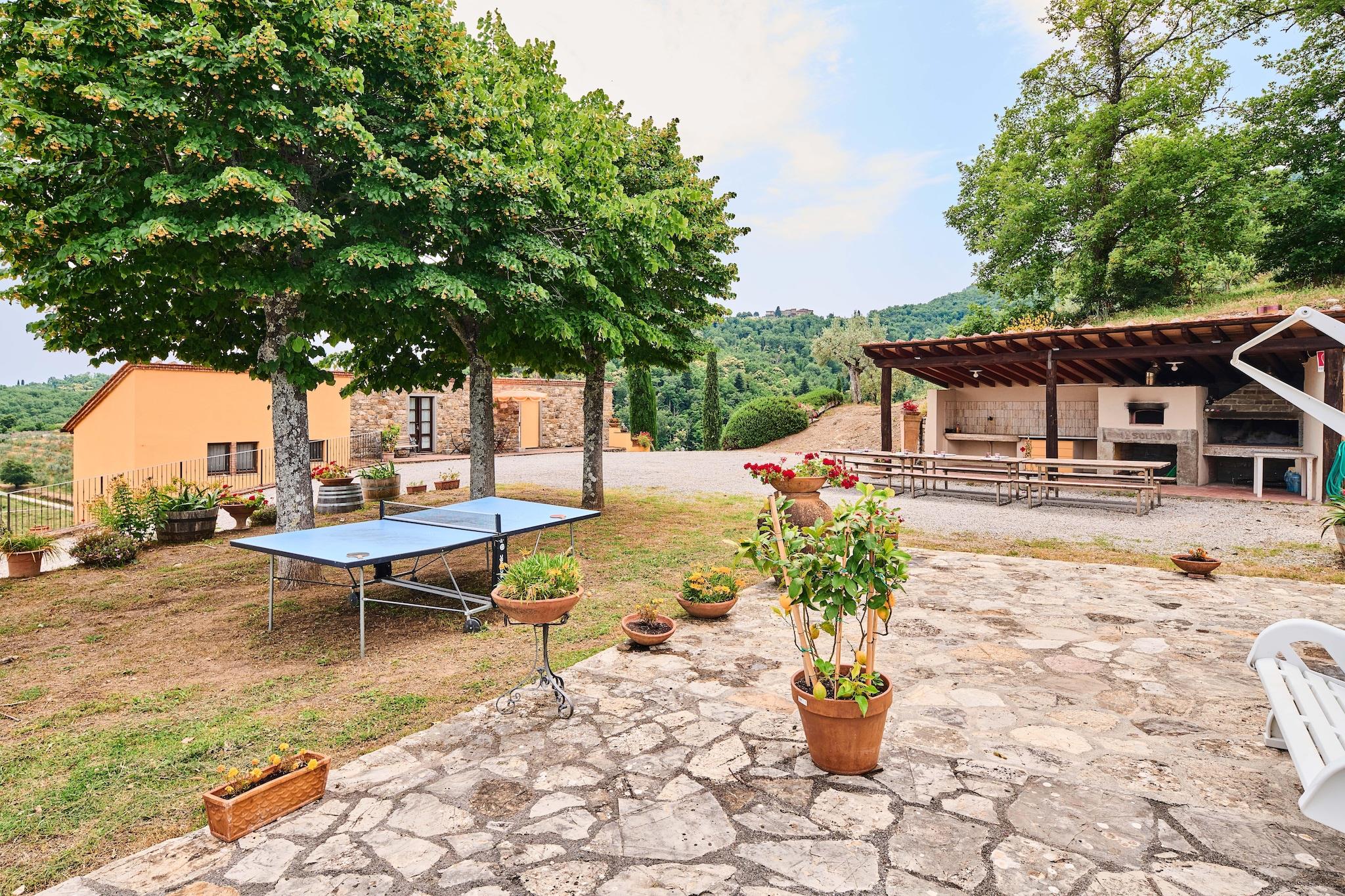 Beliggende i hjertet af Toscanas berømte Chianti-region, er denne charmerende bondegårdslejlighed i stueetagen i Cavriglia perfekt til op til 4 gæster. Det er for nylig renoveret med materialer af høj kvalitet og tilbyder en varm, rustik atmosfære med traditionelle elementer som en hyggelig pejs og indretning i toscansk stil. Det er de ideelle rammer for familier, par eller venner, der søger afslapning på landet. Lejligheden har to komfortable soveværelser, to badeværelser, et veludstyret køkken og et opholdsområde med pejs. Udenfor inviterer den rummelige have dig til at slappe af med alfresco-måltider, mens den store fælles swimmingpool giver en forfriskende flugt på solrige dage. Nyd grillfester ved den udendørs pejs eller nyd Chianti-vin under parasollen med WiFi lige ved hånden. Udforsk den nærliggende by Cavriglia (3,5 km) eller tag naturskønne køreture til ikoniske byer som Firenze og Siena. Gå ikke glip af et fredeligt besøg i Lago di Castelnuovo (7 km), og nyd det lokale køkken i de mange trattoriaer i nærheden. Med parkering og kæledyrsvenlige funktioner udgør denne bondegård en perfekt base for dit toscanske eventyr.
