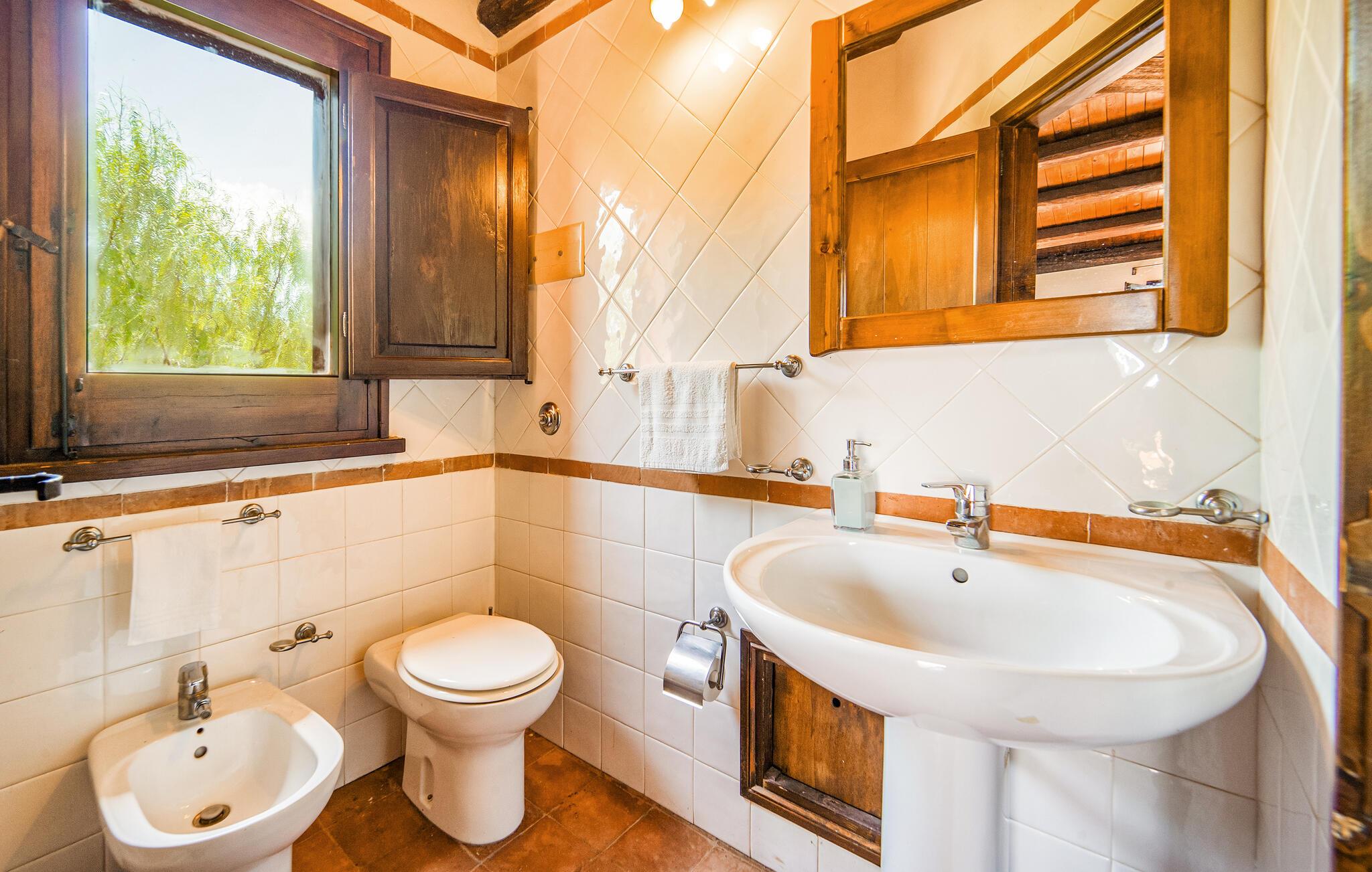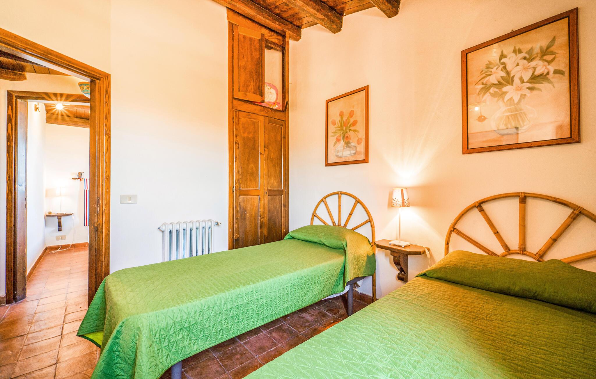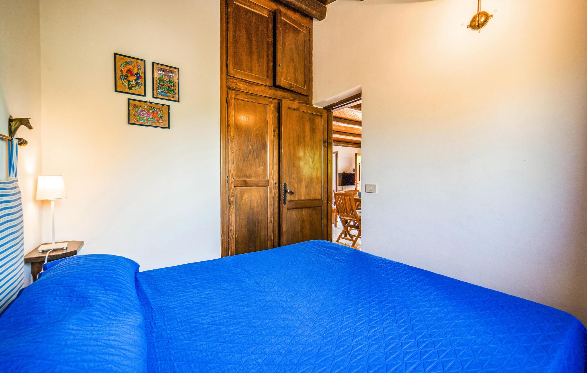 Denne velindrettede ferielejlighed kombinerer rustik charme med moderne komfort og lægger op til en hyggelig pause med varme træelementer og traditionelle møbler. Tilbered jeres måltider i det indbydende køkken på landet, og tag plads ved det rummelige træbord. Find jer godt til rette i den hyggelige stue og nyd selskabelige spilleaftener eller afslappede læsetimer med et glas vin.