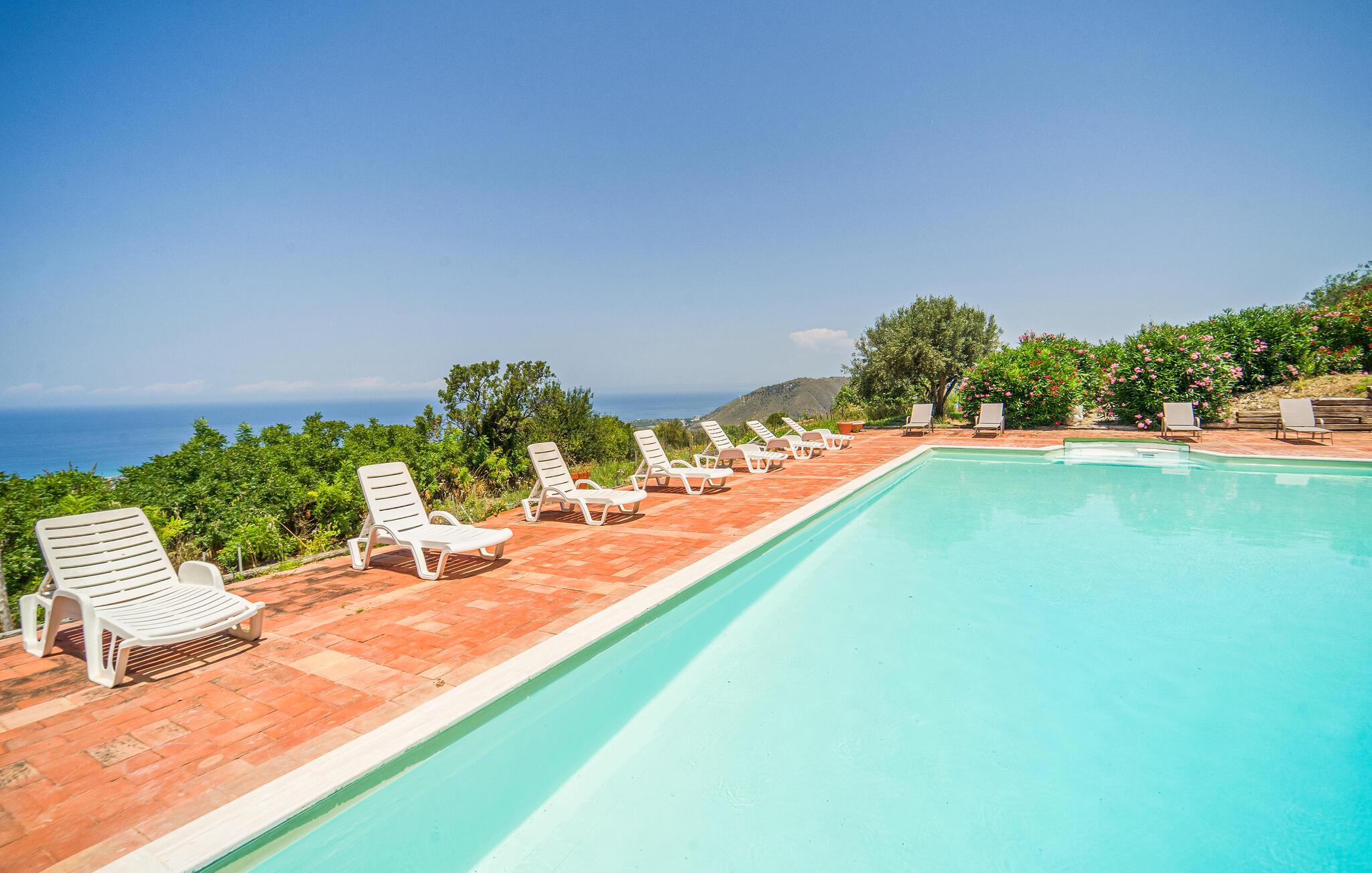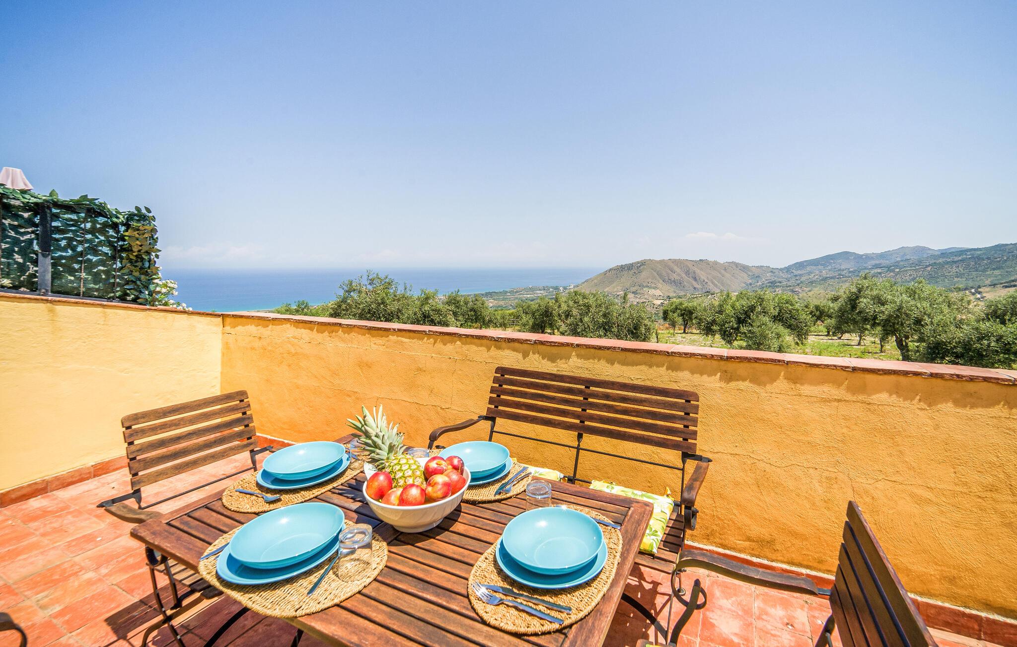 Tilbring solrige dage i denne charmerende ferielejlighed med havudsigt og fælles pool.