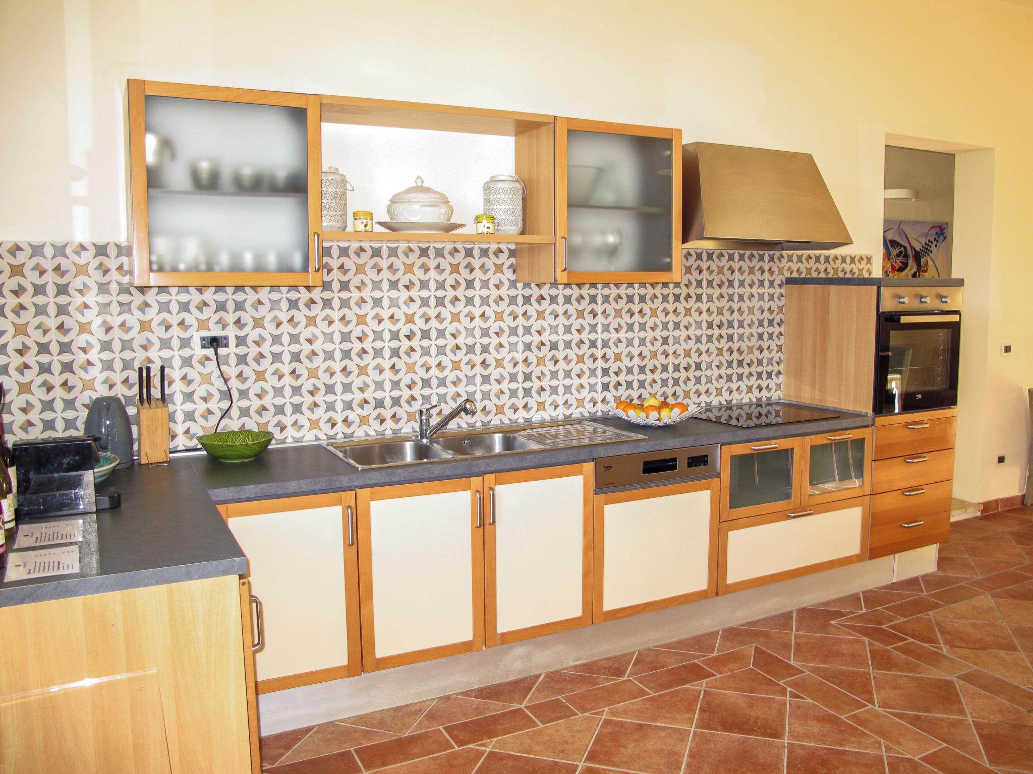 "Quercitella", 4-room house 120 m2, on the ground floor. Object suitable for 8 adults + 2 children. Spacious and bright, fully renovated in 2021, comfortable and modern furnishings: large living/dining room with dining table and satellite TV (flat screen). 1 room with 3 beds (80 cm). 2 double bedrooms. 1 room with 1 bed (80 cm), 1 double bed. Large, open kitchen (oven, dishwasher, 5 induction hot plates, toaster, kettle, electric coffee machine, Capsules for coffee machine (Nespresso) extra). 2 showers/bidet/WC. Heating, air-conditioning (extra). Parquet floors, natural stone floors. Patio. Terrace furniture, barbecue, deck chairs, box-room. View of the countryside. Facilities: washing machine, iron, mosquito net, children's high chair, baby cot for up to 2 year olds, hair dryer. Internet (WiFi, free). Parking (fenced 4 cars). Please note: suitable for families. Non-smokers only. Maximum 1 pet/ dog allowed. Private entrance. No mandatory extra charges to be paid on-site except for local tax. Bedlinen, towels, final cleaning and all energy costs are included. IT048012B5J29MYC6E