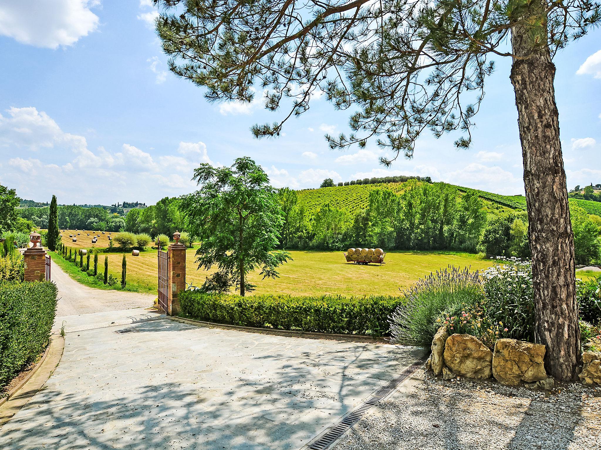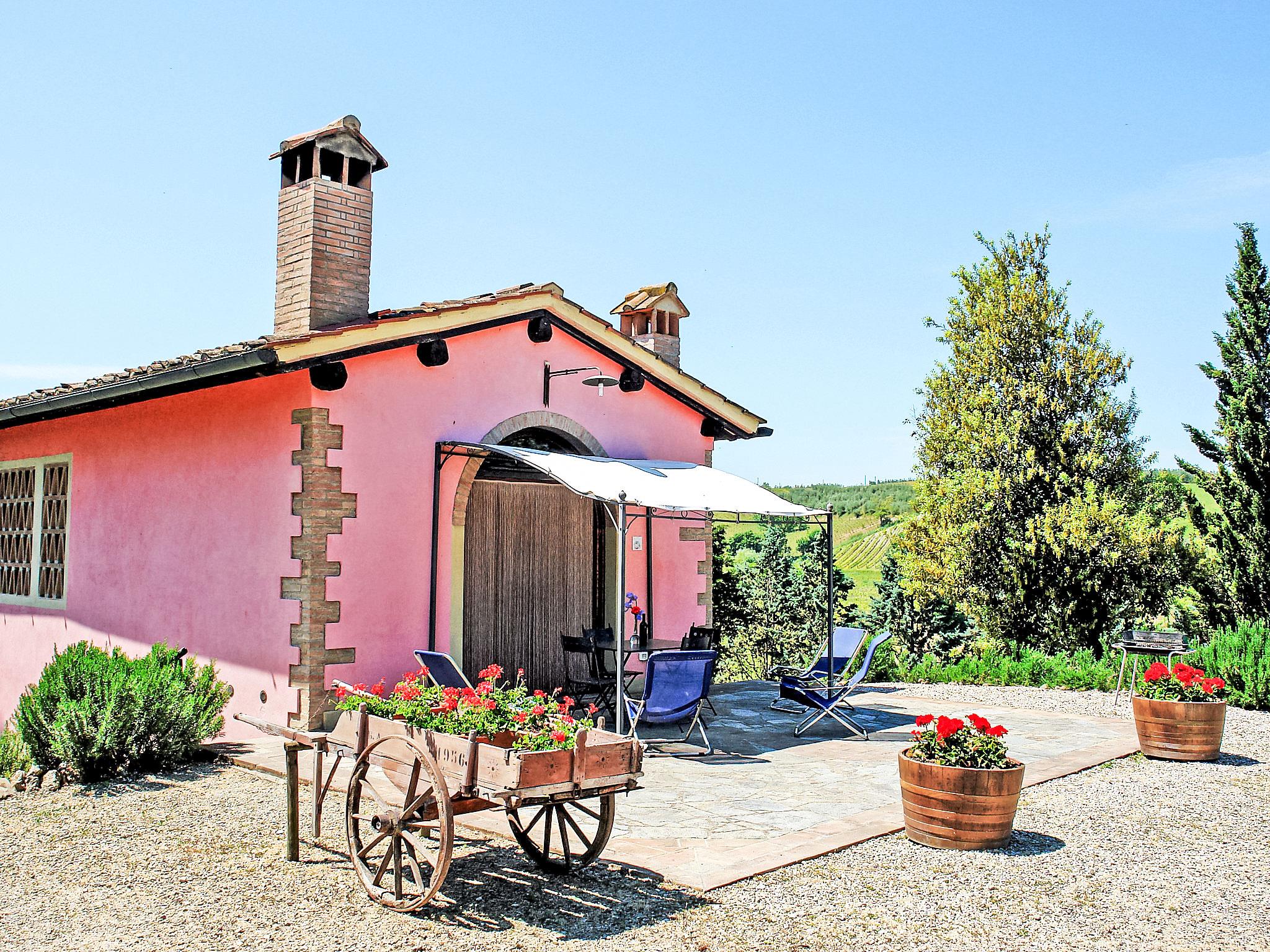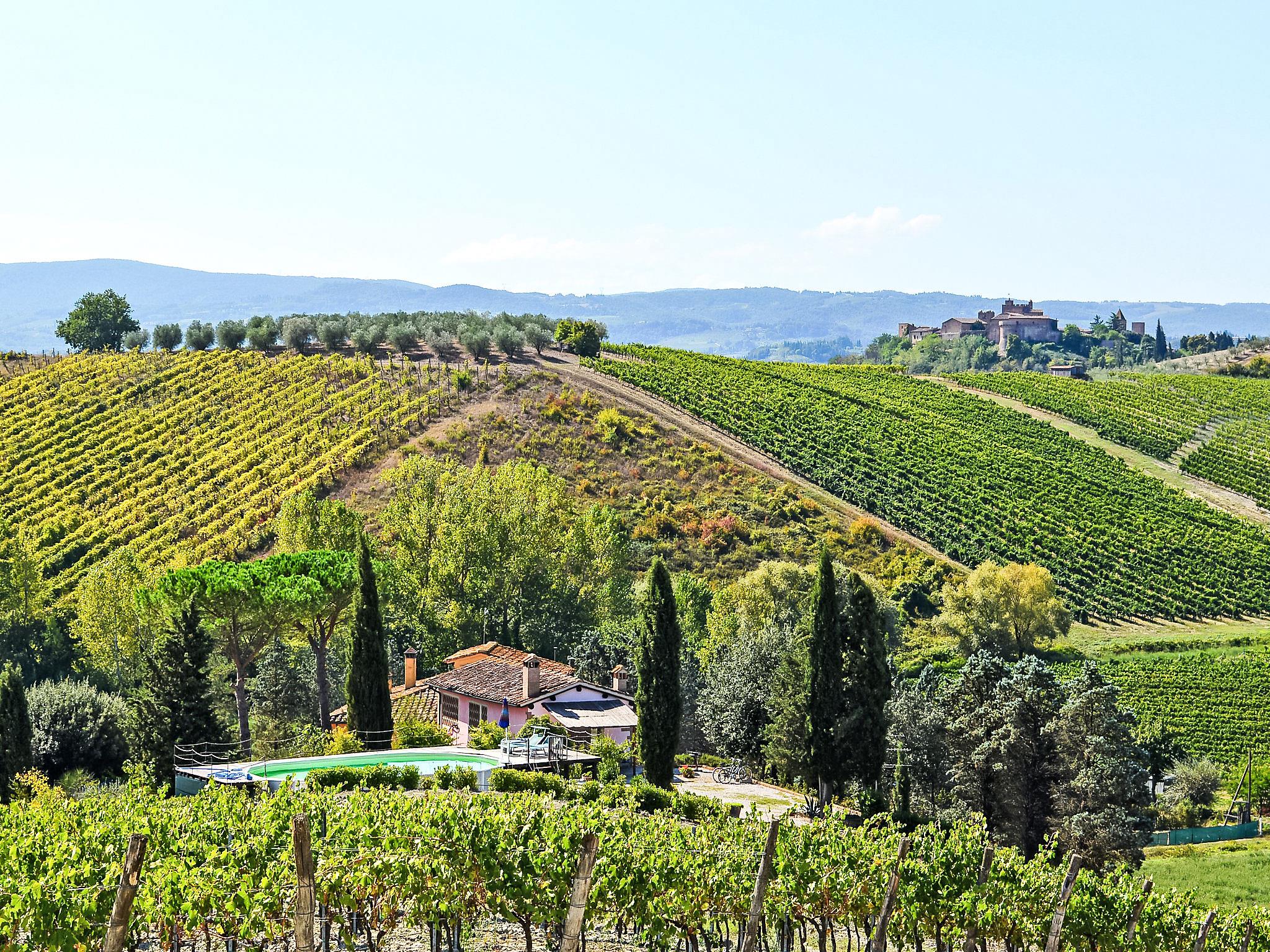 The country estate Il Vallone with 16 ha of vineyards, olive groves and fields is located in a quiet position 2 km away from the medieval castle complex Certaldo Alto cosy farmhouse "Il Vallone", renovated, surrounded by meadows, fields and vineyards. 3 km from the centre of Certaldo, 42 km from the centre of Firenze, 48 km from the centre of Siena, in a secluded, sunny, elevated position, in the countryside. For shared use: natural state property 16 ha, garden 3'000 m2 with plants and trees, natural garden. Private: terraced garden with wildlife garden and flowers, swimming pool (10 x 5 m, depth 140 cm, seasonal availability: 24.Apr. - 02.Oct.). Terrace, garden furniture, barbecue. In the house: washing machine (extra). Parking at the house. Shop 3 km, restaurant 3 km, bus stop 2 km, railway station " Certaldo" 4 km. Golf course 25 km, tennis 5 km, riding stable 4 km. Please note: the owner lives on the same property. 2 Bikes available for excursions.