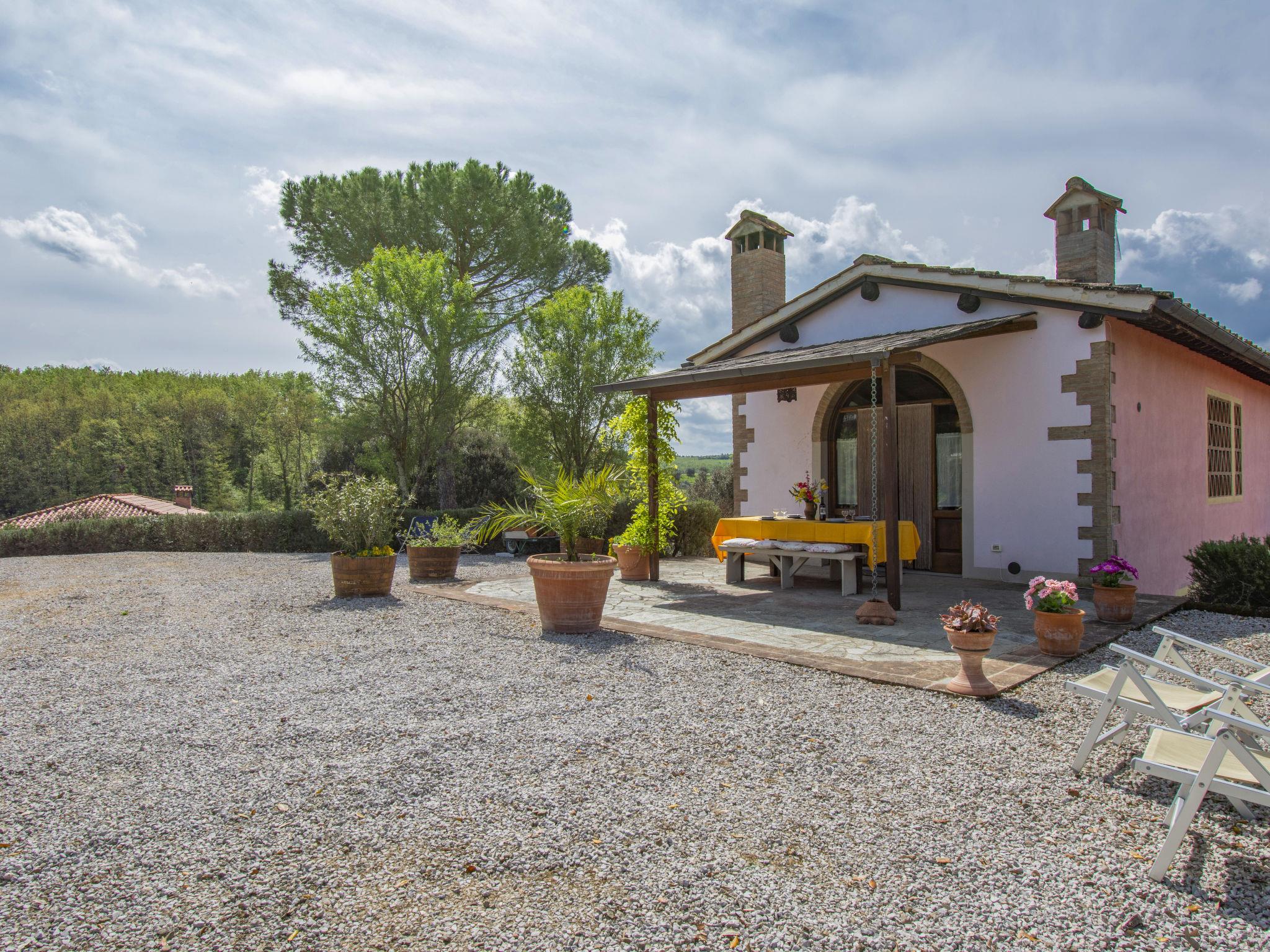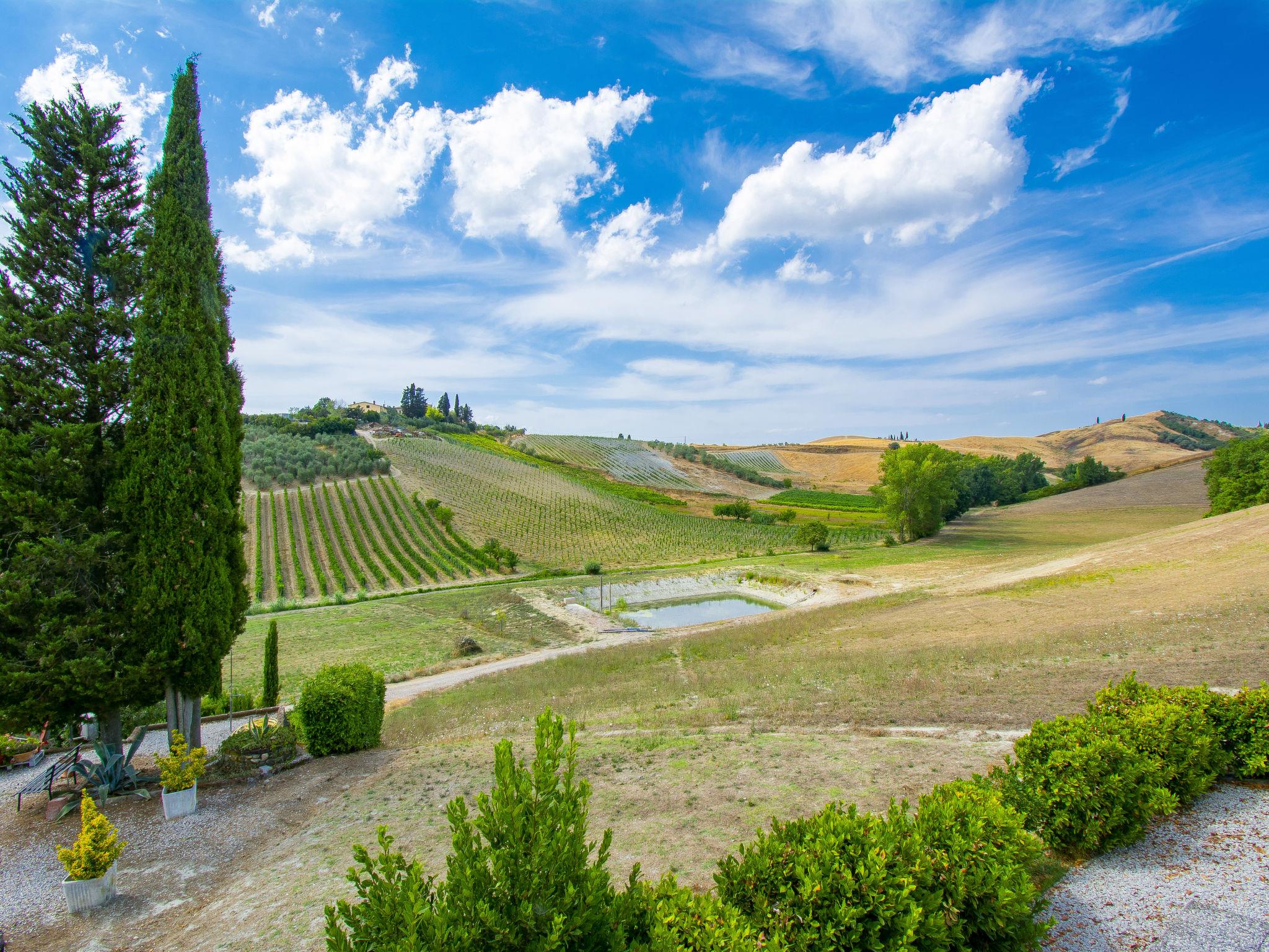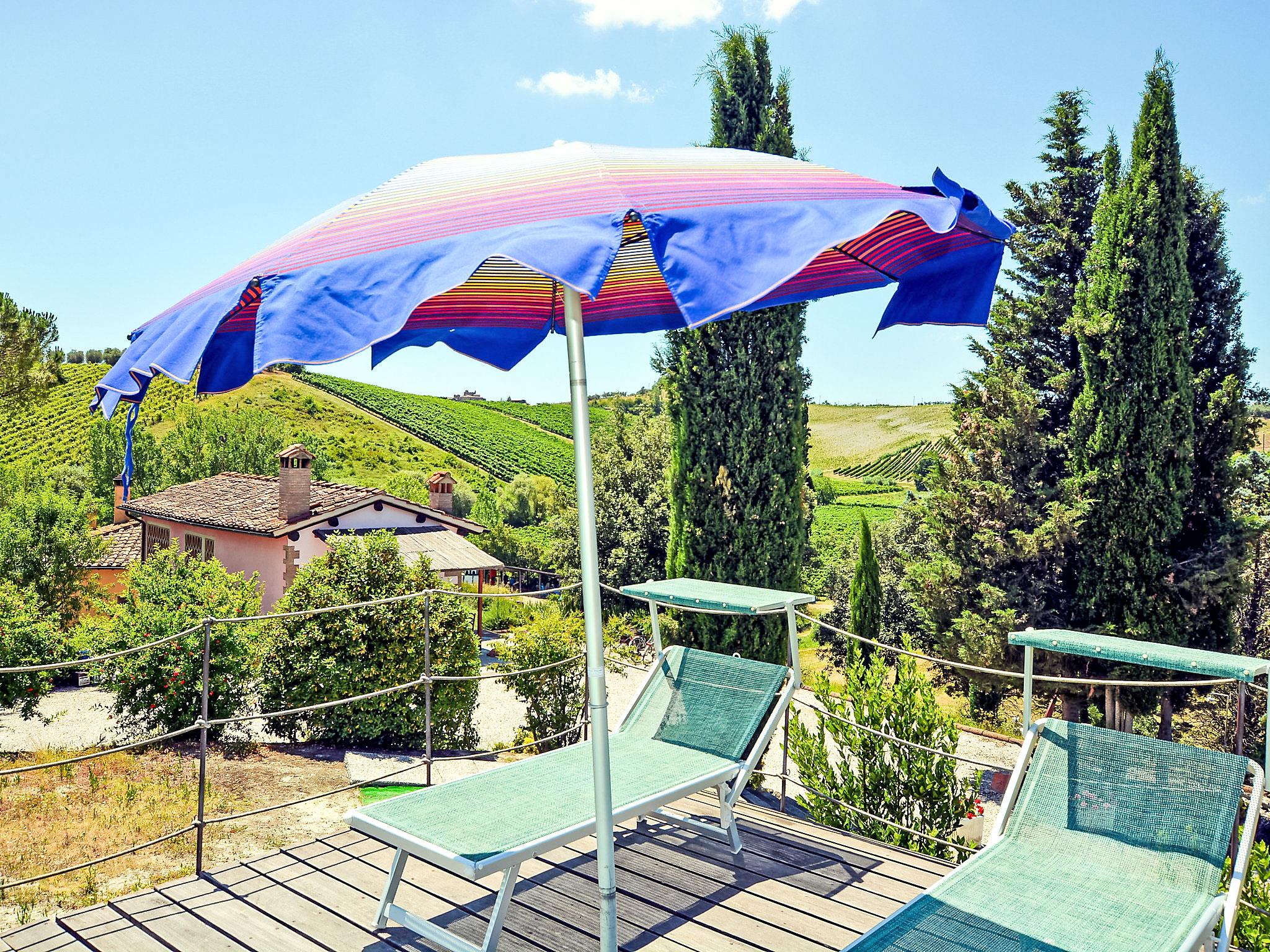 The country estate Il Vallone with 16 ha of vineyards, olive groves and fields is located in a quiet position 2 km away from the medieval castle complex Certaldo Alto cosy farmhouse "Il Vallone", renovated, surrounded by meadows, fields and vineyards. 3 km from the centre of Certaldo, 42 km from the centre of Firenze, 48 km from the centre of Siena, in a secluded, sunny, elevated position, in the countryside. For shared use: natural state property 16 ha, garden 3'000 m2 with plants and trees, natural garden. Private: terraced garden with wildlife garden and flowers, swimming pool (10 x 5 m, depth 140 cm, seasonal availability: 24.Apr. - 02.Oct.). Terrace, garden furniture, barbecue. In the house: washing machine (extra). Parking at the house. Shop 3 km, restaurant 3 km, bus stop 2 km, railway station " Certaldo" 4 km. Golf course 25 km, tennis 5 km, riding stable 4 km. Please note: the owner lives on the same property. 2 Bikes available for excursions.