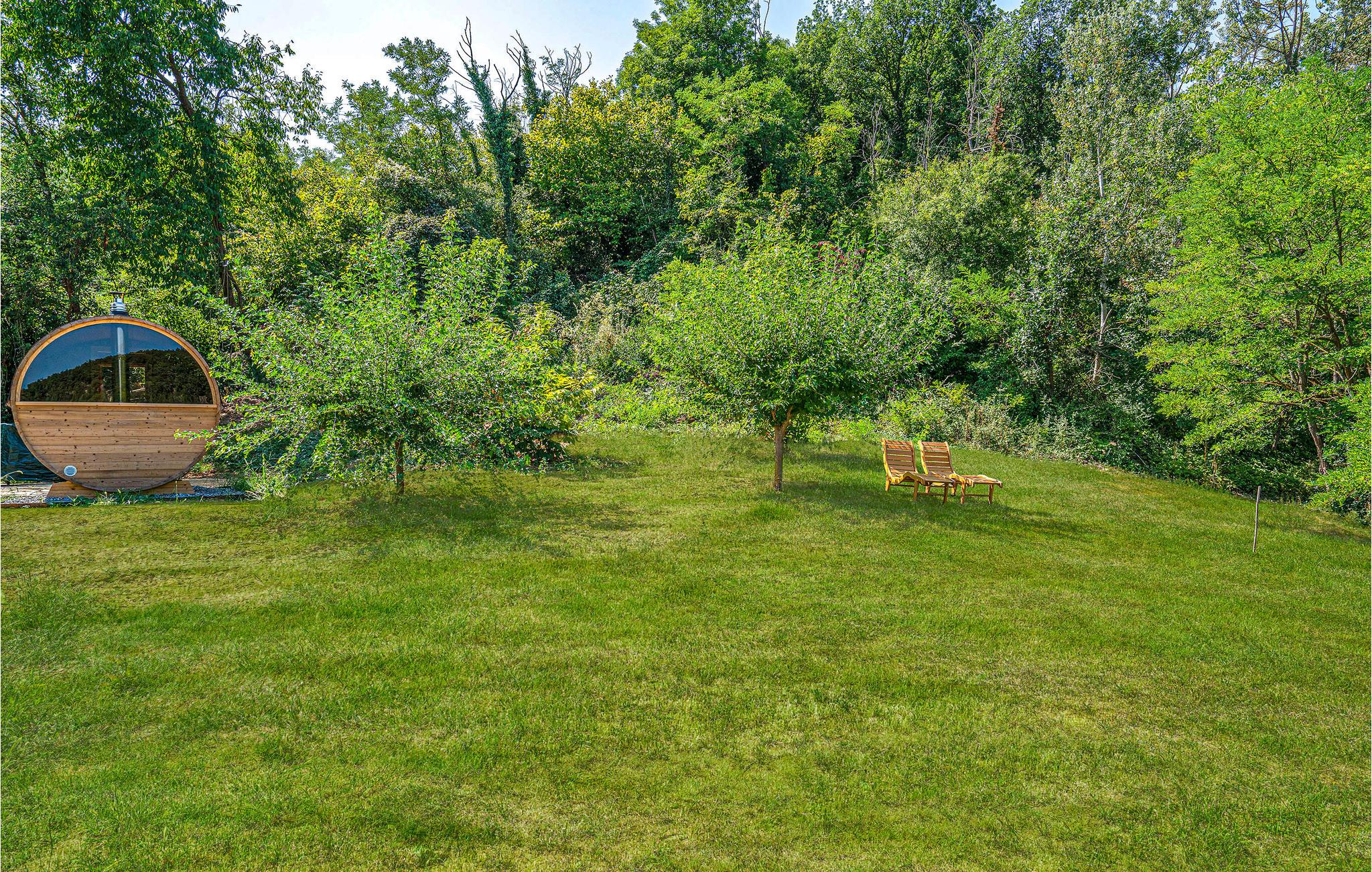 Læn jer tilbage i det udendørs boblebad med udsigt til det smukke landskab. I kan også tage et spil bordtennis på fællesgrunden. Der er tre parkeringspladser i carporten til jeres biler.
