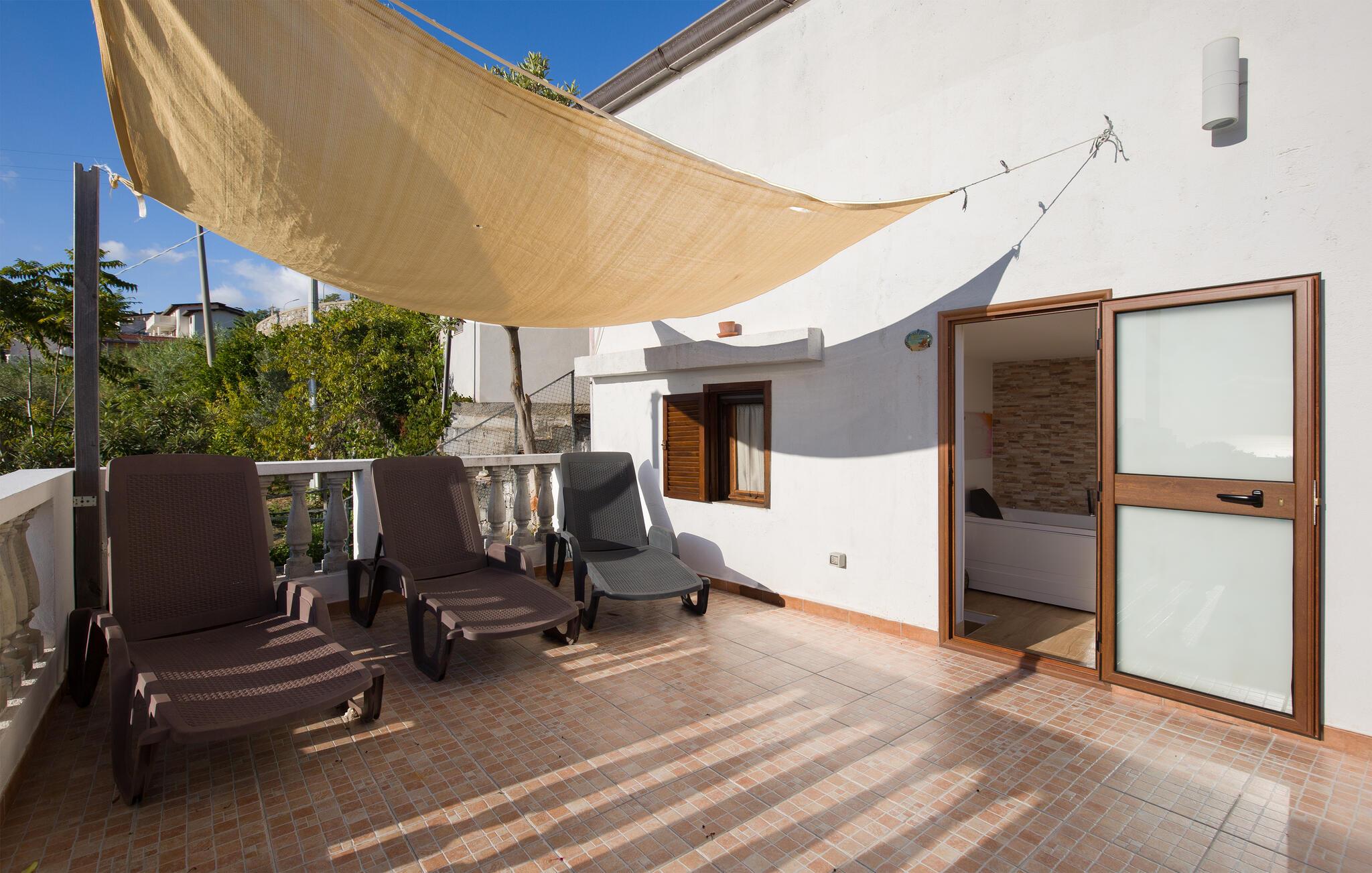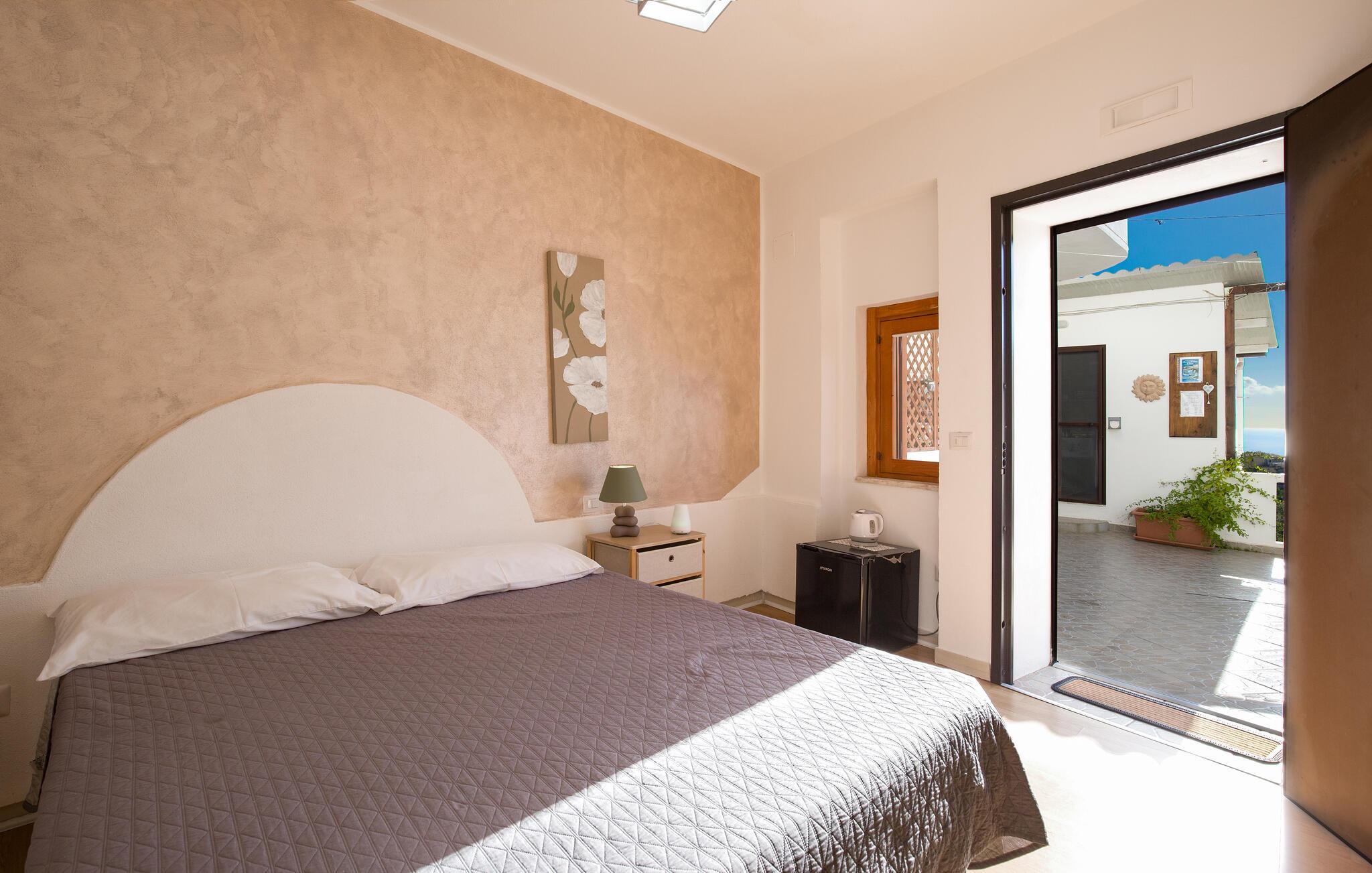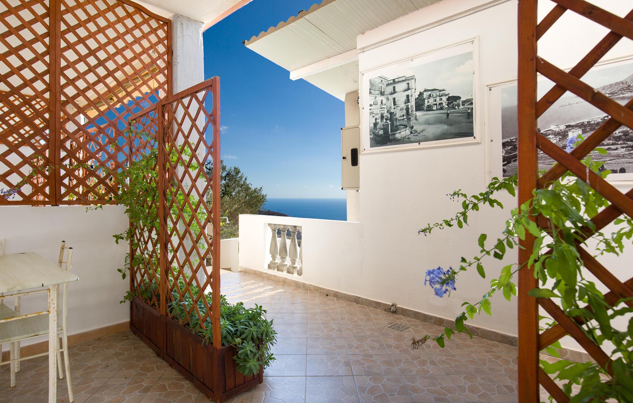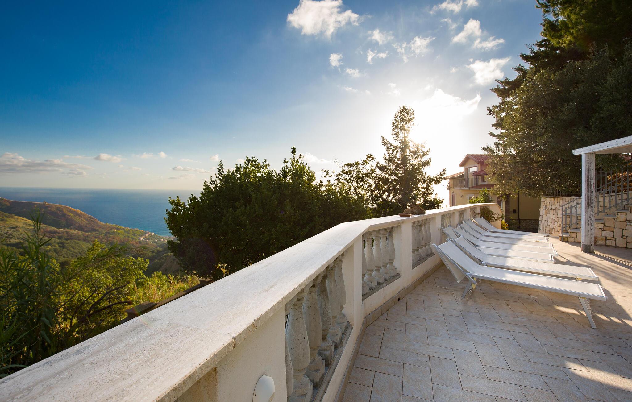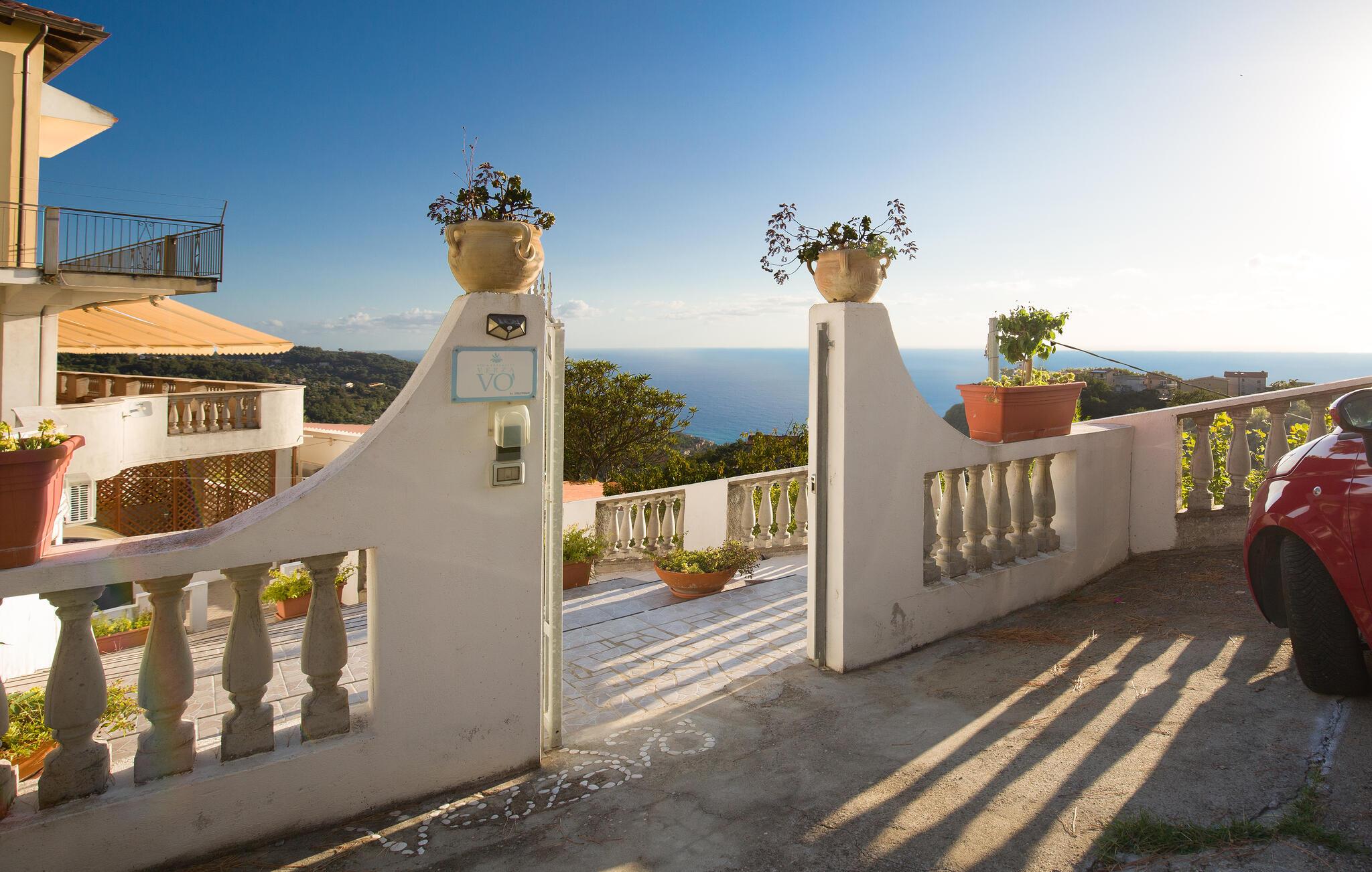 Velkommen til denne lejlighed med fælles pool i en høj beliggenhed med udsigt over den calabriske kyst og havet.