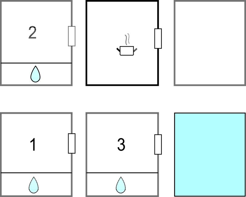 Badeværelse (nr. 3) - WC. Varmt og koldt vand. Bruser