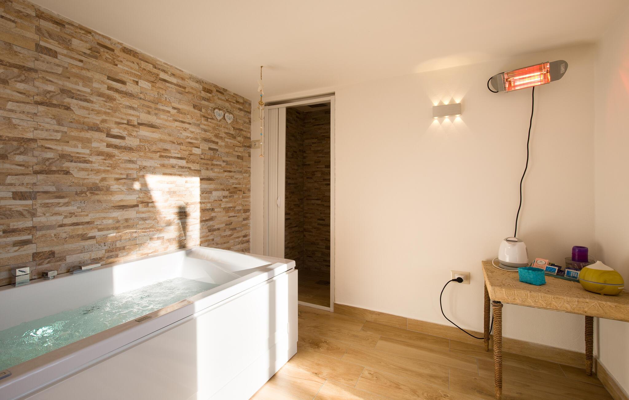 Lejligheden ligger virkelig idyllisk i landsbyen Ponte Arenazza oppe i bakkerne bag Cetraro. Den er det helt rigtige valg for jer, der søger en ferie med fred, ro og et hyggeligt landsby-leben i god afstand fra kystens stress og jag. Hvert soveværelse har eget badeværelse, så boligen er helt ideel til en ferie med flere par eller den udvidede familie, uden at I giver køb på privatliv eller komfort. Husets perle er den store terrasse, hvor I kan finde jer godt til rette og nyde den fantastiske udsigt over havet, inden I dypper jer i poolen og lufttørrer i solen.