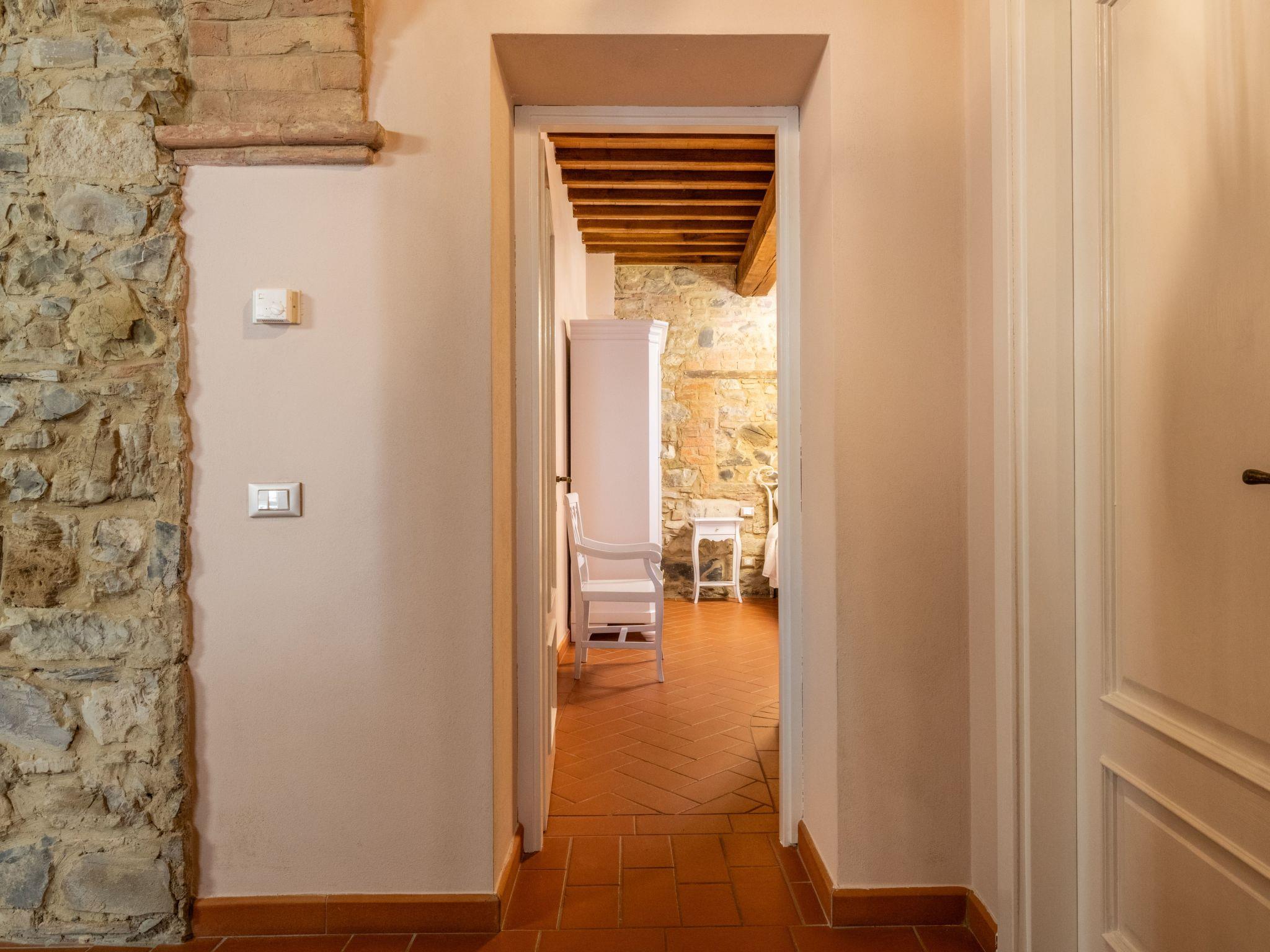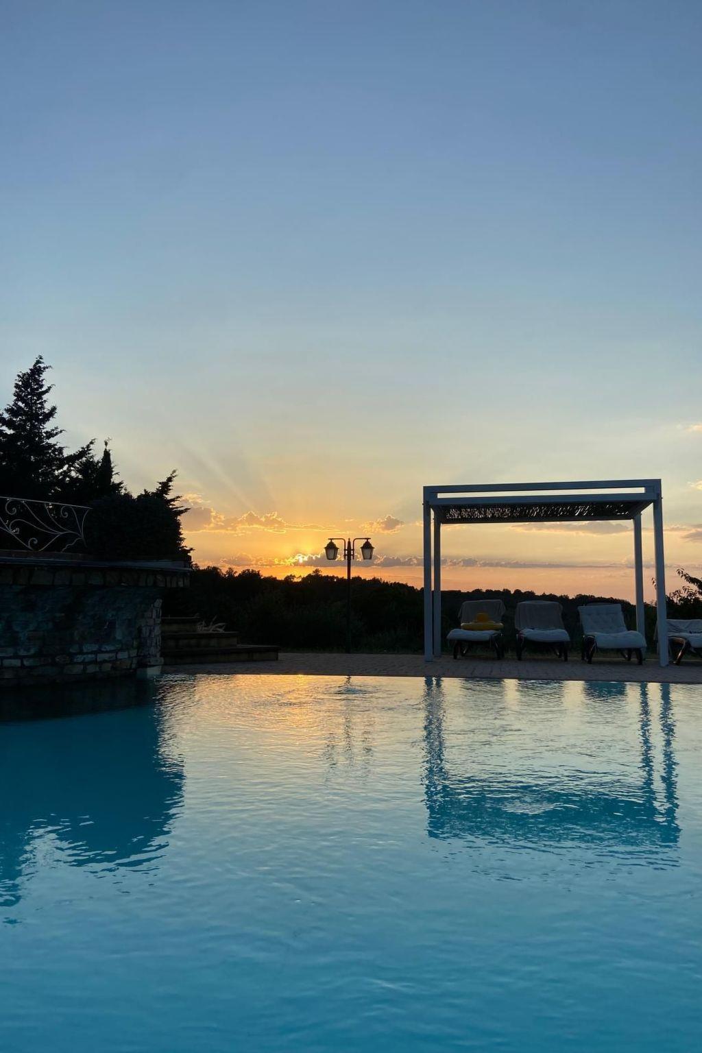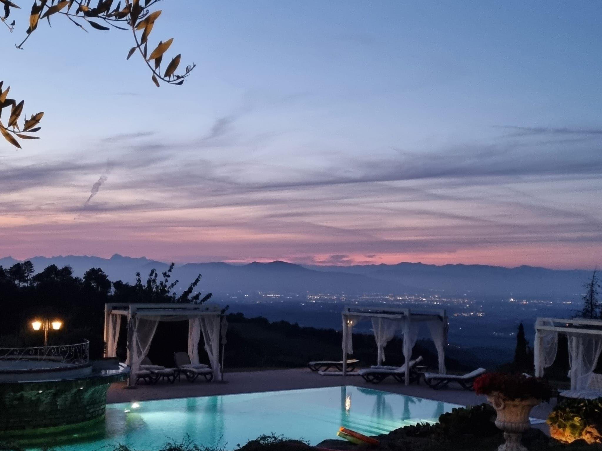 A hidden gem in the Tuscan rolling countryside, raised 350 metres above sea level, Le Polle di Meletro, also known as "Il borgo della pace" with its fantastic panoramic terrace, woodlands and enviable position, resides near the small medieval village of Rivalto. With stunning views down the Valdera valley, the prominent location of the villa has maintained a sense of timelessness, peace and tranquillity. It is an oasis of calmness and harmony in which to indulge yourself and relax, but yet it is only 40 minutes’ drive from Pisa airport.The villa is surrounded by fertile soil that produces a range of superior vegetables, fruits and wine. The nearby fields are host to vineyards, olive groves, fruit trees and cereals, whilst the wooded hills are home to the famous ‘Rivalto’ Chestnut along with a rich selection of flora and fauna. The nodding heads of large sunflowers fill some of the fields in July/August setting the landscape ablaze. The view from our terrace and woodland changes as the seasons change, being green and lush in spring through to a golden yellow in summer before becoming a sea of blazing red as the vines change colour in the autumn months.