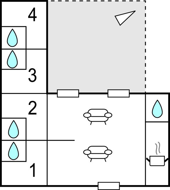 Soveværelse (nr. 1) - 1 Soveplads. (Enkeltseng(e)). 2 Sovepladser. (Dobbeltseng(e)).