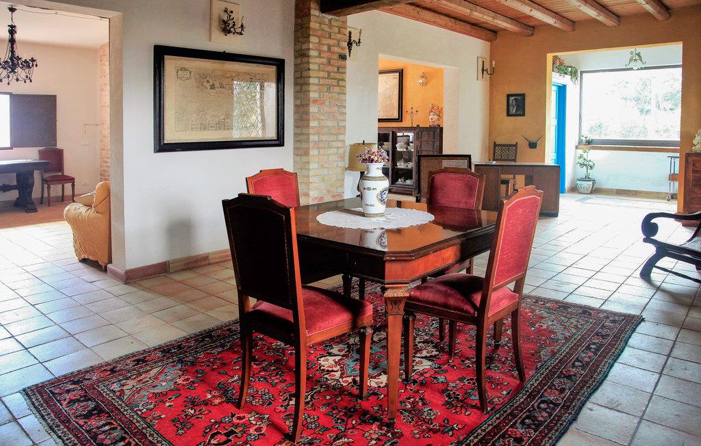 Ejendommen har mange forskellige frugttræer, appelsiner, mandariner, figner, blommer, granatæbler osv., der er tilgængelige for gæsterne. Ejeren bor i et familiehus omkring 50 m fra villaen. Huset strækker sig over stueetagen, hvor der er opholdsstue med to store værelser på ca. 50 m² hver (spisestue og stue) og køkkenområde udstyret med et professionelt køkken og et badeværelse (uden bruser). Her er fire soveværelser med private badeværelser, der har brusere. Soveværelserne, to tredobbelte værelser og to fire-sengs værelser er møbleret i stilen fra det 19. århundrede.