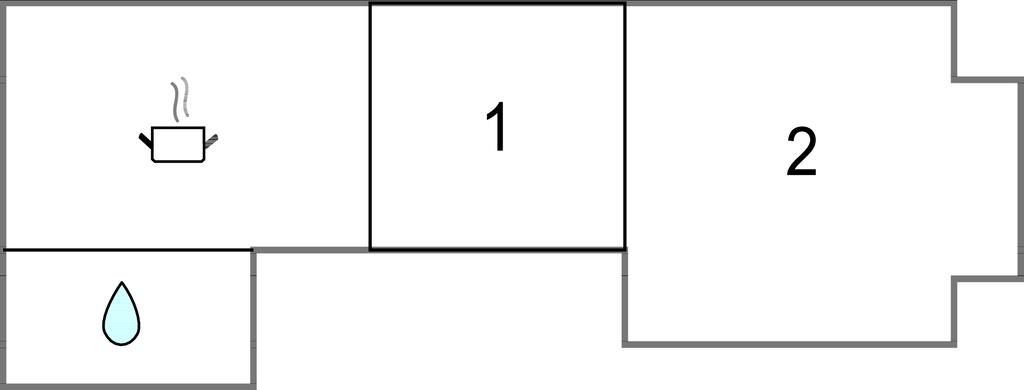 Badeværelse 4m2 (nr. 1) - WC. Varmt og koldt vand. Bruser