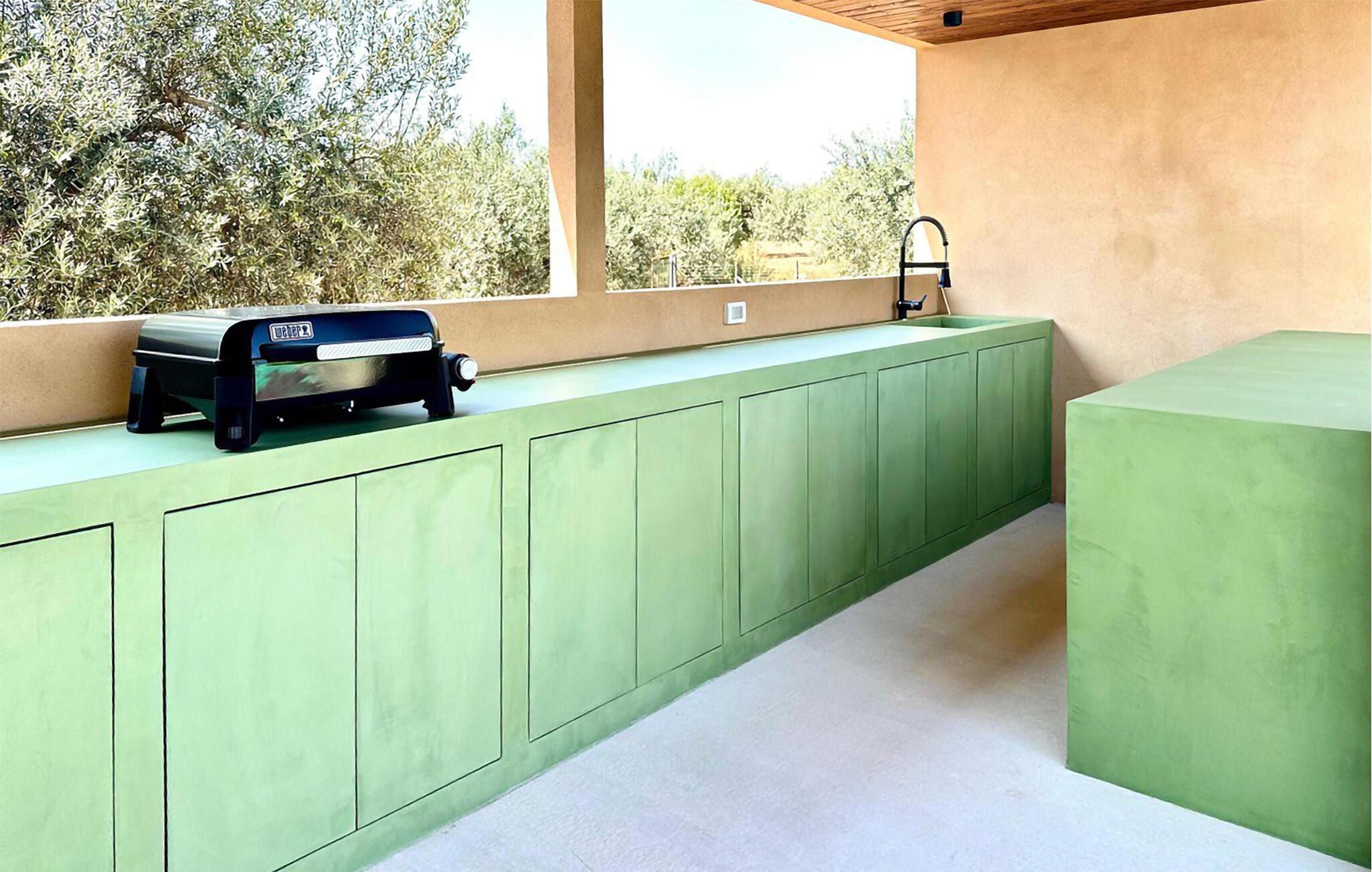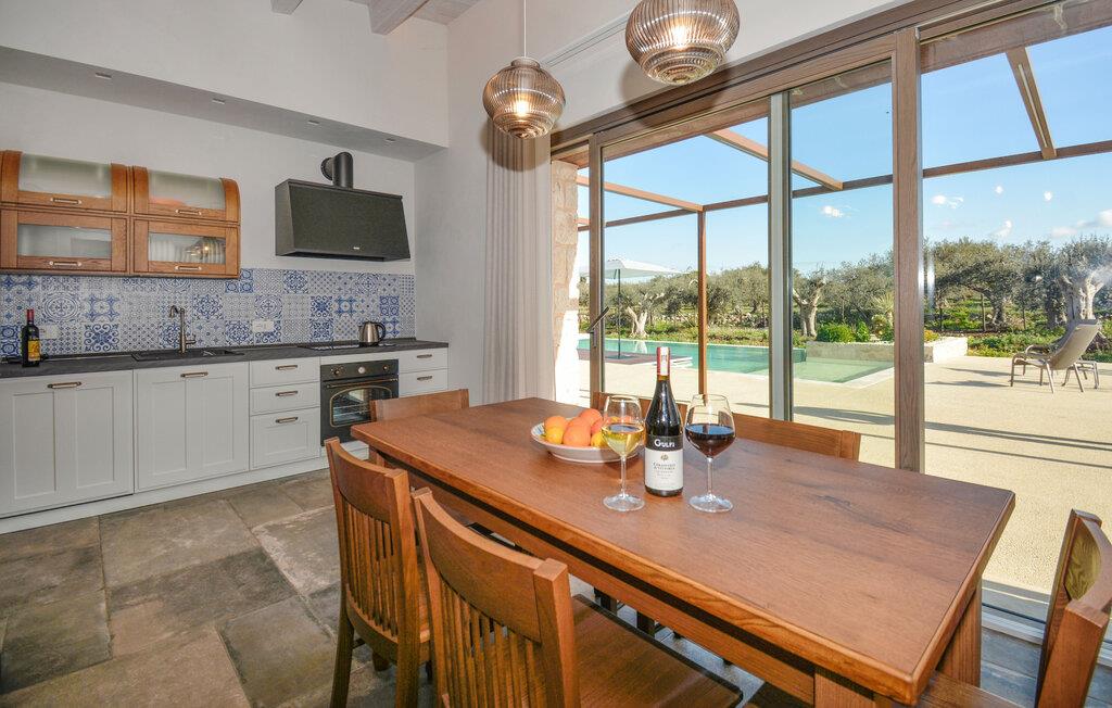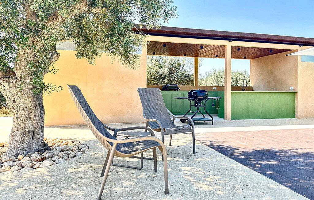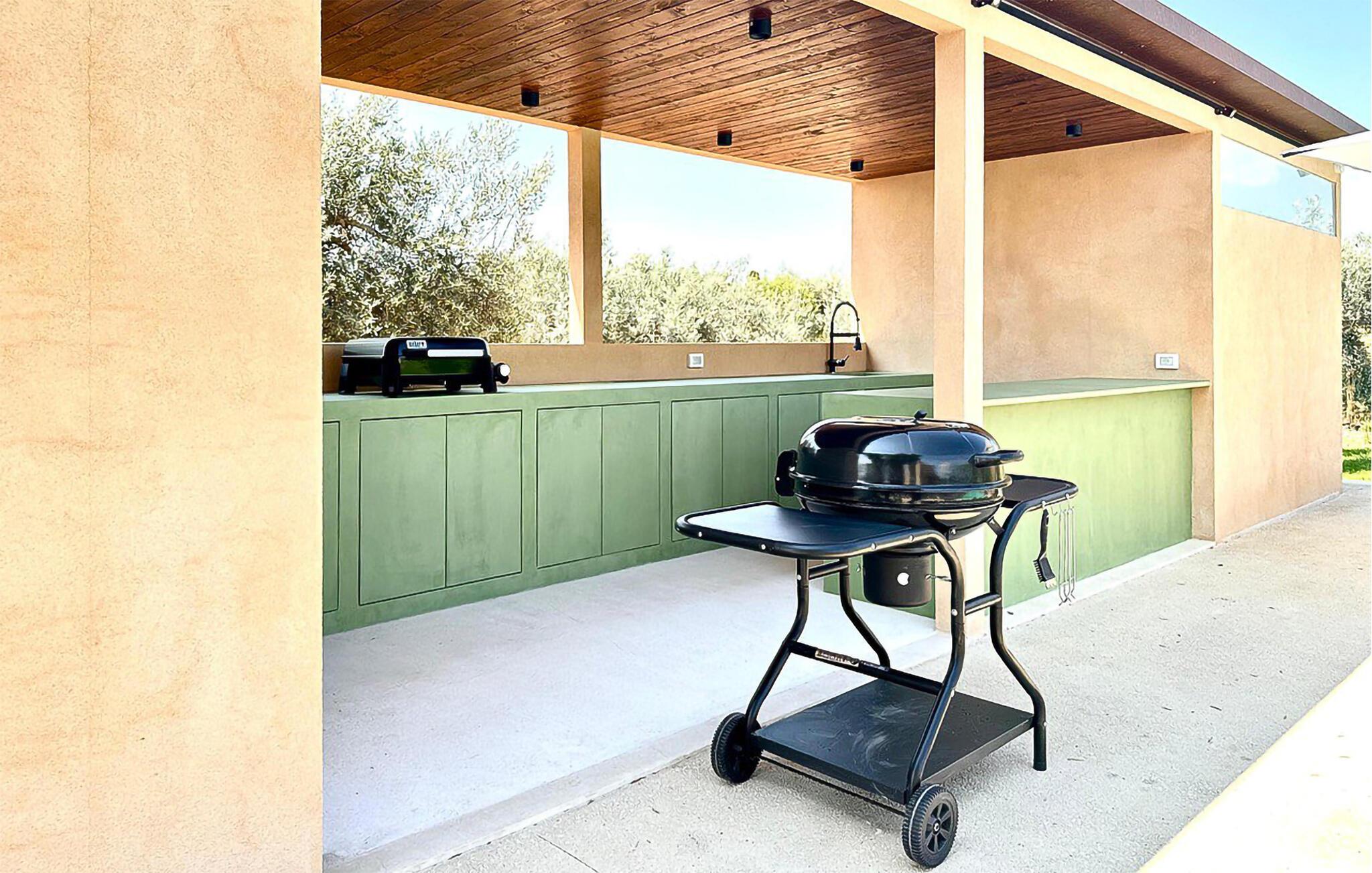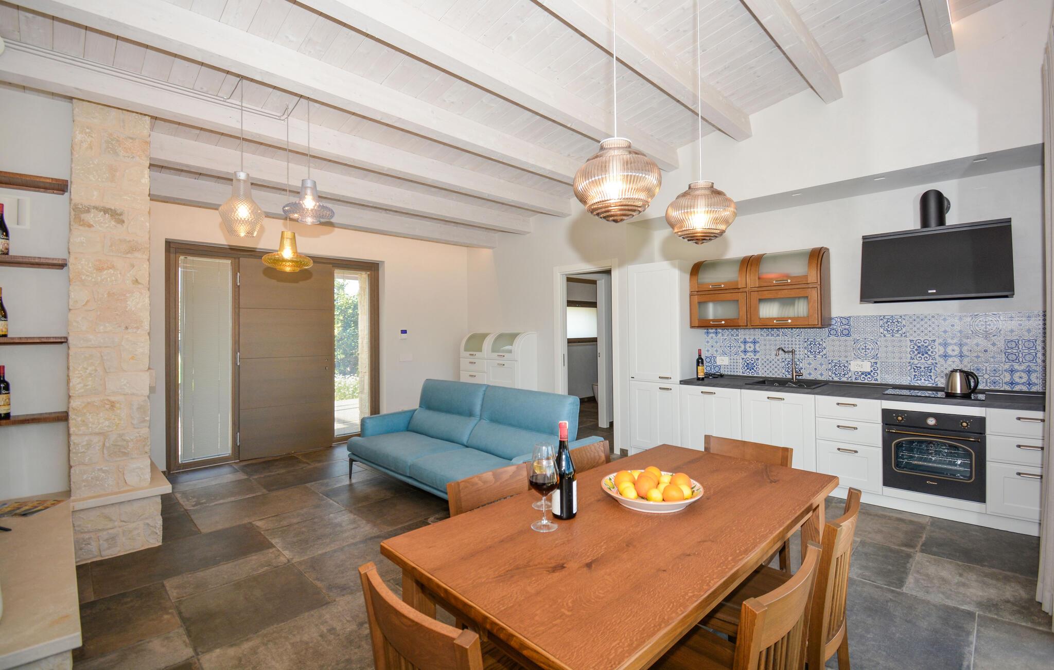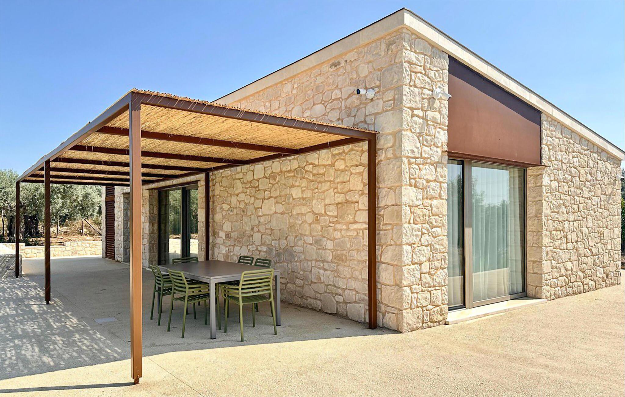 Omgivet af middelhavsvegetation kombinerer dette smukke feriehus rustik charme med moderne komfort. Bliv inspireret til at lave lækre retter i det moderne, åbne køkken og nyd jeres måltider ved det stilfulde spisebord med udsigt til det grønne. Slap af i den komfortable sofa og forkæl jer selv med tid til en god samtale og et glas siciliansk vin.