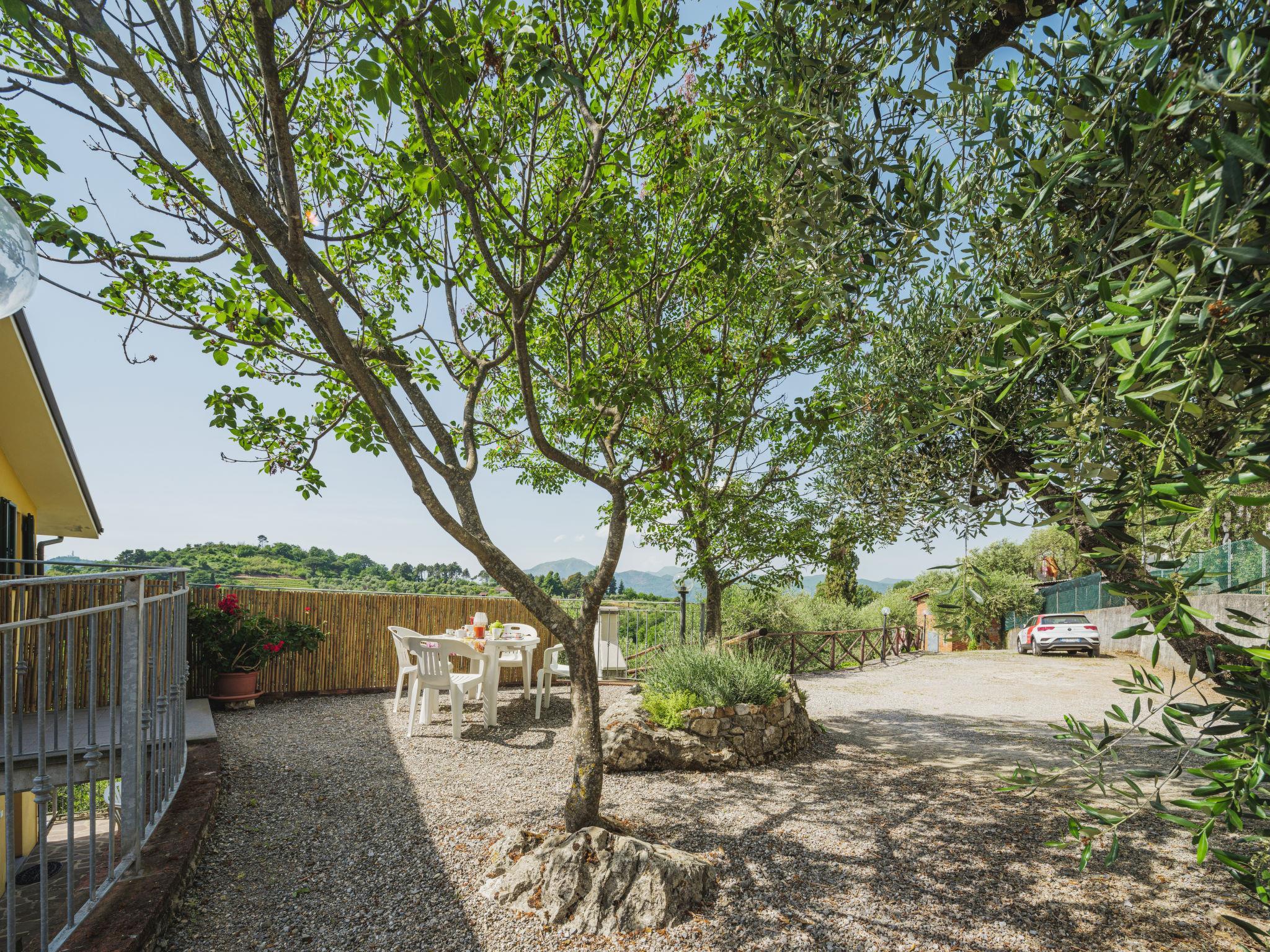Stabbiano 2 km from Chiatri: Beautiful 3-family house "Ca del Lovi", surrounded by trees. 2 km from the centre of Chiatri, 300 m from the centre of Stabbiano, 15 km from the centre of Lucca, on a slope, 19 km from the sea, 19 km from the beach, in the countryside. For shared use: terraced garden, 4'000 m2 (fenced) with trees, natural garden. Barbecue. In the house: central heating system, heating to be paid on the spot (28.Mar. - 30.Oct.), heating available only from 31.Oct. - 27.Mar.. 500 m long narrow motor access. Parking on the premises. Supermarket 6 km, bus stop 5.2 km, sandy beach "Viareggio" 19 km. Nearby attractions: Pisa 25 km, San Giuliano Terme 20 km, Collodi Pinocchio Park 29 km, Pietrasanta 32 km, Forte dei Marmi 32 km, Carrara Cave Fantiscritti 53 km. Well-known lakes can easily be reached: Torre del Lago 23 km, Lago di Massaciuccoli 16 km. Please note: car recommended.