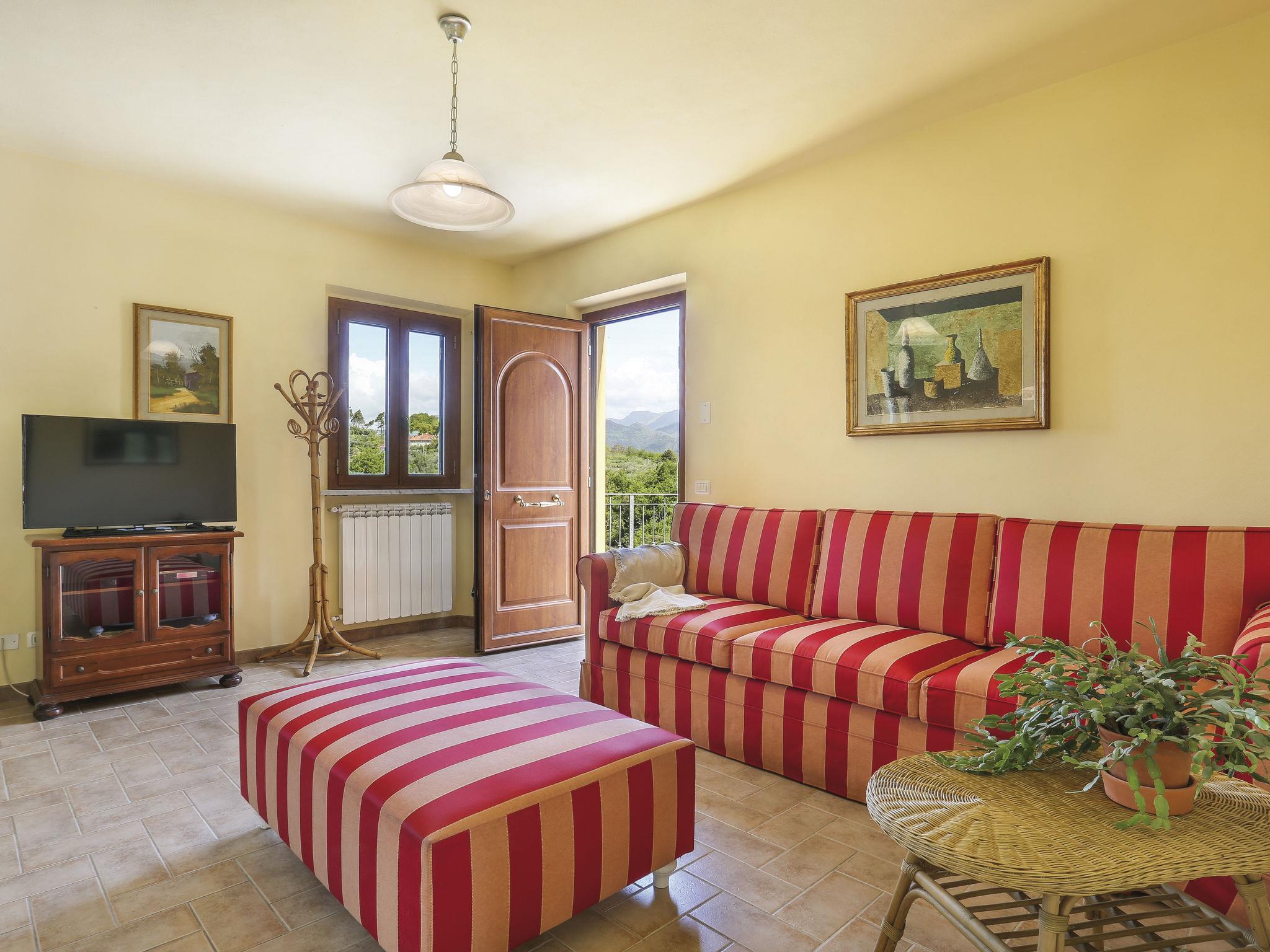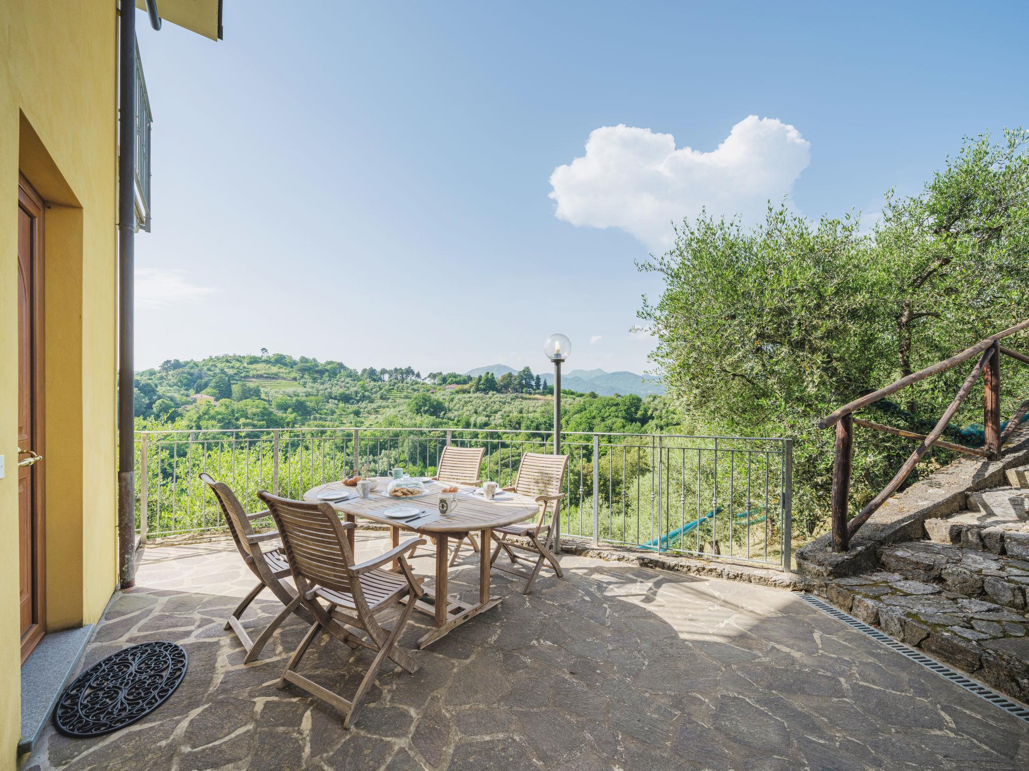 Stabbiano 2 km from Chiatri: Beautiful 3-family house "Ca del Lovi", surrounded by trees. 2 km from the centre of Chiatri, 300 m from the centre of Stabbiano, 15 km from the centre of Lucca, on a slope, 19 km from the sea, 19 km from the beach, in the countryside. For shared use: terraced garden, 4'000 m2 (fenced) with trees, natural garden. Barbecue. In the house: central heating system, heating to be paid on the spot (28.Mar. - 30.Oct.), heating available only from 31.Oct. - 27.Mar.. 500 m long narrow motor access. Parking on the premises. Supermarket 6 km, bus stop 5.2 km, sandy beach "Viareggio" 19 km. Nearby attractions: Pisa 25 km, San Giuliano Terme 20 km, Collodi Pinocchio Park 29 km, Pietrasanta 32 km, Forte dei Marmi 32 km, Carrara Cave Fantiscritti 53 km. Well-known lakes can easily be reached: Torre del Lago 23 km, Lago di Massaciuccoli 16 km. Please note: car recommended.