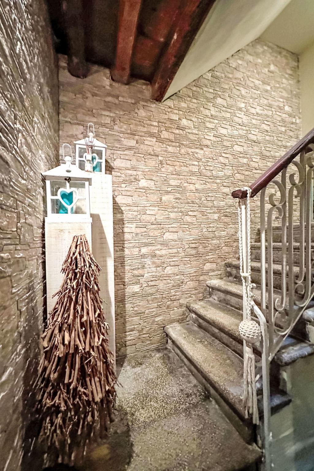 4-room house 95 m2 on 5 levels. Spacious, renovated in 2024, rustic and stylish furnishings: entrance hall. Bath/shower/bidet/WC. Upper floor: (steep stair). Open kitchen (2 hot plates, toaster, kettle, microwave, electric coffee machine, Capsules for coffee machine (Nespresso) free, cooking island) with dining table. 2nd upper floor: (steep stair), 1 room, without wardrobe with 2 beds. 3nd upper floor: (steep stair), 1 double bedroom, without wardrobe with shower. Top floor: (steep stair) living room with TV. Exit to the balcony. Electric heating, air-conditioning. Small balcony. Panoramic view of the city. Facilities: hair dryer. Internet (WiFi, free). Please note: not suitable for small children. Non-smoking house. No lift. IT027008B4FMQ5ANMX