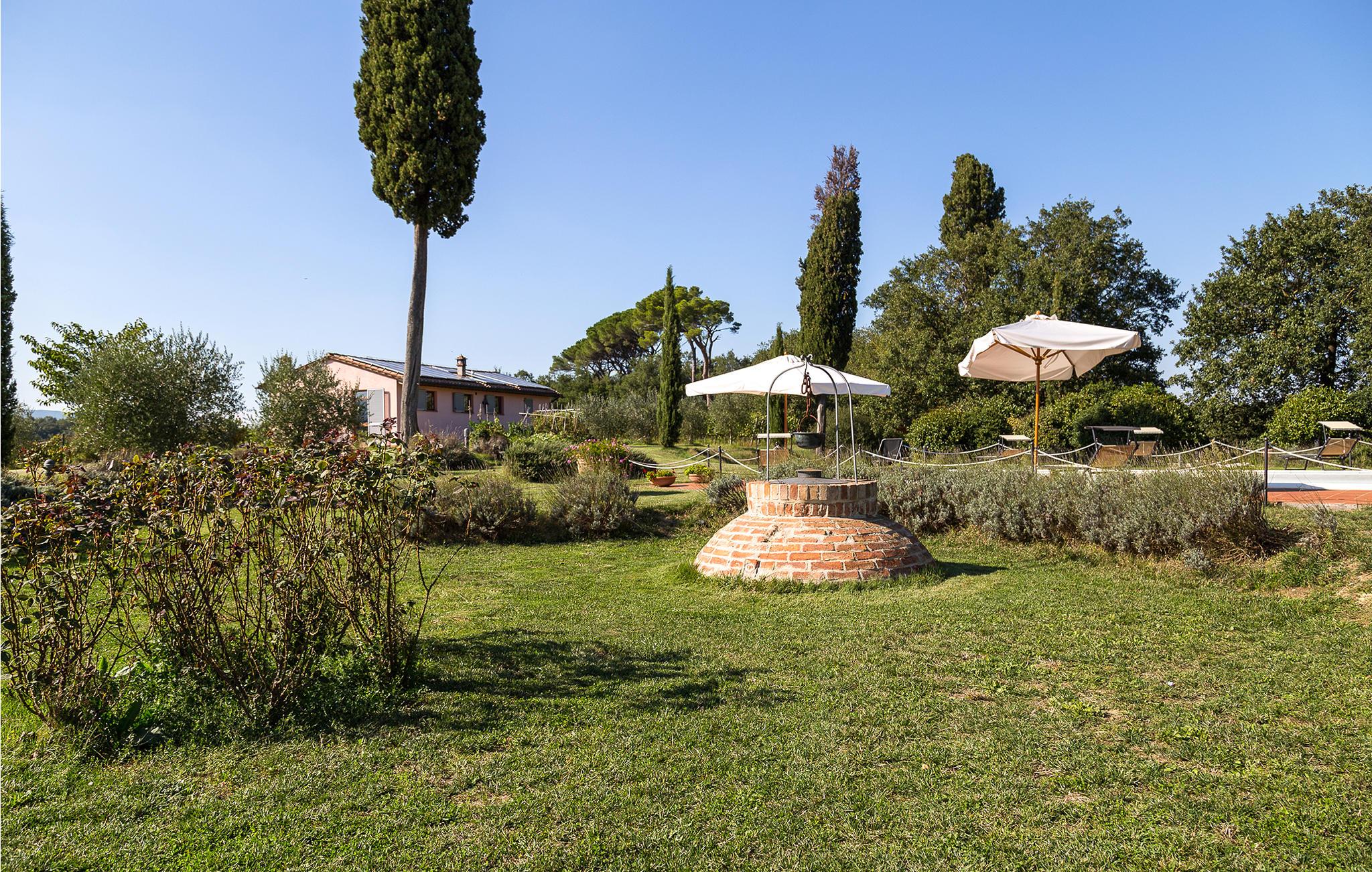 Dette skønne hus kan rumme op til 12 gæster. Den store private have med egen pool er et fantastisk sted at slappe af og nyde det vidunderlige toscanske klima. Her kan I begynde dagen med en lækker morgenmad eller afslutte dagen med et glas lokal vin, mens I beundrer udsigten til det omgivende kuperede landskab.