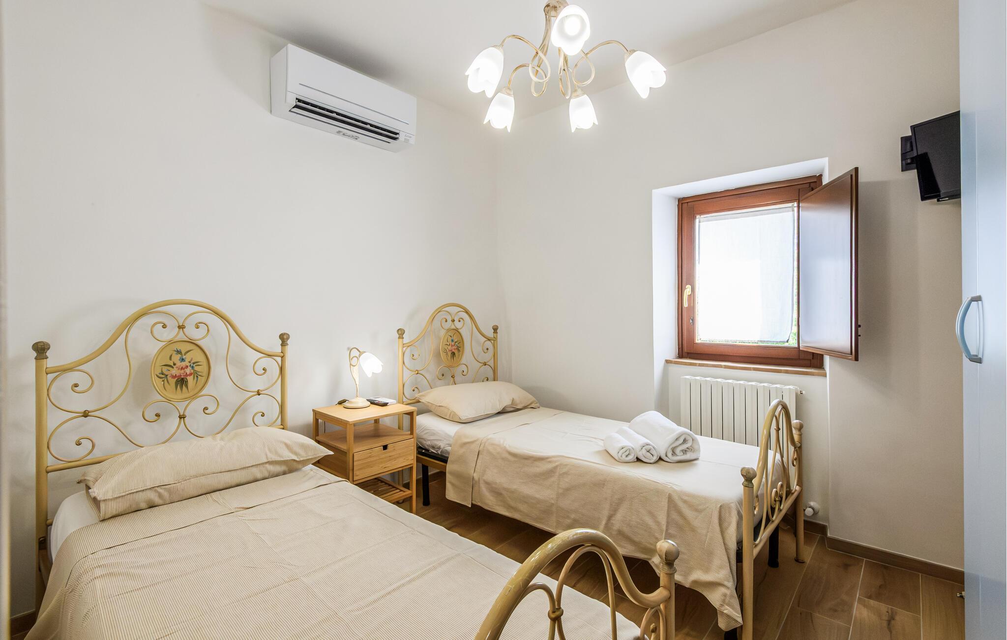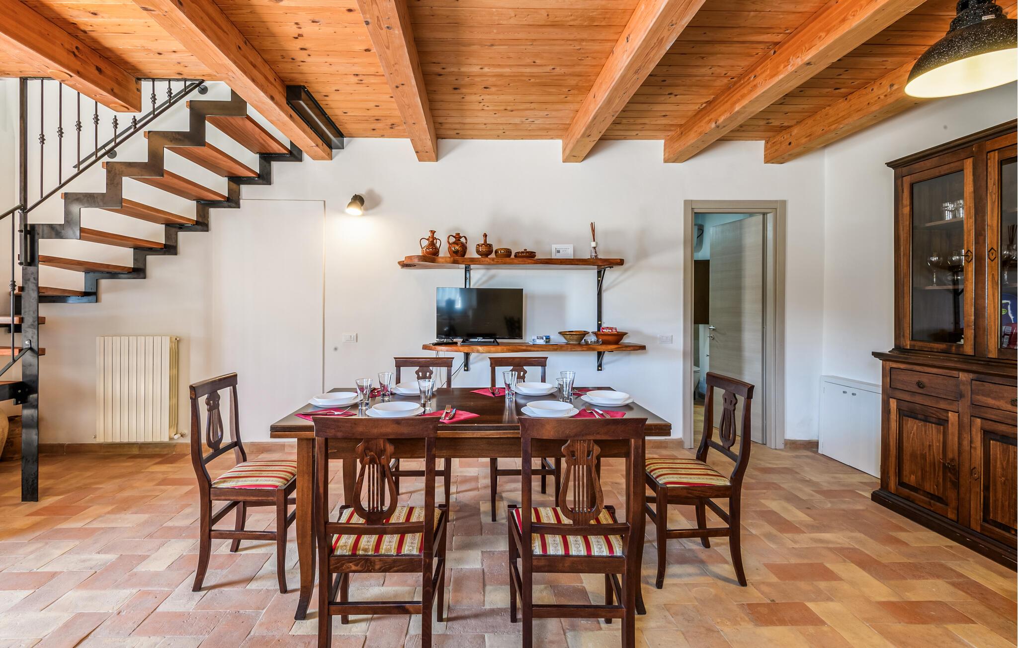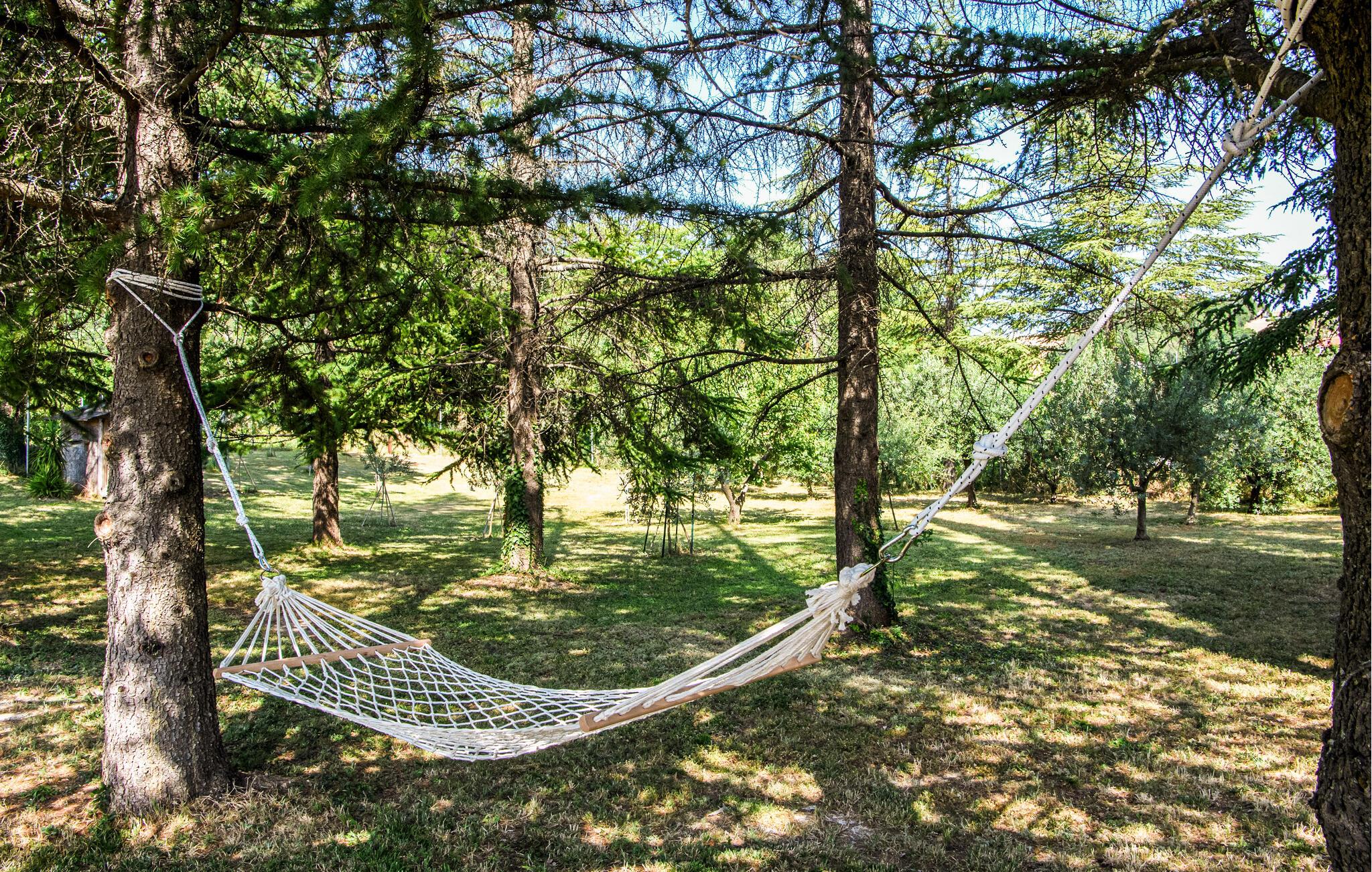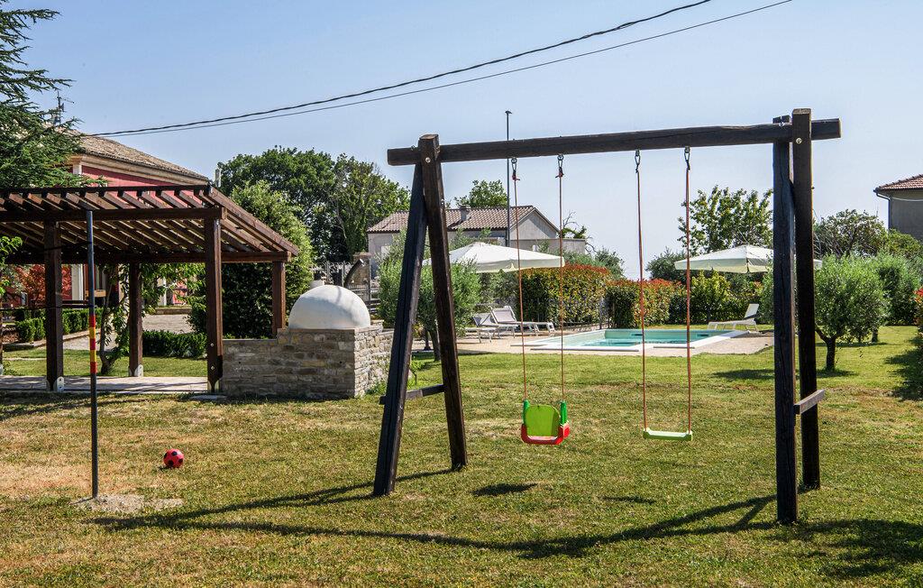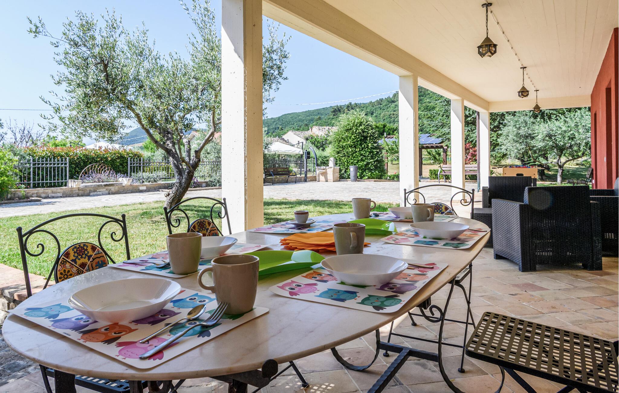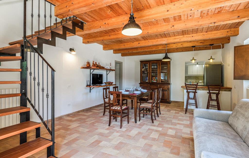 Lige uden for Cingoli ligger dette charmerende feriehus, som er omgivet af det maleriske Marche-landskab. Måske får I lyst til at hoppe i den rummelige pool lige fra morgenstunden? Poolen er omgivet af velholdte grønne områder og skyggefulde træer. I kan nyde morgenmaden på den overdækkede terrasse, som er udstyret med et stort spisebord. Her kan I nyde den friske luft og naturens ro. Stuen er udstyret med bjælkelofter og komfortable møbler, hvilket skaber en hyggelig atmosfære.