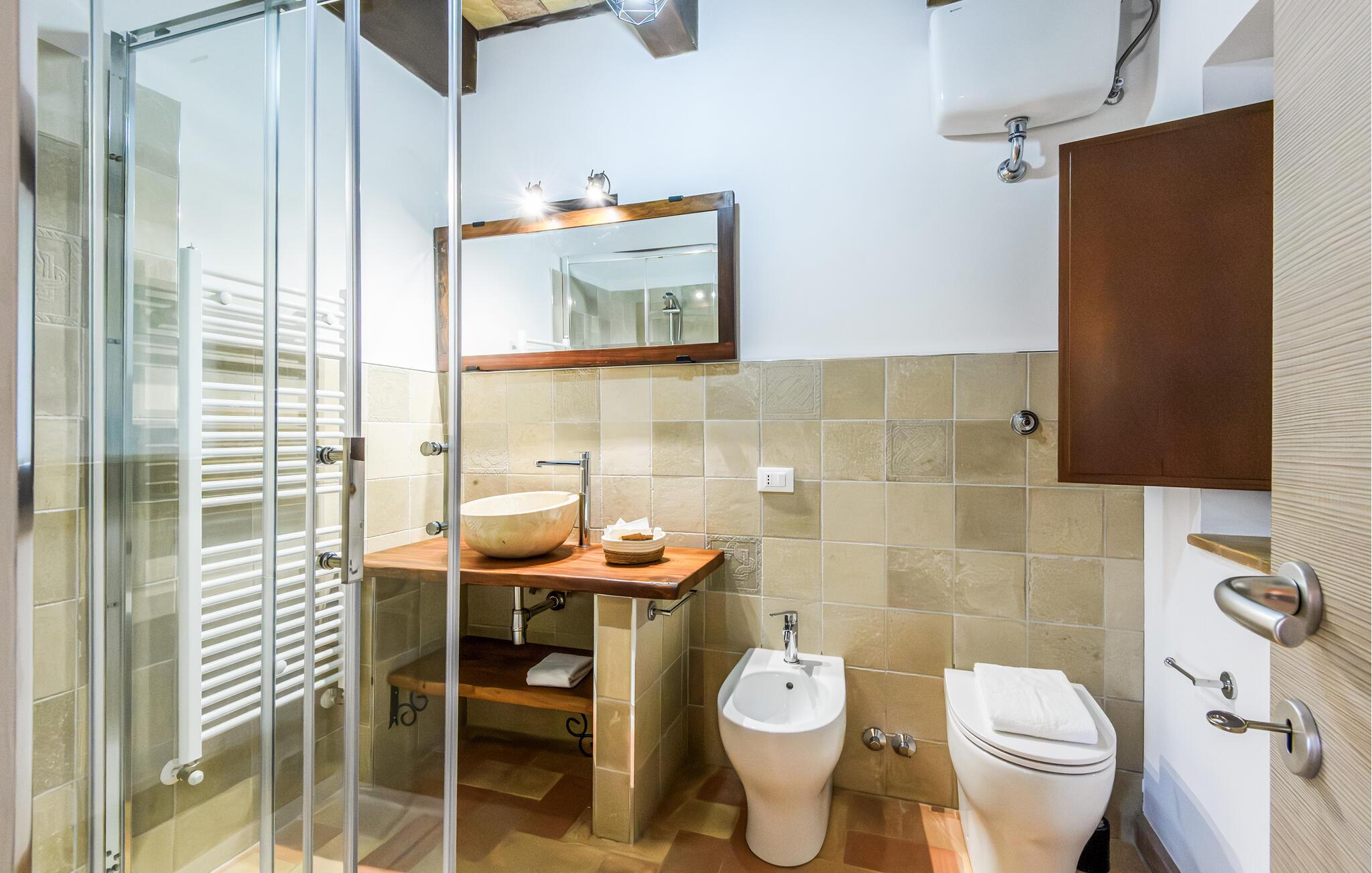 Badeværelse (nr. 1) - WC. Varmt og koldt vand. Bruser