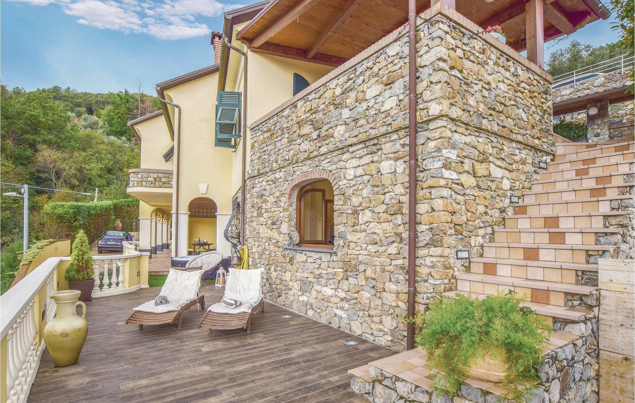 Tilbring en dejlig ferie i denne skønne feriebolig. Det er tale om et dobbelthus med whirlpool som ligger i nærheden af San Pietro Frascati, ca. 9 km fra de strande som tryllebandt H. C. Andersen: Baia del Silenzio og Baia delle Favole. Ferieboligen som har egen indgang består af en stor opholdsstue med sovesofa og køkken, to badeværelser og to soveværelser med dobbeltsenge. Fra opholdsstuen er der adgang til haven med veranda, hvor I kan spise under åben himmel, eller slappe af i whirlpoolen. Beliggenheden er ikke kun perfekt til en udflugt til Sestri Levante hvor den internetionale Andersen Award uddeles, men også til Europas førset landsby med økologisk certifikat Val di Vara. Her kan I købe købe lækre økologiske specialiteter som marmelade, mælk eller pølser. Her kan I også benytte de mange trekkingruter eller mountainbike stier som fører jer ud i skove og i de skønne landskaber. Dem der er i god form kan tage turen til Cinque Terre mellem vinbjergene f.eks. 'vej 5' som forbinder Monterosso med Vernazza, eller på Via dell'amore i Riomaggiore. Fra Sestri Levante kan I desuden tage færgen til Cinque Terre - en god mulighed for at betragte den enestående måde byerne er bygget i terrasser. Ture til Margherita Ligure, Rapallo eller Portofino kan ligeledes anbefales. Fra Portofino kan I f.eks. tage en tur langs den 15 km lange sti fra San Michele di Pagna til Piazzazetta - enten til fods eller på cykel. Udsigten er fantastisk.