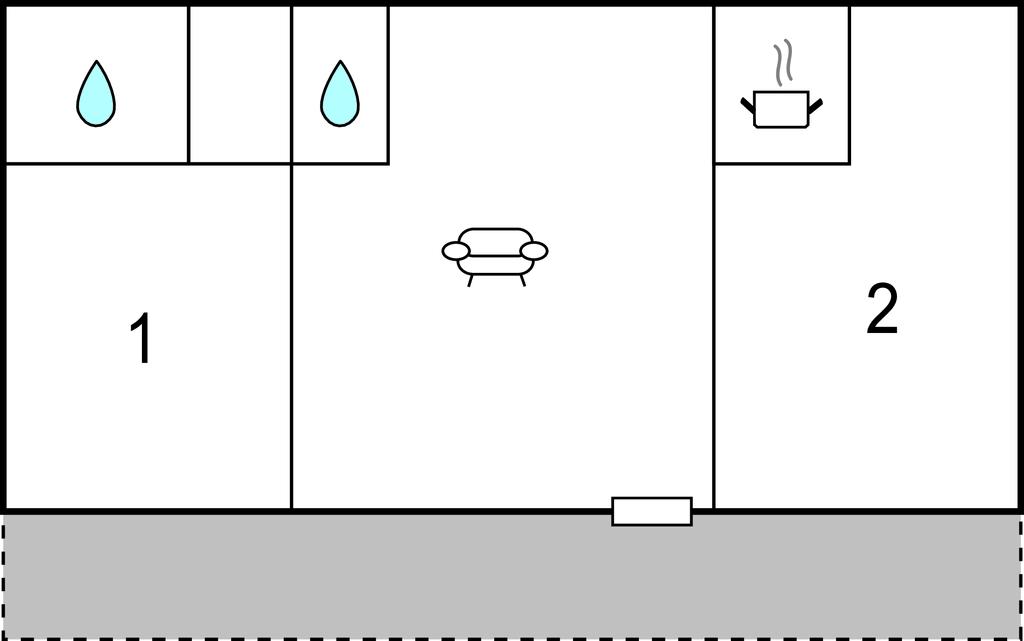 Opholdsstue/køkken - 1 Soveplads. (Sofa, madras eller lignende).
