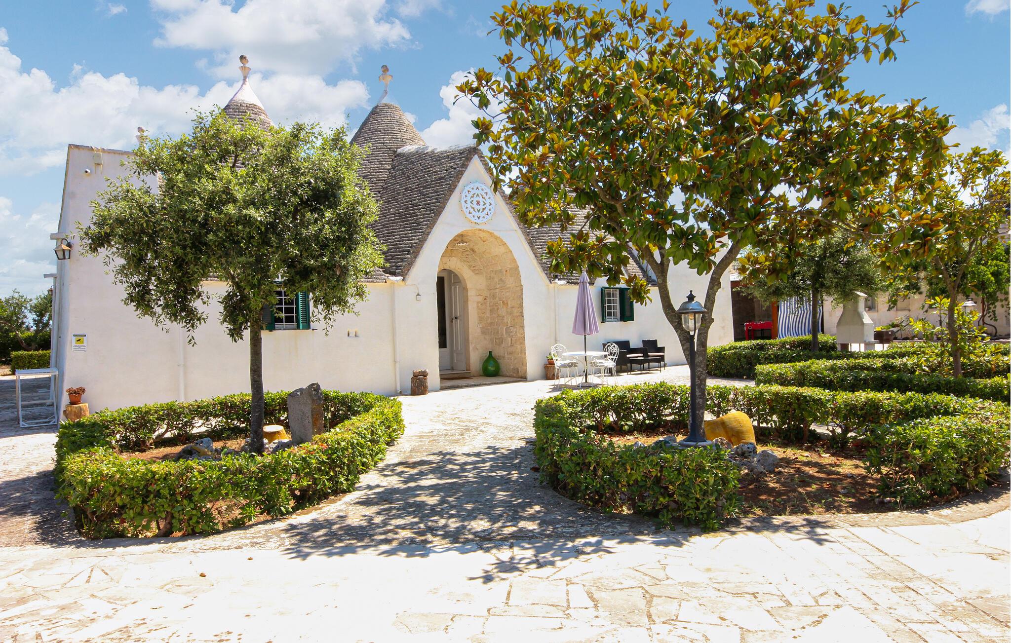 Gå en tur gennem de snoede gamle gader i Cisternino, stop ved en hyggelig trattoria og se panoramaudsigten over Valle d'Itria. begiv jer ud på cykel gennem olivenlundene, besøg de berømte trulli i Alberobello, og udforsk de hvidkalkede byer Ostuni og Locorotondo med deres unikke gamle bydele og livlige markeder. For en dag ved havet anbefaler vi de smukke strande ved Torre Canne eller Savelletri.
