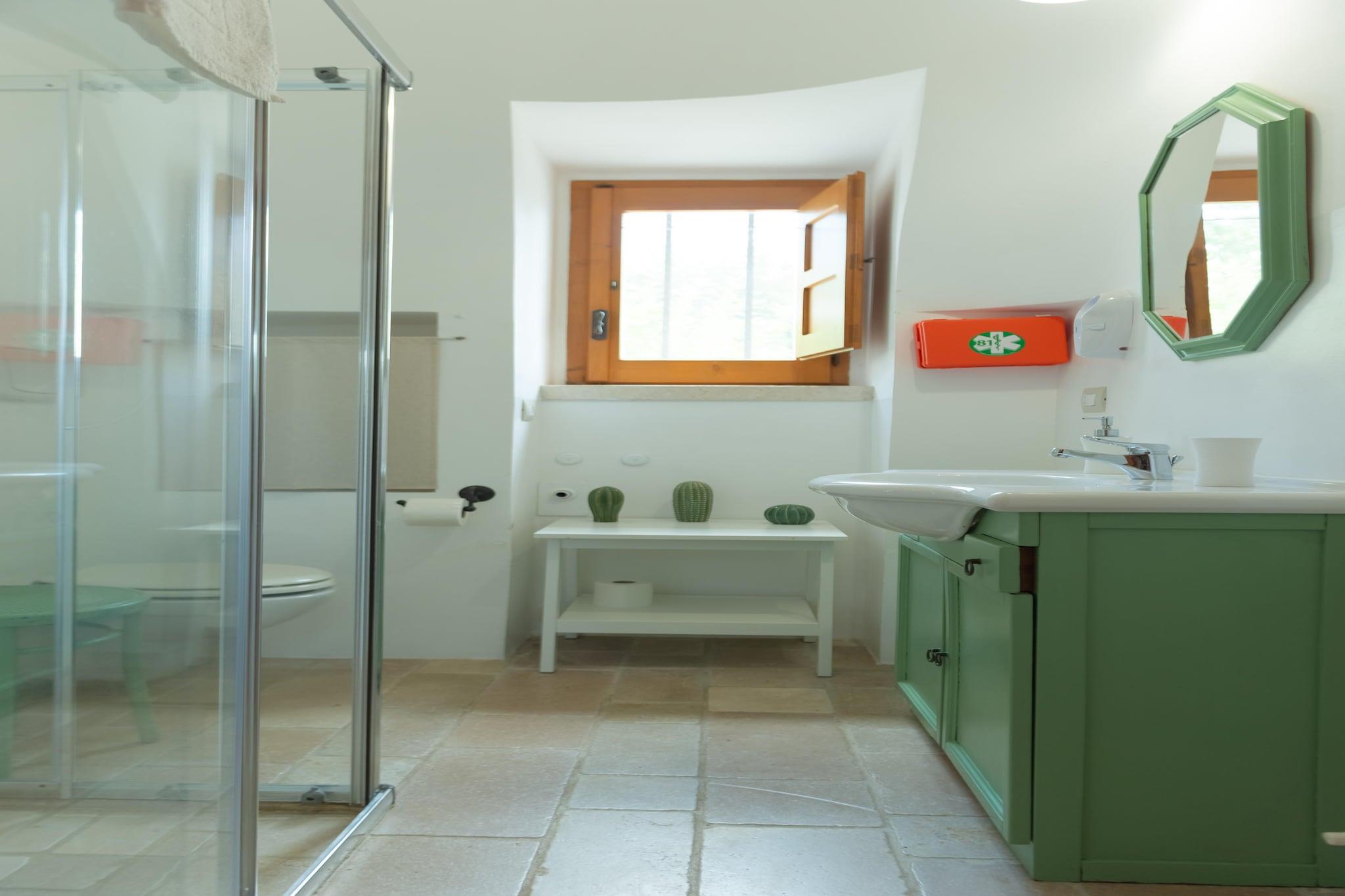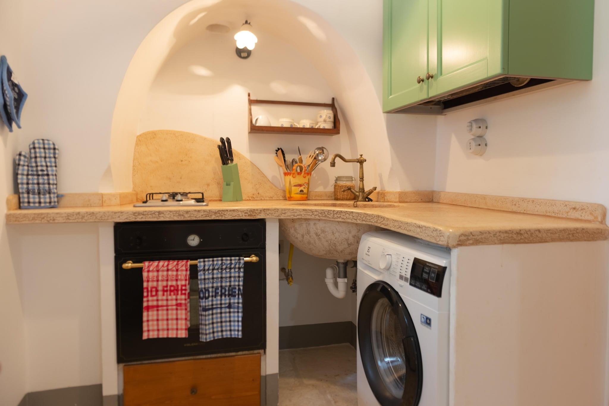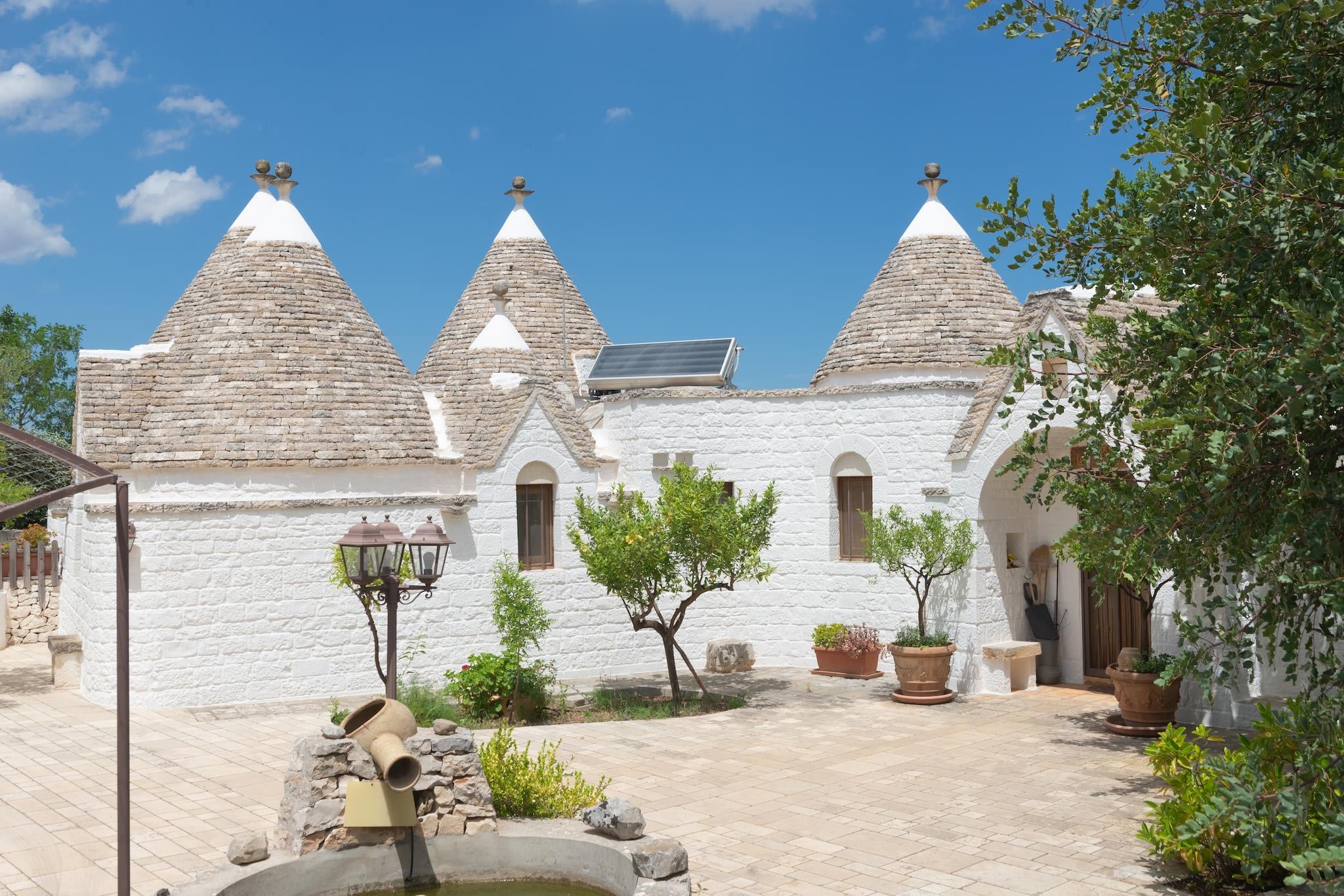 Trulli Azzalema er en historisk bolig, for nylig renoveret og designet til at tilbyde sine gæster alle moderne bekvemmeligheder. I haven er der en smuk infinity pool (4m x 10m) udstyret med udendørs bruser, en grill til rådighed for gæster og to borde placeret i skyggen af ??oliventræer, ideel til hyggelige stunder. Trullien består af to enheder: den første er udstyret med en stue-køkken med tv, to soveværelser (en dobbeltseng, en tvilling) og et badeværelse med bruser; den anden har et veludstyret køkken med TV, to soveværelser (en dobbeltseng, en tvilling) med badeværelse. Hele ejendommen kunne rumme 8 personer Beliggende i hjertet af Itria-dalen, mellem det middelalderlige historiske centrum af Ostuni, Cisternino, Locorotondo, Martina Franca og Alberobello, hovedstaden i Trulli og UNESCO World Heritage Site, kun 15 km fra sandstrandene og det krystalklare hav af Adriaterhavskysten: pragtfulde kystbyer som Monopoli og Polignano a Mare er inden for rækkevidde. Itria-dalen er også en ideel destination for elskere af cykler og vandreture i naturen: Den Apulianske Akvædukt-cykelsti giver mulighed for at fordybe dig i en strækning på omkring 20 km i et unikt landskab lavet af århundreder gamle oliventræer, vinmarker og kultiverede marker, tørre stenmure, trulli og gårde. Mobilitet: ikke egnet til personer med nedsat mobilitet