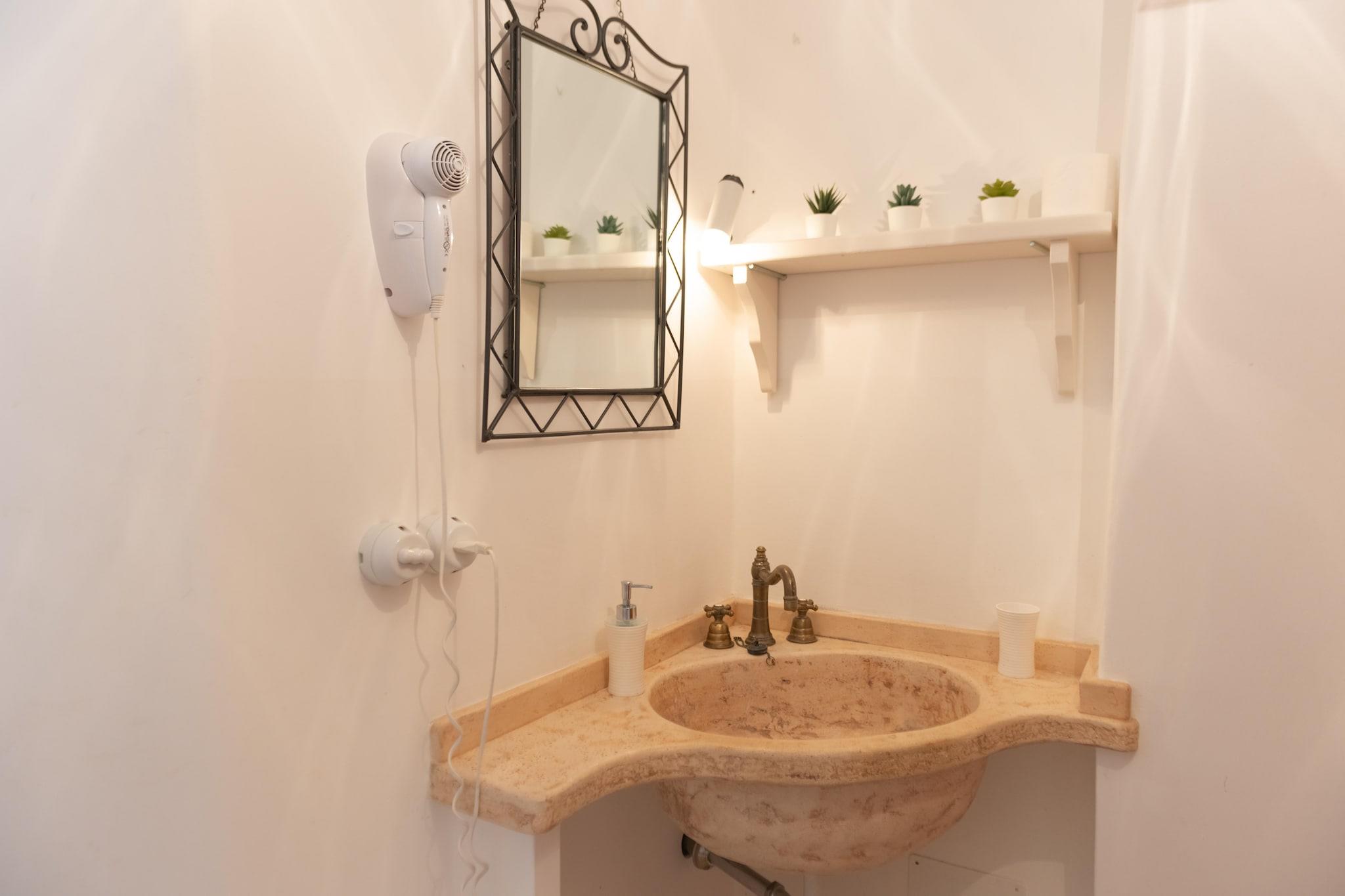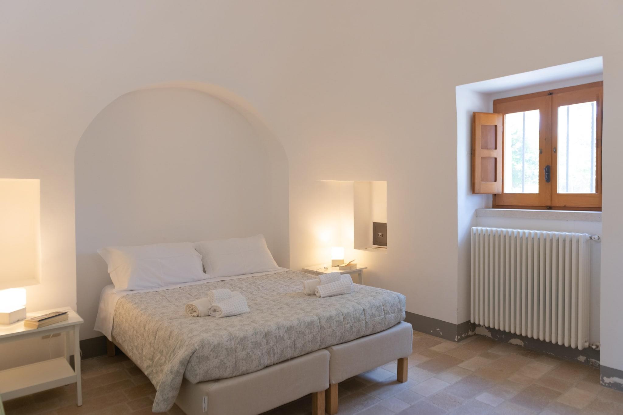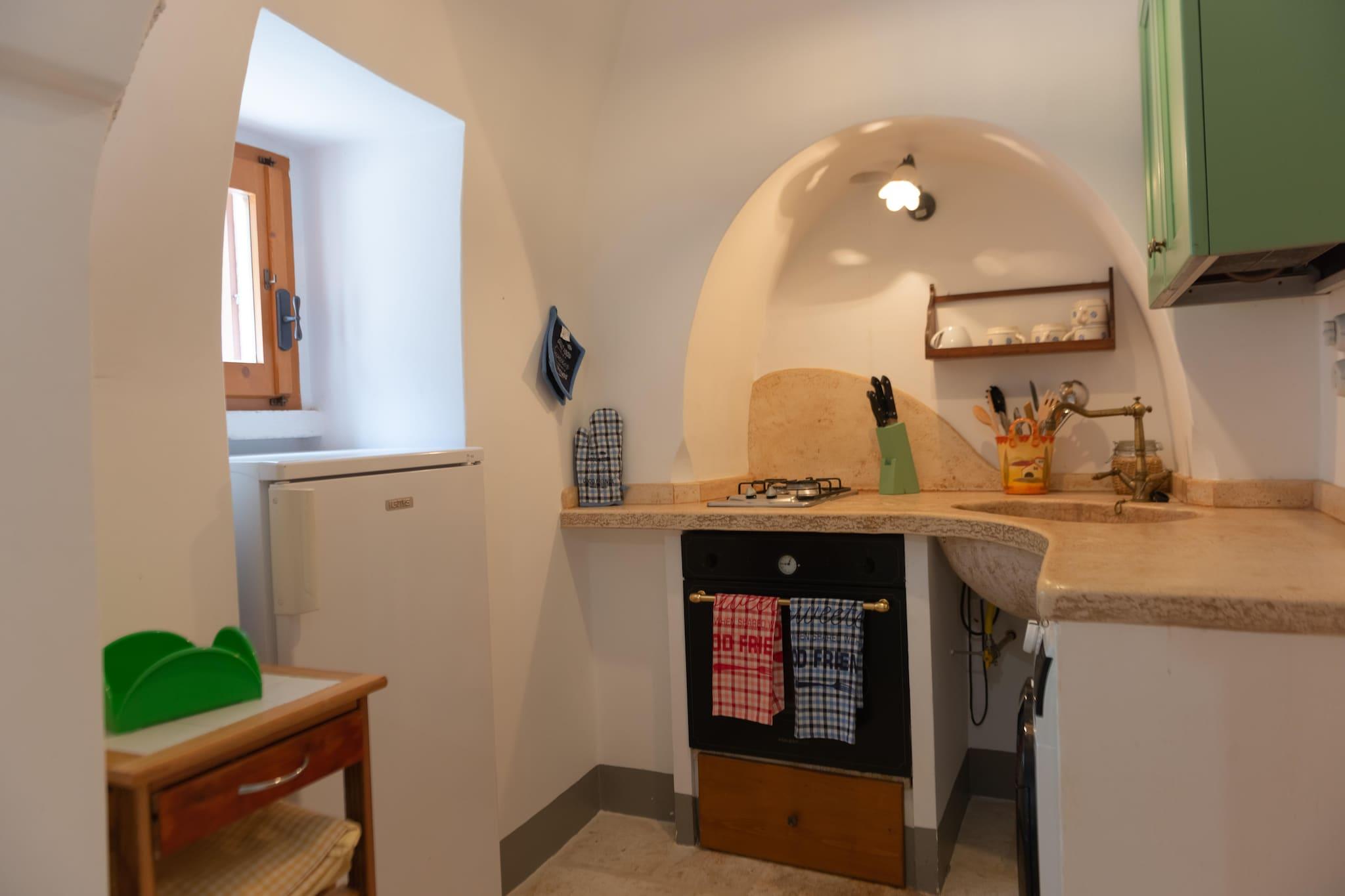 Trulli Azzalema er en historisk bolig, for nylig renoveret og designet til at tilbyde sine gæster alle moderne bekvemmeligheder. I haven er der en smuk infinity pool (4m x 10m) udstyret med udendørs bruser, en grill til rådighed for gæster og to borde placeret i skyggen af ??oliventræer, ideel til hyggelige stunder. Trullien består af to enheder: den første er udstyret med en stue-køkken med tv, to soveværelser (en dobbeltseng, en tvilling) og et badeværelse med bruser; den anden har et veludstyret køkken med TV, to soveværelser (en dobbeltseng, en tvilling) med badeværelse. Hele ejendommen kunne rumme 8 personer Beliggende i hjertet af Itria-dalen, mellem det middelalderlige historiske centrum af Ostuni, Cisternino, Locorotondo, Martina Franca og Alberobello, hovedstaden i Trulli og UNESCO World Heritage Site, kun 15 km fra sandstrandene og det krystalklare hav af Adriaterhavskysten: pragtfulde kystbyer som Monopoli og Polignano a Mare er inden for rækkevidde. Itria-dalen er også en ideel destination for elskere af cykler og vandreture i naturen: Den Apulianske Akvædukt-cykelsti giver mulighed for at fordybe dig i en strækning på omkring 20 km i et unikt landskab lavet af århundreder gamle oliventræer, vinmarker og kultiverede marker, tørre stenmure, trulli og gårde. Mobilitet: ikke egnet til personer med nedsat mobilitet