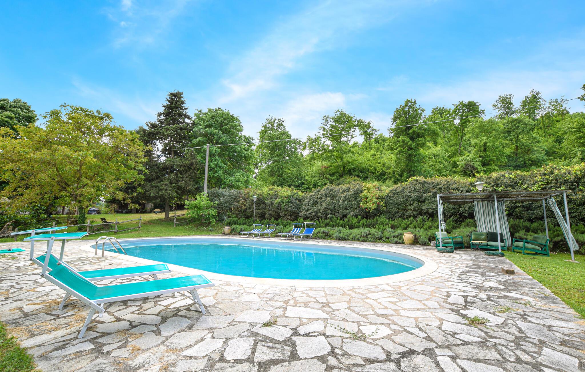 Tilbring afslappende dage i denne rummelige ferielejlighed med adgang til poolen i en idyllisk beliggenhed.