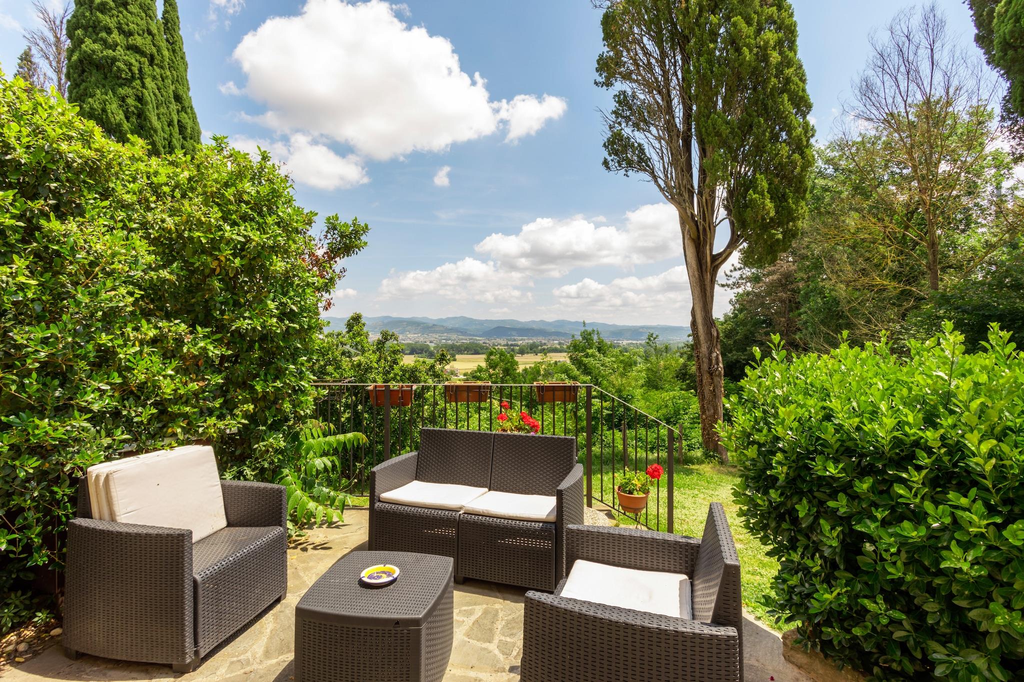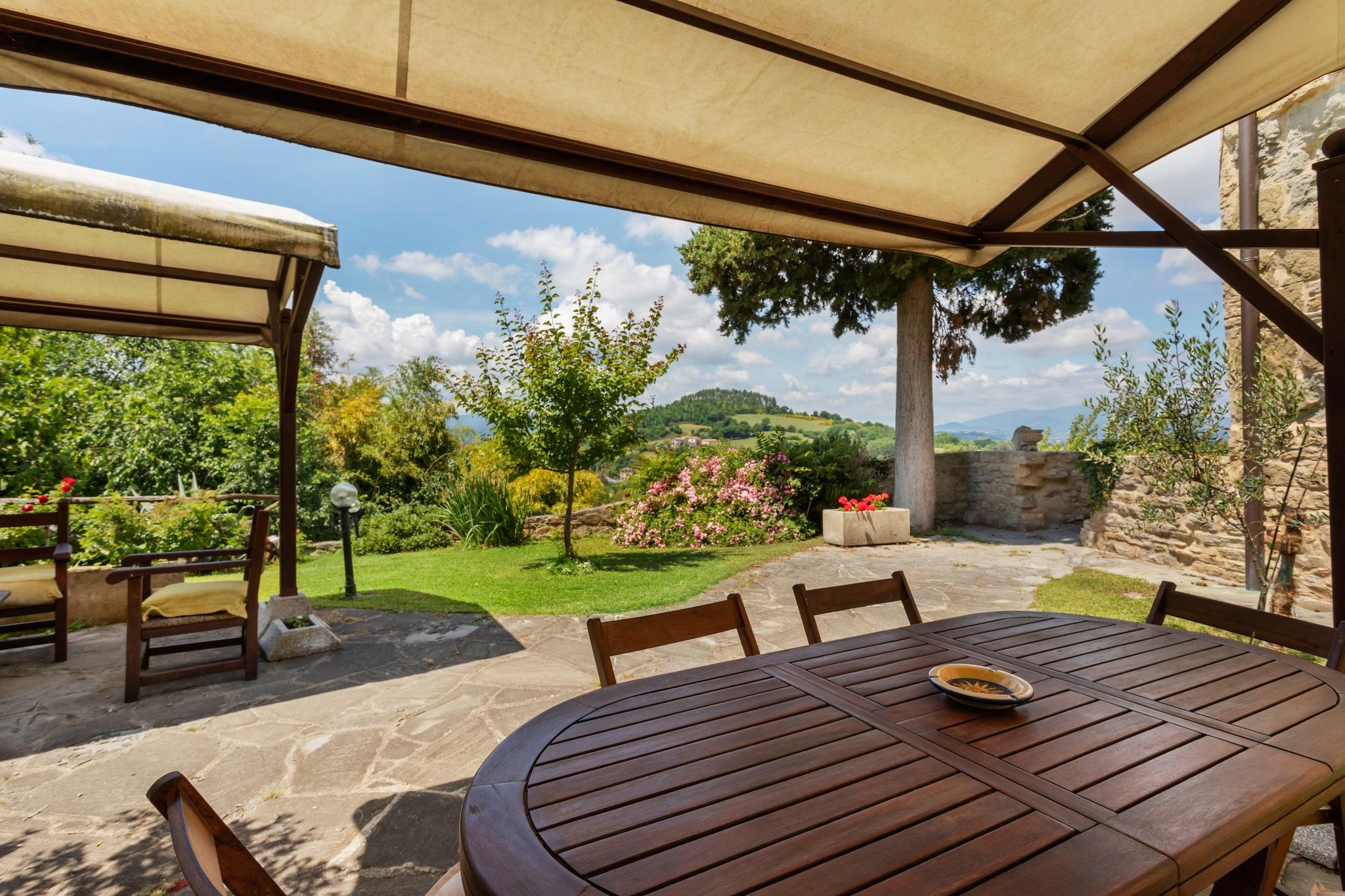 Flygt til hjertet af Umbrien med dette kæledyrsvenlige feriehus til seks gæster, der tilbyder en fredelig oase omgivet af natur. Beliggende kun 9 km fra Città di Castello, tilbyder dette charmerende feriested gratis WiFi, en frodig have og adgang til en fælles swimmingpool (17 x 7 m, åben maj-september). Uanset om du slapper af i det hyggelige interiør eller udforsker nærliggende attraktioner, garanterer dette hjem et afslappende og mindeværdigt ophold. Anden sal har en rummelig stue og spisestue med en sovesofa til én person, tv, spisebord og pejs, samt et fuldt udstyret køkken med kogeplader med fire kogeplader, emhætte, køleskab og håndvask. Hjemmet har to komfortable soveværelser, et med en dobbeltseng eller to enkeltsenge og en barneseng, og et andet med en enkeltseng og en dobbeltseng eller to enkeltsenge, samt et badeværelse med bruser, håndvask, toilet og bidet. Gæsterne kan også nyde en bar, havemøbler, liggestole, grillplads, parkering, parasol, legeredskaber og fitnessudstyr, hvilket sikrer et bekvemt og behageligt ophold. I nærheden fremviser Castello Bufalini fantastisk renæssancearkitektur, mens Convento Eremo di Montecasale tilbyder et fredeligt tilflugtssted med betagende udsigt. Montone - Centro Storico tilbyder en charmerende middelalderlig atmosfære, perfekt til en naturskøn spadseretur. Til spisning serverer Pappa e Ciccia autentisk italiensk mad. Uanset om du udforsker kulturelle vartegn eller nyder lokale smagsoplevelser, er dette feriehus det perfekte umbriske hjem. tilbagetog.