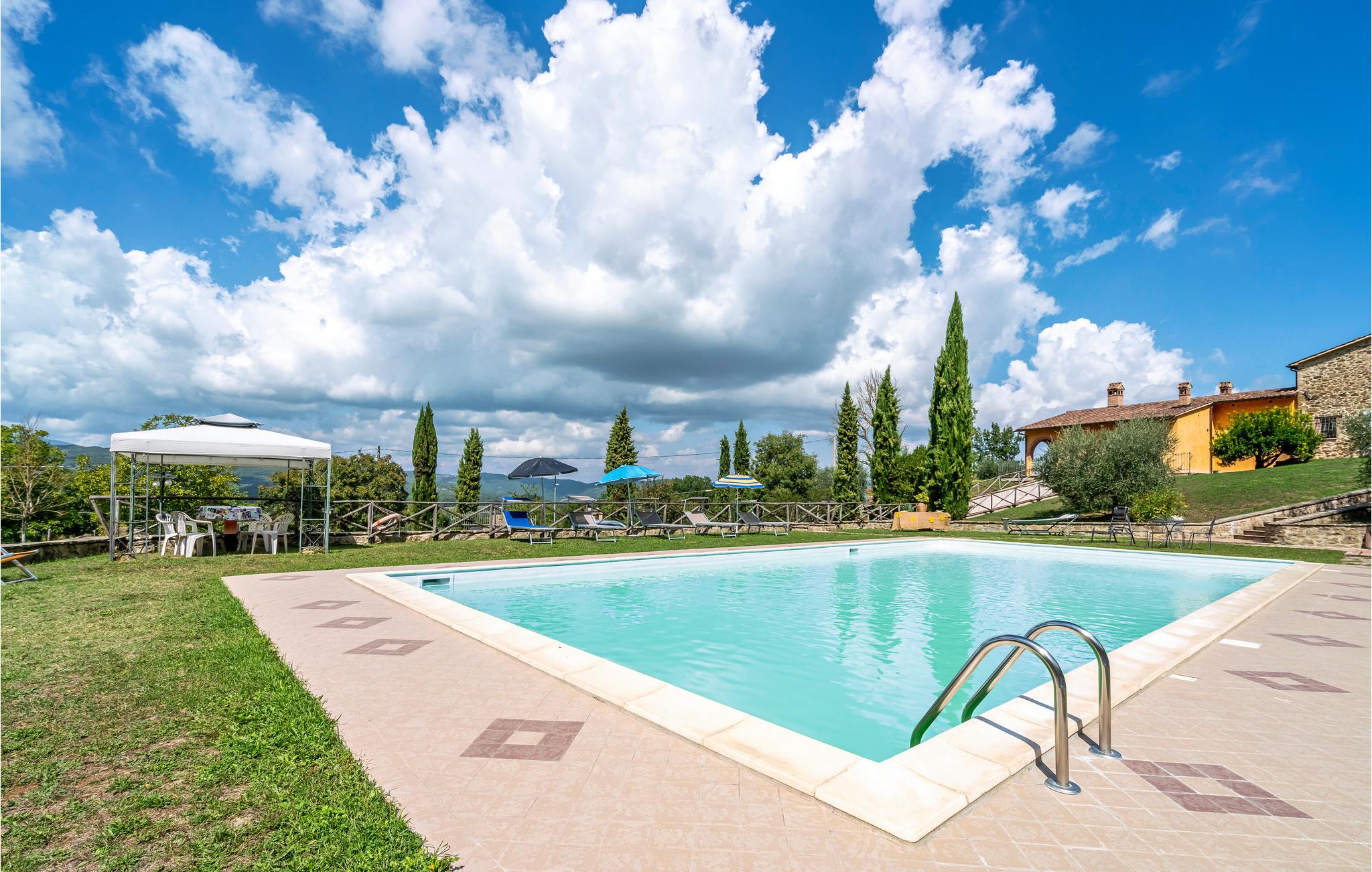 Dæk op til morgenmad på terrassen og nyd dagens første solstråler, mens I taler om, hvad dagen vil bringe. Måske skal I slappe af i haven, hvor børnene kan lege og boltre sig, eller måske vil I tilbringe dagen med masser af badesjov i den store pool. Omkring poolen er der rig mulighed for at slappe af og nyde solen i liggestolene. Afslut dagen med en storslået grillmiddag med friske lokale råvarer, mens I nyder udsigten over Tiber-dalen.