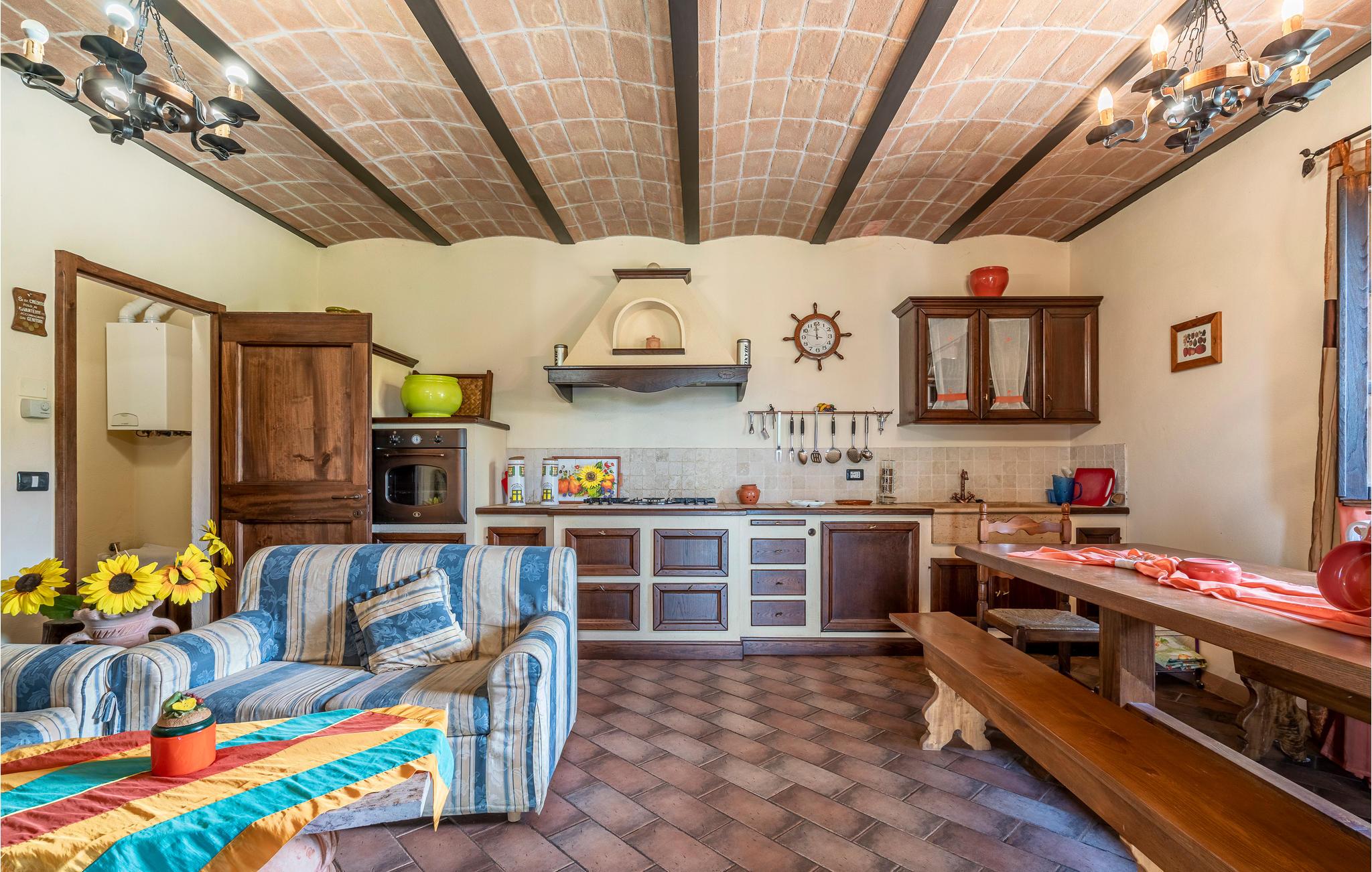 Velkommen til det tidligere gods, som har en idyllisk beliggenhed i de bløde bakker i Umbrien. Her er plads til den helt store familieferie, eller flere familier, der vil holde ferie sammen, men stadig bevare deres privatliv hver især. De mange langborde gør det let for jer at samles om måltider, brætspil og hygge, og her er også masser af små kroge, hvor man kan få en stund for sig selv, hvis der skulle være brug for det. Trælofterne og de originale detaljer giver huset sin helt særlige charme.