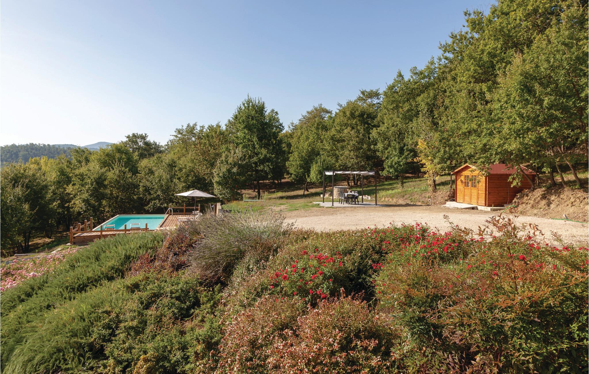I det bjergrige grænseland mellem Umbrien og Toscana, ca. 5 km fra Trestina, venter dette indbydende ferienhus på en lille bakke. Boligen består af en lys, central stue med køkkenhjørne, åben pejs og adgang til terrasse, to soveværelser og et badeværelse. Den store grund ligger idyllisk i bakkerne og er helt indhegnet, det ideelle sted til at slappe af. I kommer også nemt til flere seværdige umbriske og toskanske byer som Perugia, Assisi, Gubbio, Arezzo, Cortona (alle ca. 40-50 km) samt Lago Trasimeno med sine sandbredde og små øer (50 km). Città di Castello (17 km). I Badia Petroia (3 km) og Trestina (5 km) kan I finde butikker og restauranter. Ikkeasfalteret tilkørsel.
