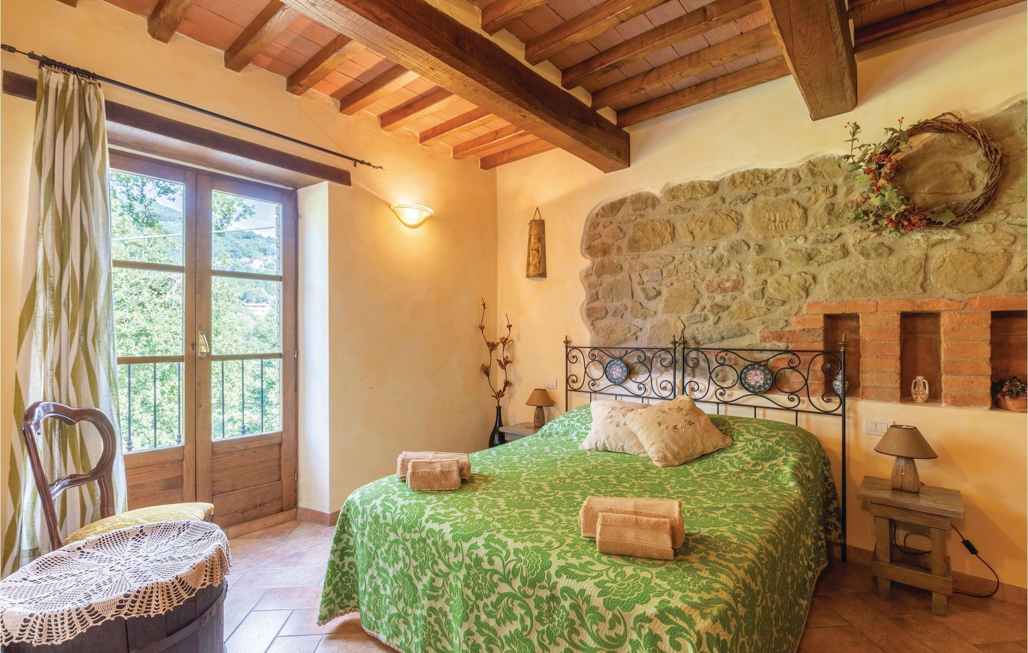 Præcist mellem Città di Castello og Cortona (hhv. 22 km) venter dette rustikke feriehus på jer med egen pool, i bakkerne. Over poolområdet kommer I fra husets side til dalen ind til stuen med køkken samt badeværelse med bruser. Fra bjergsiden kommer I igennem særskilte indgange på jordplan til de tre soveværelser med eget badeværelse og bruser hvert samt to hemse med dobbelt sovesofa i den ene, enkeltseng på den anden, igen med badeværelse og bruser til hver. Huset er i flere etager, der er forbundet via udendørs trapper (ingen indendørs trapper). Mod forespørgsel og betaling på stedet kan I leje et anneks med yderligere tre senge. Barneseng mod forespørgsel. Feriehuset hører til et landbrug, der ligger lidt højere end den lille landsby. Hos ejeren på stedet kan I købe friske grønsager, olivenolie og honning. Mod forespørgsel laver hun også lokale retter som pasta og vildsvin til jer i gårdens lille trattoria. De landlige omgivelser er ideelle til familier, der vil være tæt på naturen. I har en lille fiskedam til rådighed. Herfra kommer I godt til umbriske og toskanske byer som Città di Castello og Cortona (22 km), Arezzo, Perugia og Gubbio (ca 50 km). 1 km til S. Leo Bastia med dagligvarer, bar og post, 10 km til Trestina med alle slags butikker.