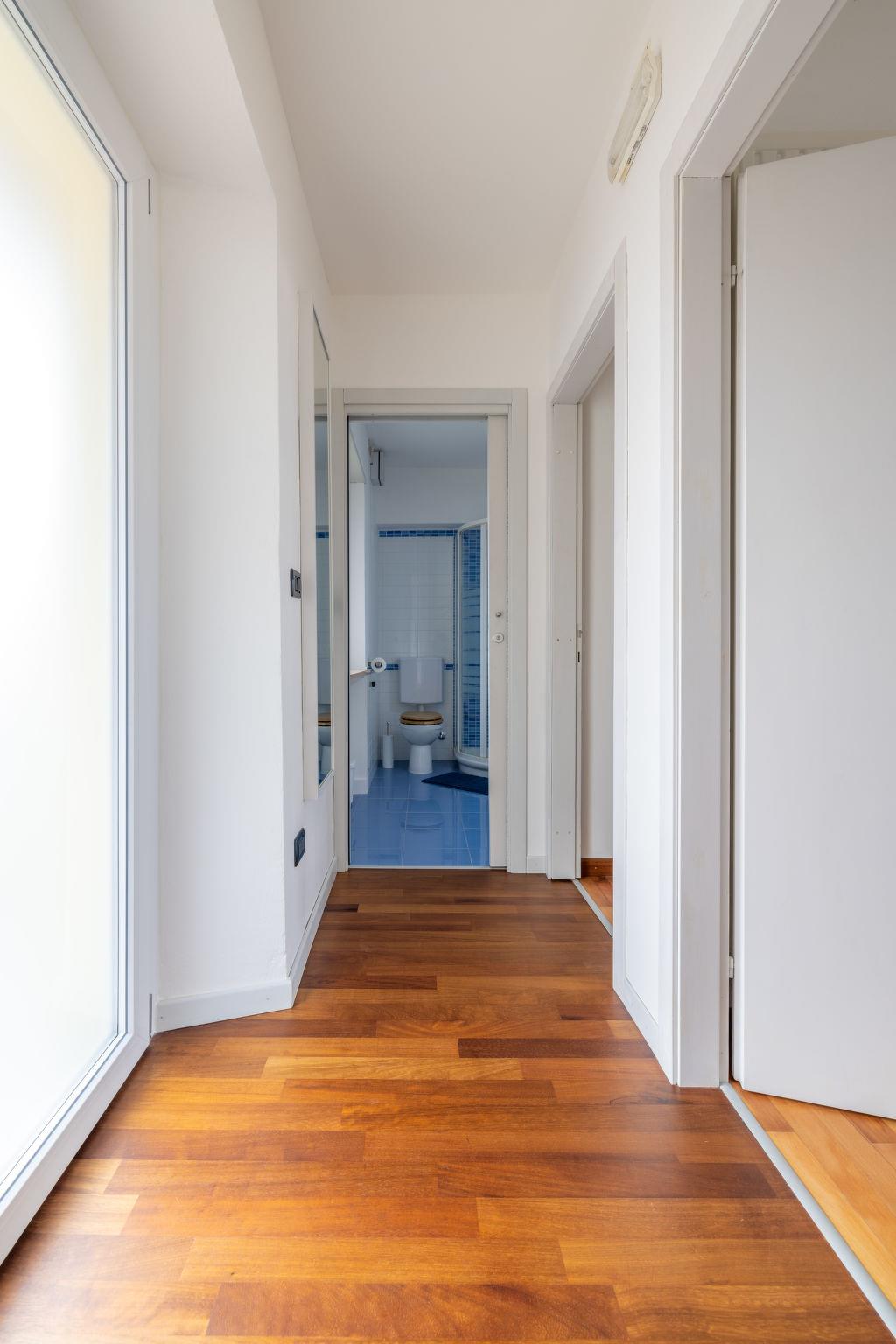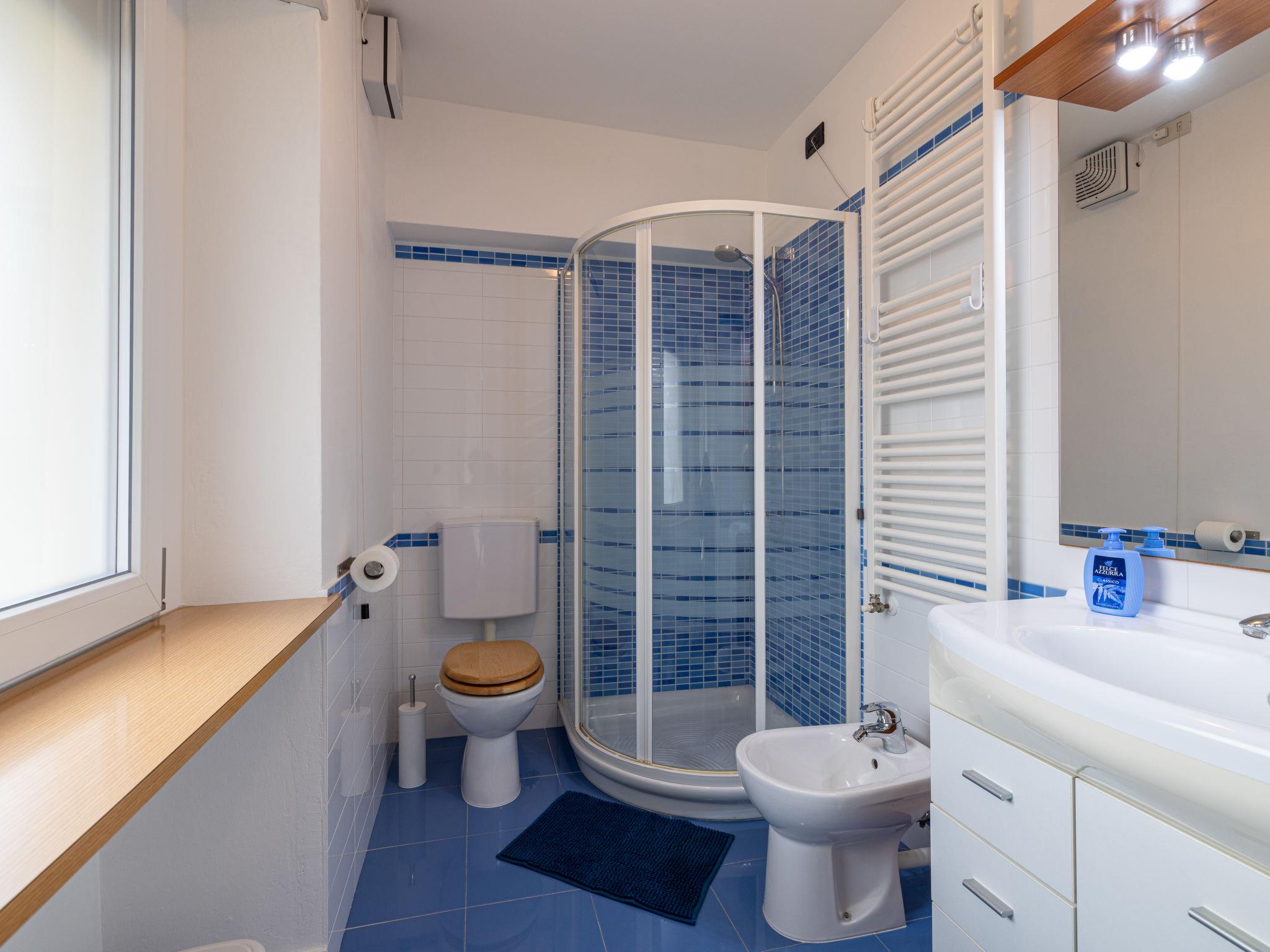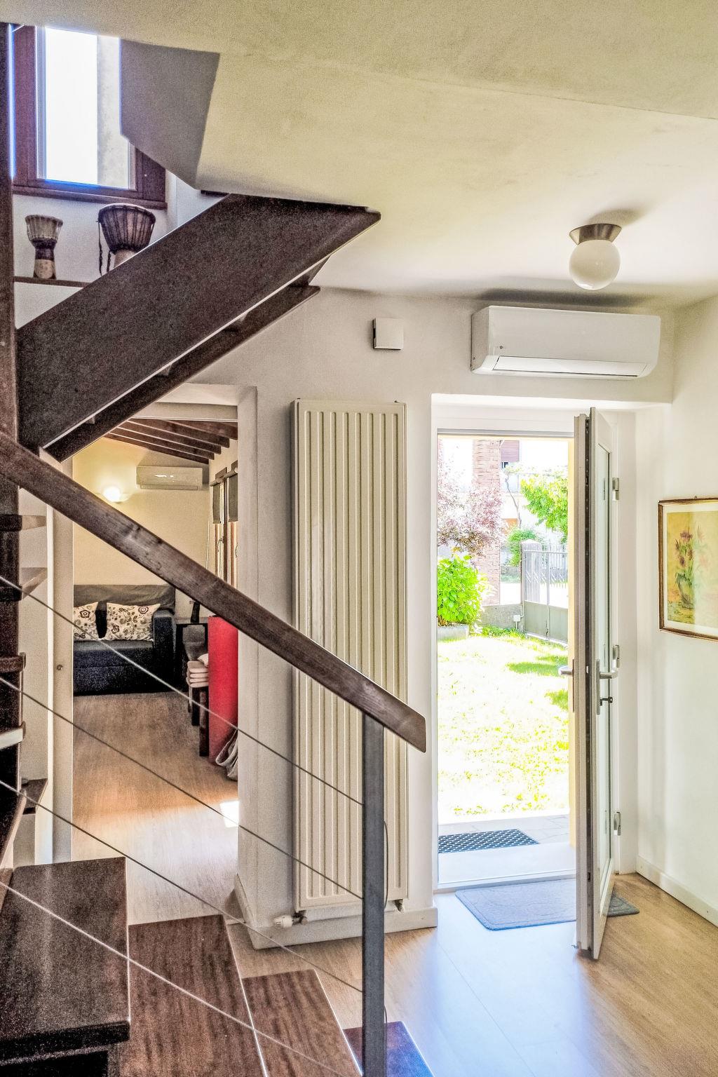 4-room house 87 m2 on 2 levels. Renovated in 2022, cosy furnishings: living room with satellite TV. Exit to the garden. 1 room with 1 sofabed and shower/bidet/WC. Exit to the garden. Kitchen (oven, dishwasher, 4 gas rings, kettle, microwave, freezer, electric coffee machine) with dining table. Upper floor: 1 double bedroom. Exit to the balcony. 1 room with 2 beds. Shower/bidet/WC. Gas heating, air-conditioning. 2 balconies. Deck chairs (2), sitting area. Facilities: washing machine, mosquito net, children's high chair, baby cot for up to 2 year olds. Internet (WiFi, free). Please note: non-smoking house. Smoke alarm, fire extinguisher. IT030026C2V3Q42JQN