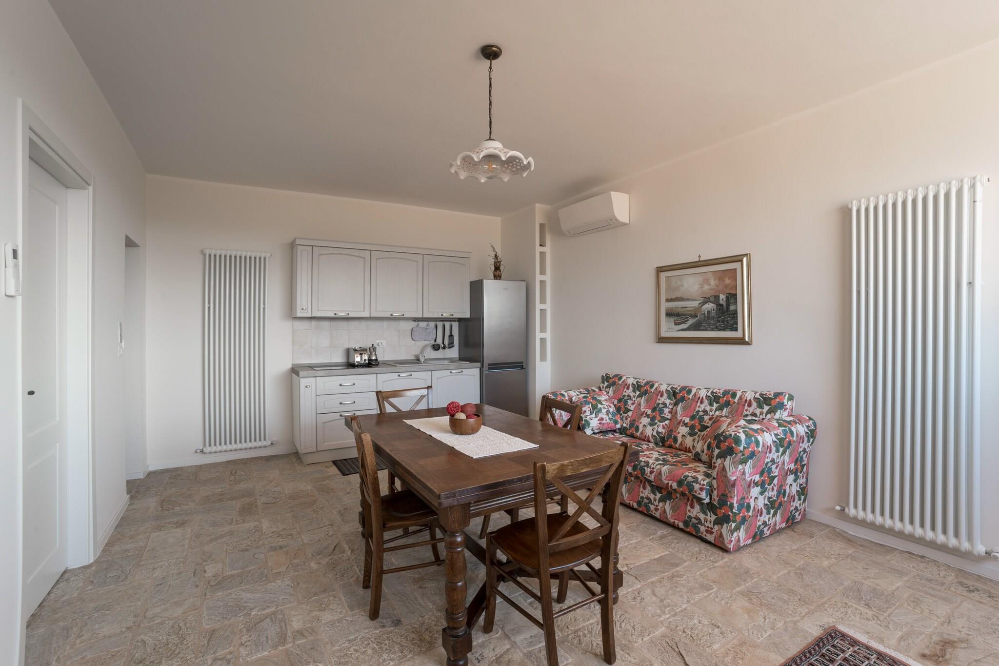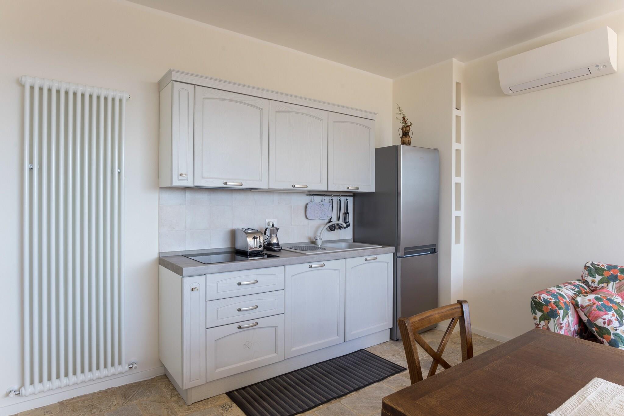 Stueetage: (åbent køkken(spisebord, kogeplade(Komfur med fire kogeplader, gas), emhætte, køleskab, håndvask), Stue/soveværelse(enkeltsovesofa, dobbeltseng(160 x 200 cm), Fjernsyn), badeværelse(bruser, håndvask, toilet, bidet)) klimaanlæg, have, havemøbler, solstole, grill, parkering, Parasol, swimmingpool(deles med andre gæster, opened from Apr upto and including Oct), loungemøbler, havepejs