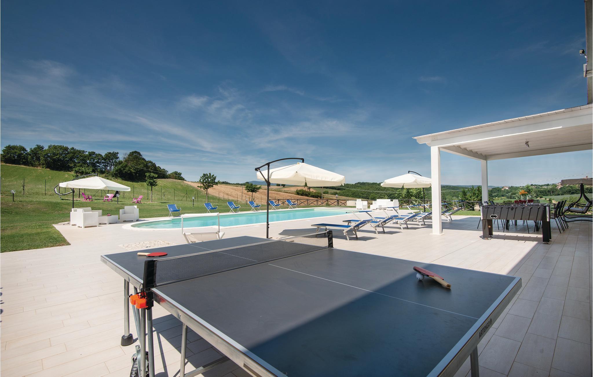Nyd ferien i dette store eksklusive feriehus, der er indrettet i open-space som et ’loft’ og er moderne og raffineret indrettet. Boligen var oprindeligt en lagerbygning – nu forvandlet til vidunderlige omgivelser til en vellykket ferie. Her kan I slappe af i eller ved siden af den pragtfulde pool eller sidde i skyggen på verandaen og nyde udsigten og landskabet der omgiver boligen. I den store og indhegnede have er der et udendørs køkken, grill, stenovn til pizzaer og en lille legeplads. Der er klimaanlæg og insektnet for vinduerne. Huset ligger 38 km fra A1 og 5,7 km fra SS3 /E45 fra Terni-Perugia-Cesena, der giver let adgang til alle regionens seværdigheder og spændende byer. Todi (21 km) ligger på en bakke med herlig udsigt over landskabet og er en smuk og elegant by. Byen er rig på festivaler og mange former for underholdning om sommeren. Besøg også Orvieto (57 km) og Perugia (70 km). Perugia kaldes chokoladens hovedstad, med sin messe Eurochocolate hvert år i oktober.