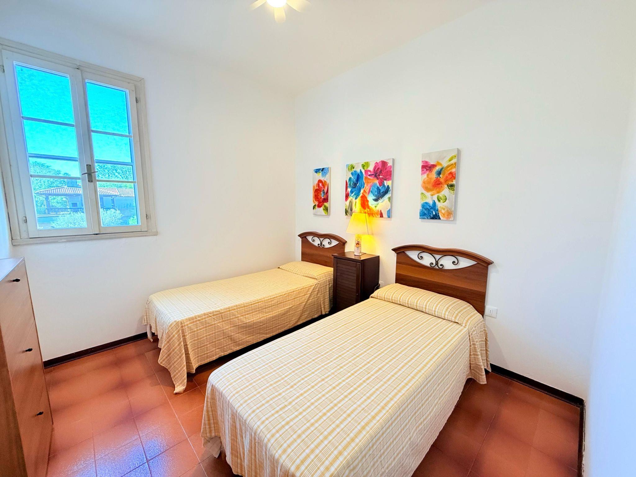 Outside, guests have the exclusive use of a private garden, perfect for enjoying moments of relaxation in the open air or having meals with friends under the summer sky. For those who do not disdain a refreshing dip, the villa offers access to a shared swimming pool, where you can swim or simply relax poolside.