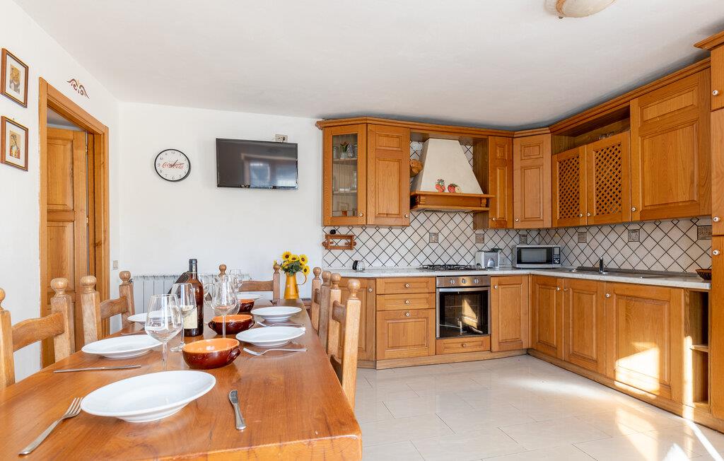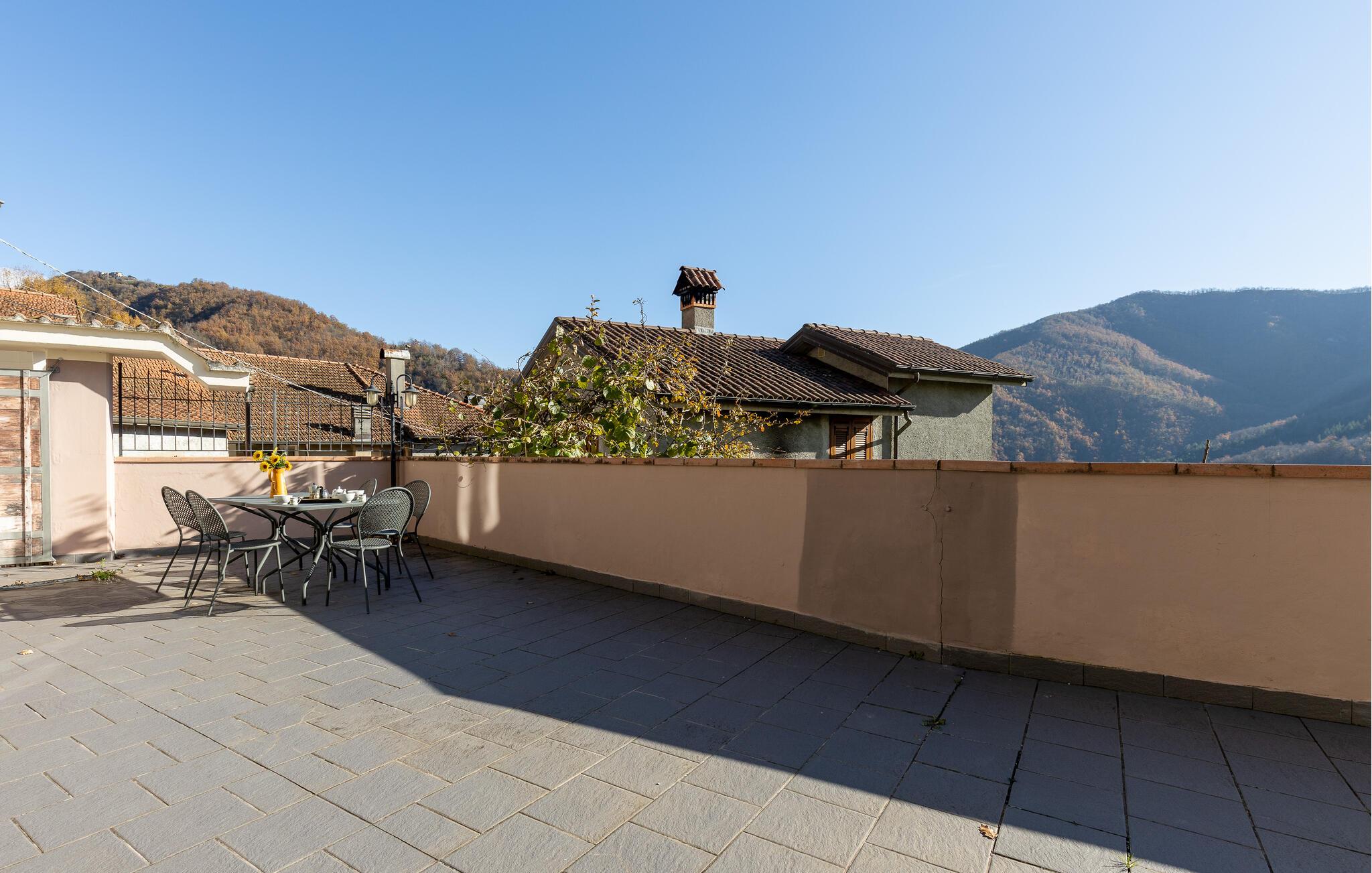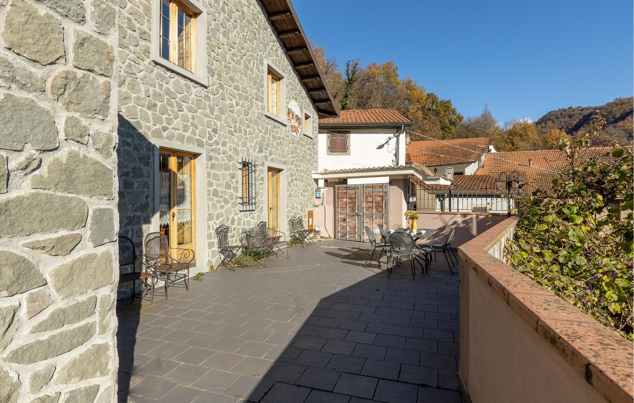 Hvis I er på udkig efter en feriebolig i fredelige, idylliske rammer i Italien, er dette charmerende hus ved Comano det helt rette valg for jer. Indretningen fremtræder ganske nydeligt med et tydeligt, historisk strejf i de mange træelementer og fritlagte murværk, der sammen med de moderne faciliteter skaber de ideelle rammer for en afslappende ferie. Lad amatørkokkene kræse om livretterne i det veludstyrede køkken, inden der dækkes op til den store middag ved det store spisebord af træ.