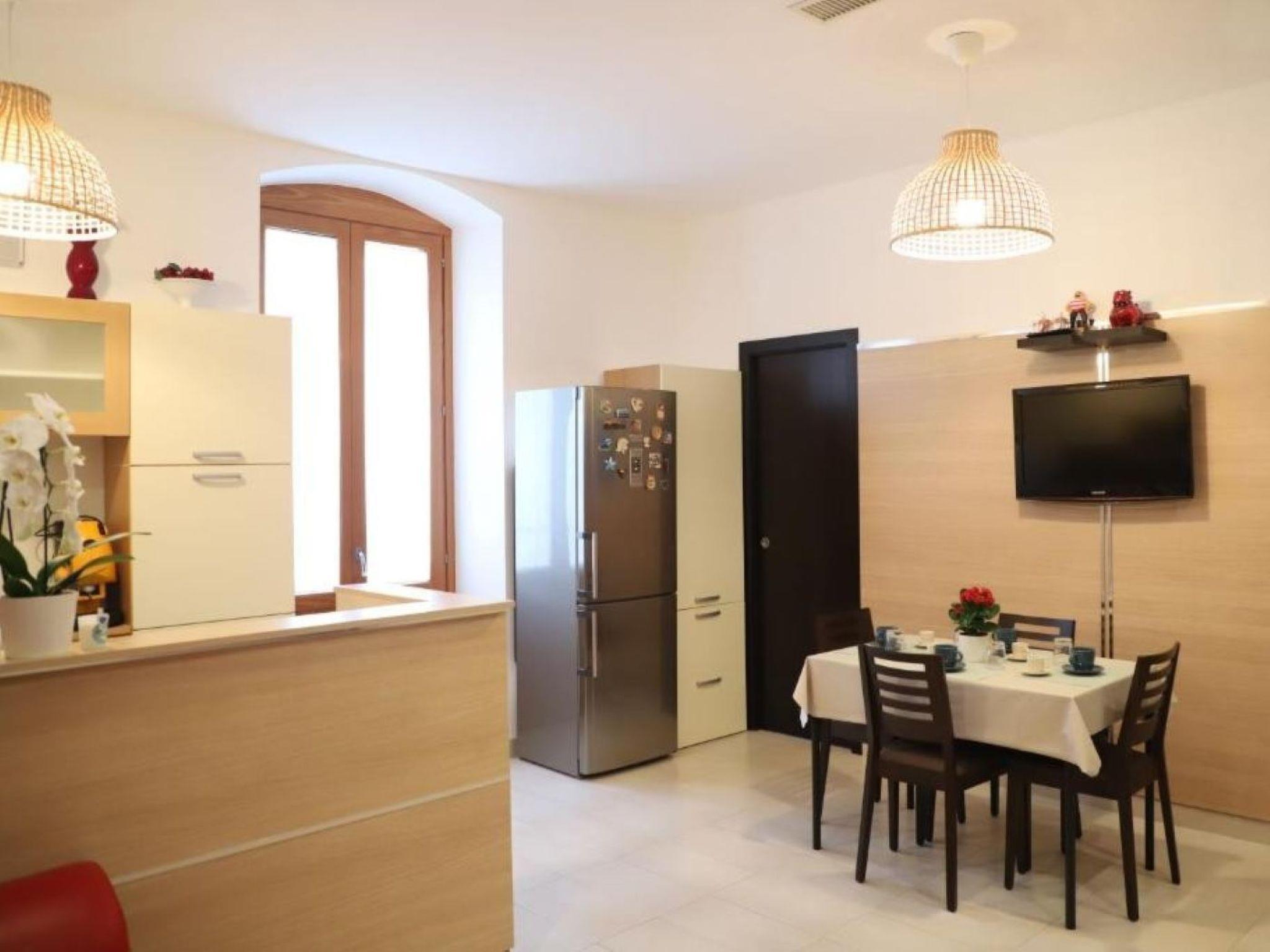 Located in the heart of the historic centre of Conversano, in the province of Bari, this cosy flat offers a perfect mix of modern comforts and authentic charm. Located on the first floor, the accommodation features a spacious open space complete with kitchenette, living room and dining area. The sleeping area consists of two bedrooms, one with a double bed and one with a bunk bed. The rooms are spacious and bright, with two bathrooms to ensure maximum comfort. One of the strengths of the house is the balcony that runs along the entire façade, an ideal corner for enjoying an al fresco lunch or simply relaxing while enjoying the view of the characteristic streets of the village. The flat is equipped with air conditioning and WiFi, offering a comfortable stay in any season. In addition, free and paid parking spaces are available nearby. Whether you are looking for a romantic getaway or a discovery holiday, this flat is the perfect choice to experience the magic of Apulia.