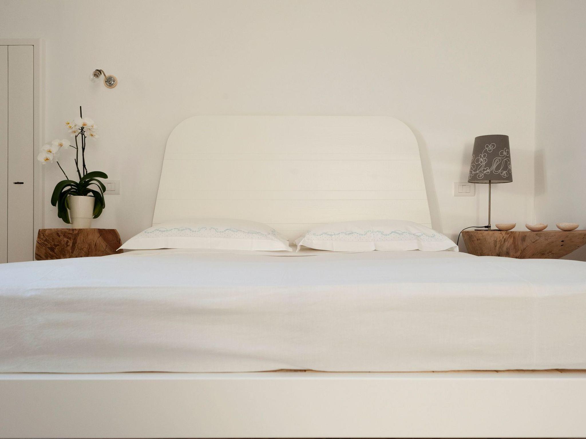 The 80 sqm apartment is on the first floor and can accommodate up to 4 persons. It consists of a bedroom with double bed + single bed, small bathroom and small balcony, living room with sofa bed (2 single beds or 1 double bed), bathroom, equipped kitchen (4-burner stove + oven), equipped terrace.