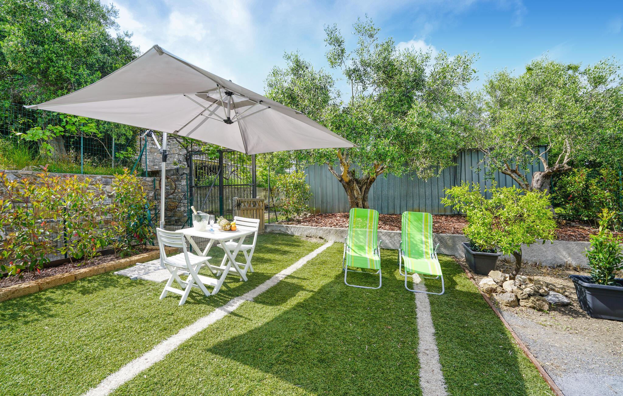I jeres velholdte, private have kan I nyde det vidunderlige klima udendørs. Snup en frisk dukkert på varme dage i den lille pool, nyd solen på den behagelige liggestol og snak i skyggen af ??parasollen over en kold drink.