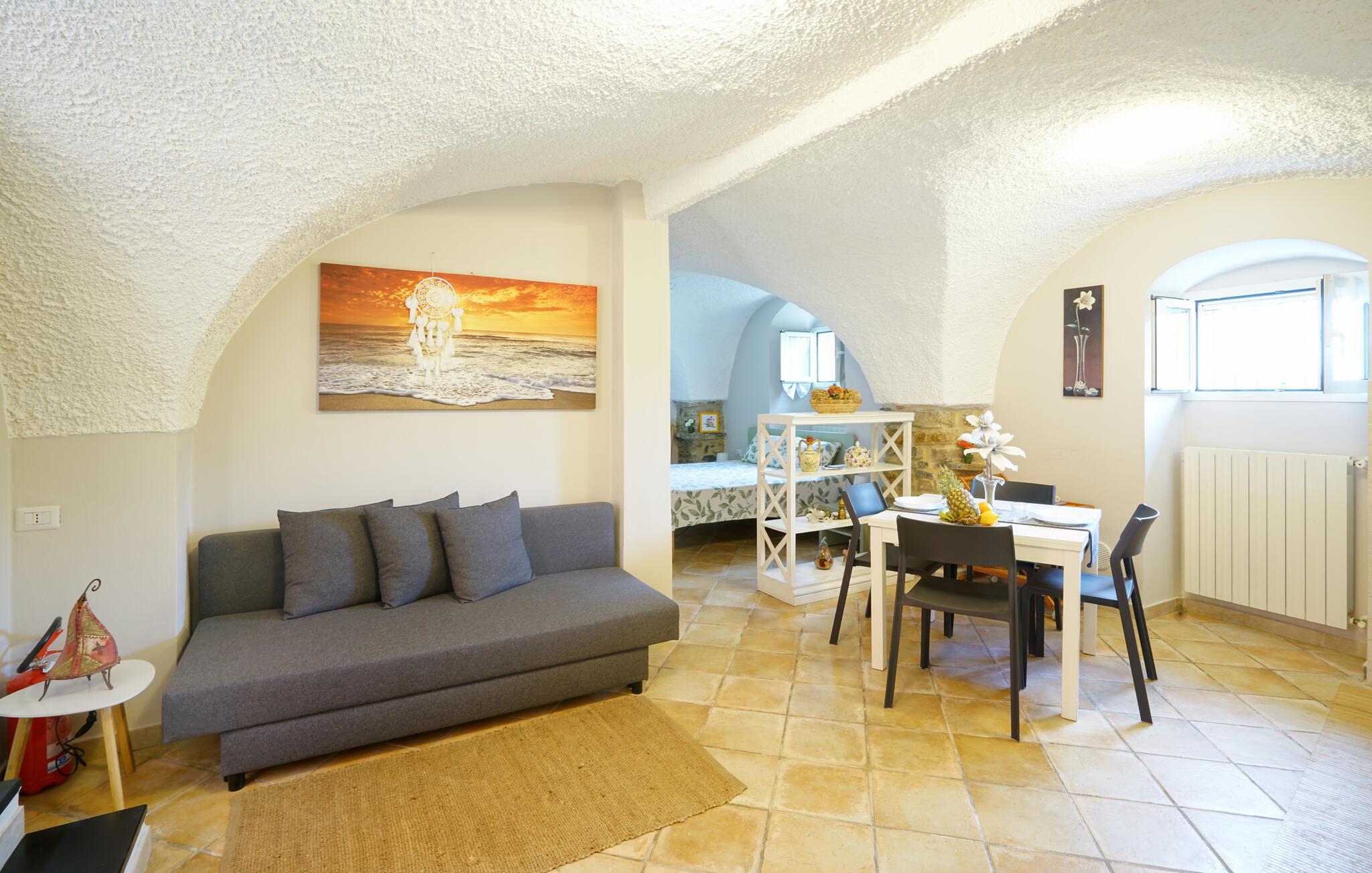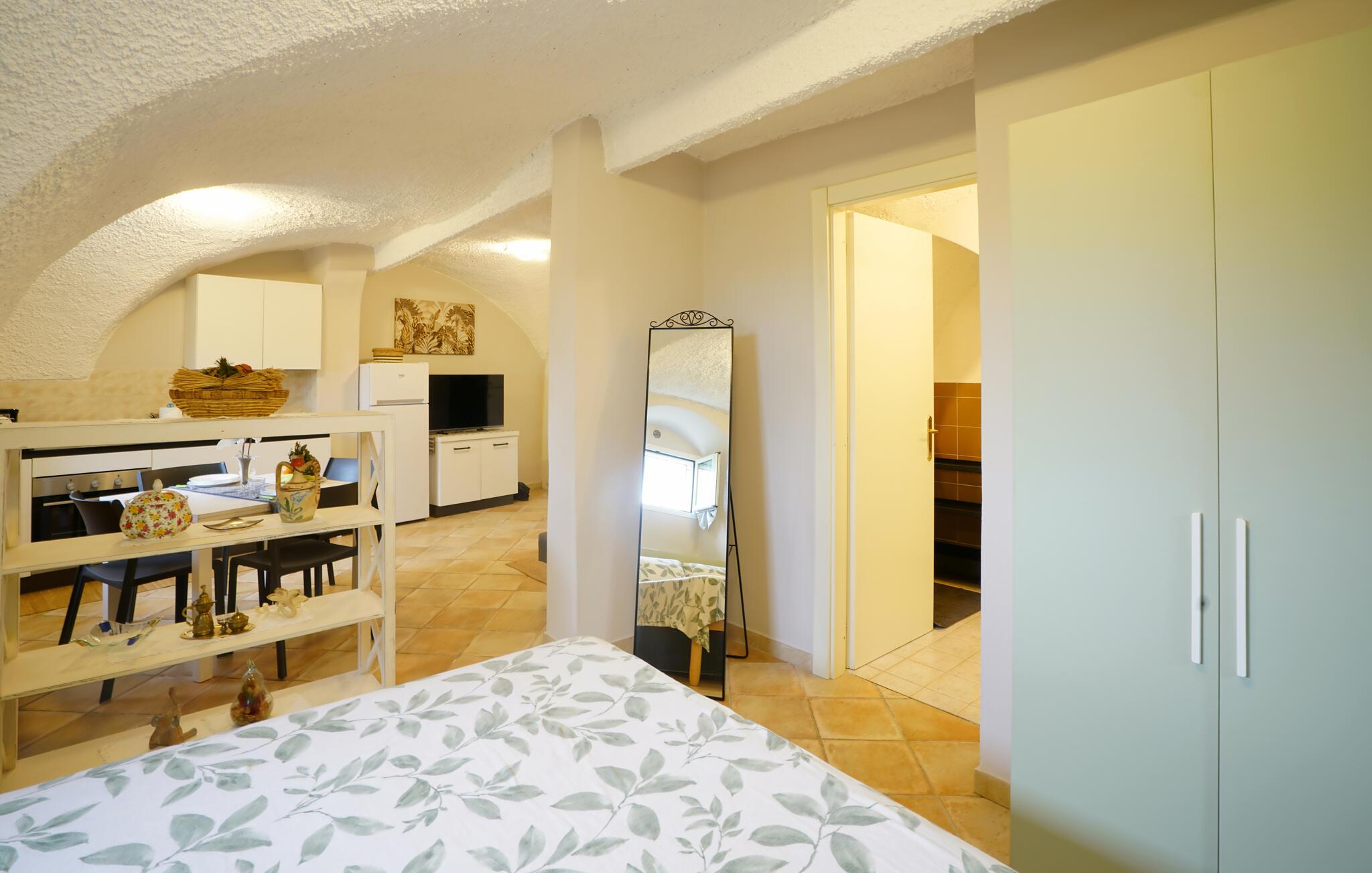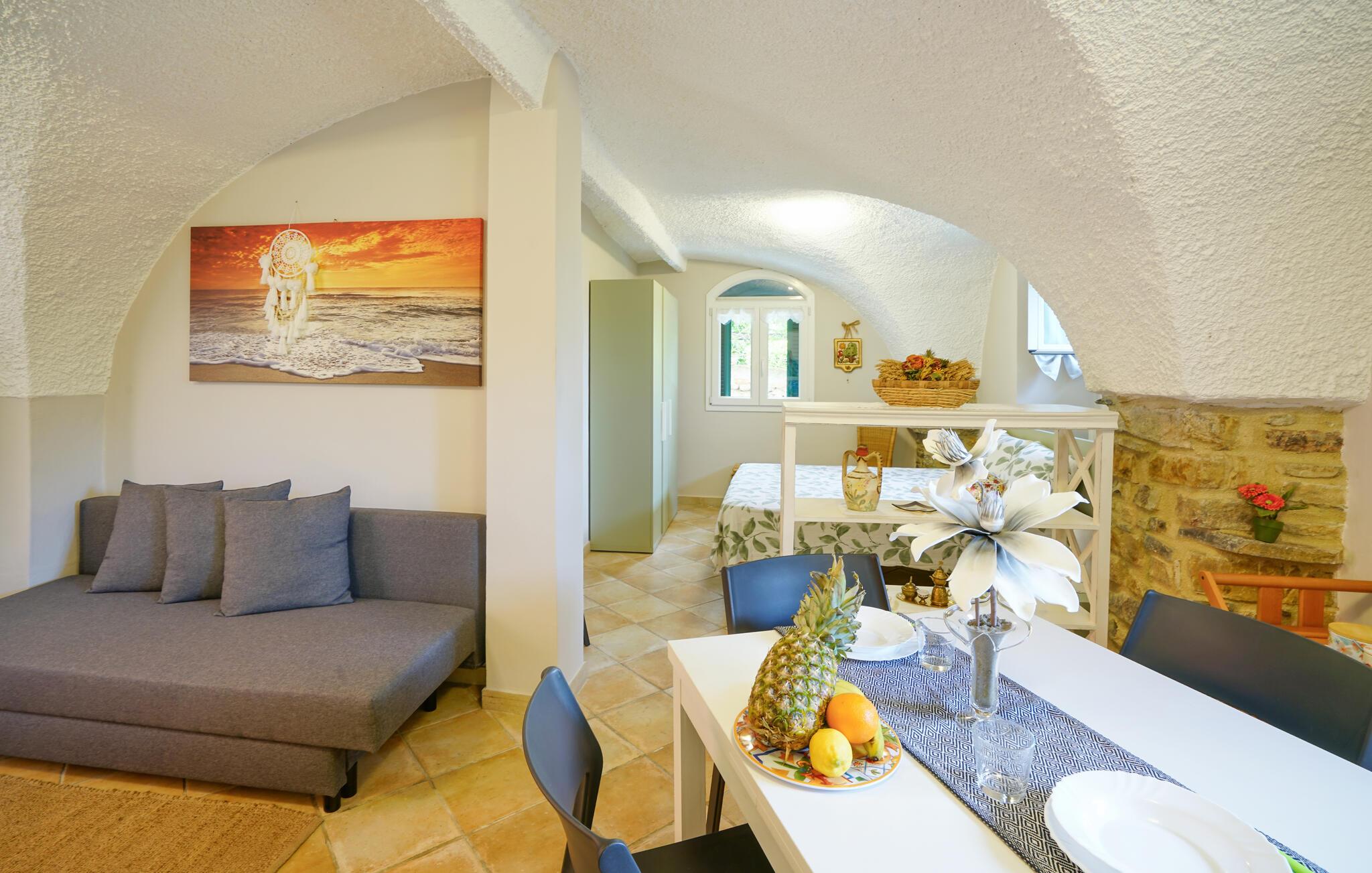 Velkommen til denne velindrettede lejlighed i stueetagen, som giver jer jer et komfortabelt hjem, mens I kombinerer en strandferie ved Middelhavet med spændende udflugter. Slap af fra hverdagen med familien, mens I tryller lækre pastaretter frem, planlægger jeres aktiviteter ved spisebordet eller læser en god bog på den hyggelige sofa.