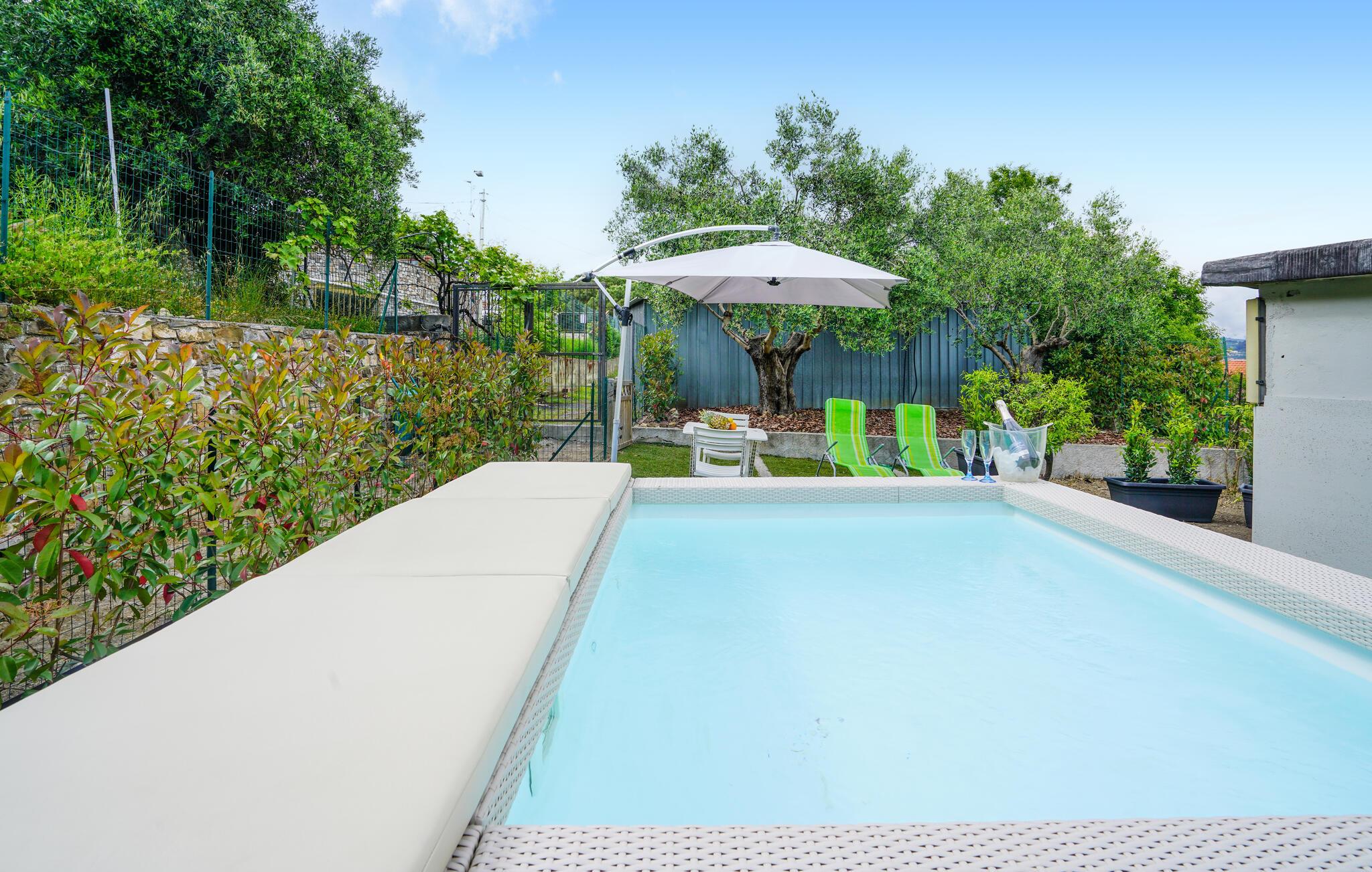 Glæd jer til hyggelige dage i denne charmerende ferielejlighed med have og pool, og oplev den charmerende region.