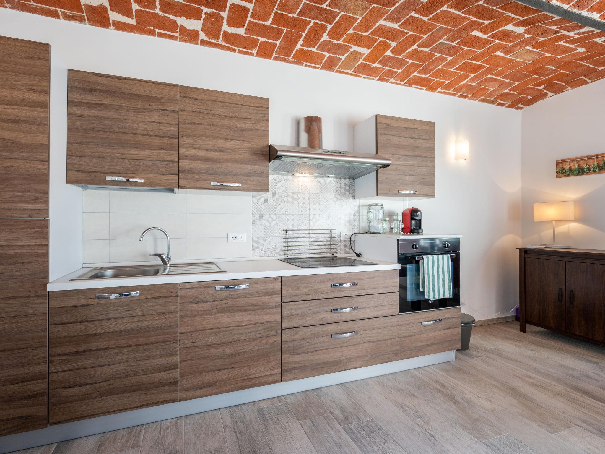 "La Rosa", 2-room apartment 58 m2, on the ground floor. Very comfortable and tasteful furnishings: living room with dining table and satellite TV. 1 double bedroom. Open kitchen (dishwasher, 4 induction hot plates, kettle, microwave, electric coffee machine). Shower/WC. Heating, air-conditioning. Heating available only from 01.10. to 30.04. Natural stone floors. Small patio. Deck chairs (2), sitting area. Facilities: Internet (WiFi, free). Please note: private entrance. IT005050B9JEQCU2RF