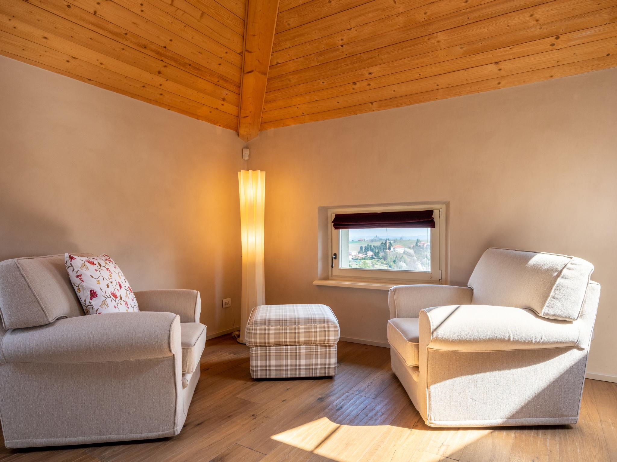 Very comfortable manor house "Villa Loreto", detached from the 19th century, surrounded by fields and vineyards. 2 km from the centre of Costigliole d'Asti, on the outskirts, 15 km from the centre of Asti, 15 km from the centre of Alba, in a sunny, elevated position on top of a hill, 100 km from the sea. Private: property 5'000 m2 (fenced), garden with lawn and trees, meadow, orchard, swimming pool (10 x 4 m, depth 140 cm, seasonal availability: 28.Mar. - 31.Oct.) with salt-electrolysis pool-cleaning system. Outdoor shower, pergola, terrace, garden furniture, pool maintenance by the owner/gardener. Parking at the house on the premises. Supermarket 2 km, bus stop 6.5 km, railway station "Asti" 15 km. Golf course (9 hole) 11 km. Please note: car recommended. The owner does not accept any youth groups.