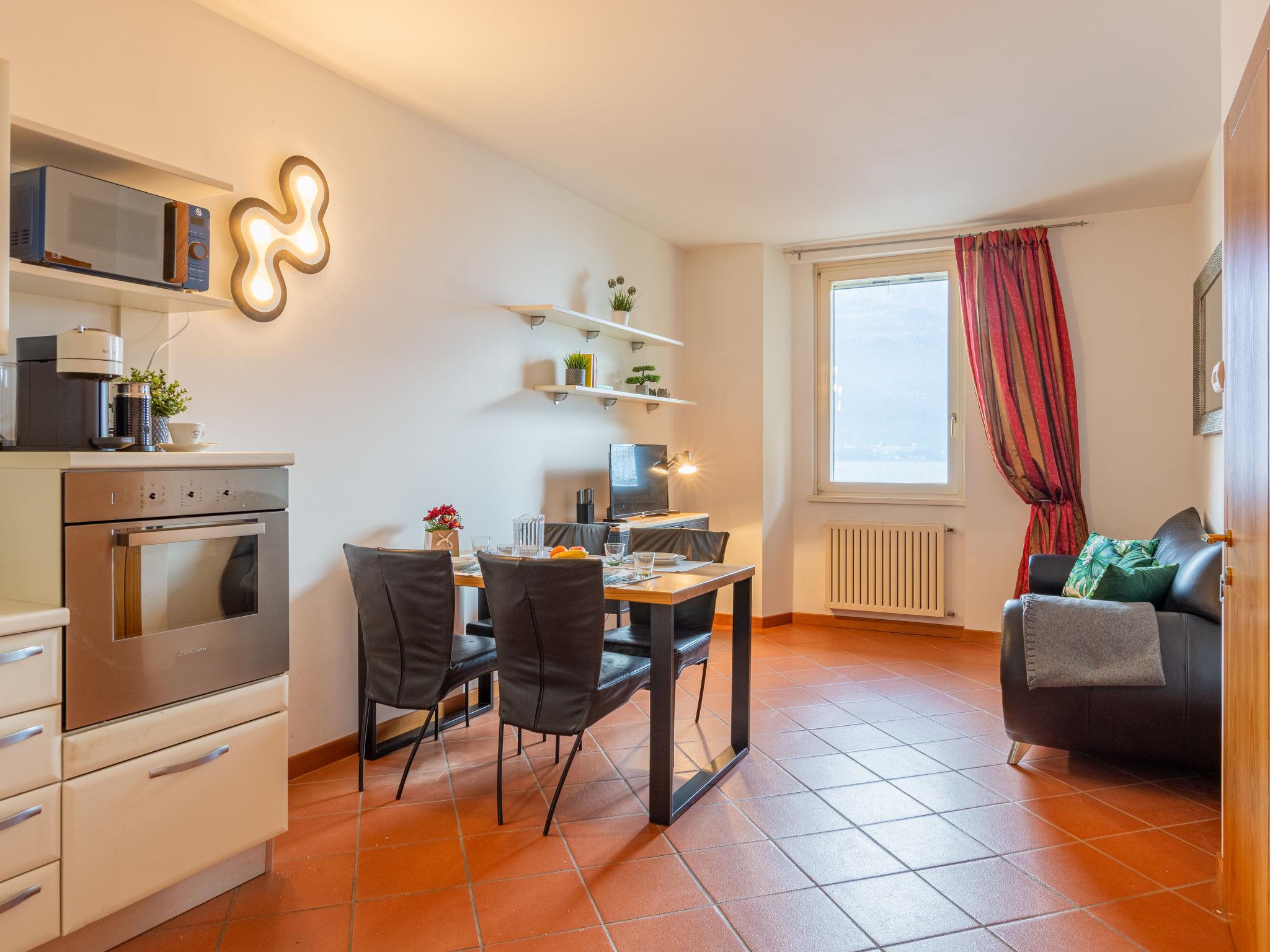 "La Baia", 3-room apartment 63 m2 on 1st floor. Beautiful furnishings: living/dining room with dining table and TV (flat screen). 2 double bedrooms. Open kitchen (oven, dishwasher, Gas stove, 4 gas rings, toaster, kettle, microwave, electric coffee machine, Capsules for coffee machine (Nespresso)). Shower/bidet/WC. Gas heating. Heating available only from 15.10. to 15.04. Natural stone floors. Box-room. Marvellous panoramic view of the lake and the mountains. Facilities: washing machine, mosquito net, hair dryer. Internet (WiFi, free). Garage on the property (1 car), height 230 cm, width 248 cm. Please note: non-smokers only. IT013083C23ISDEHVF
